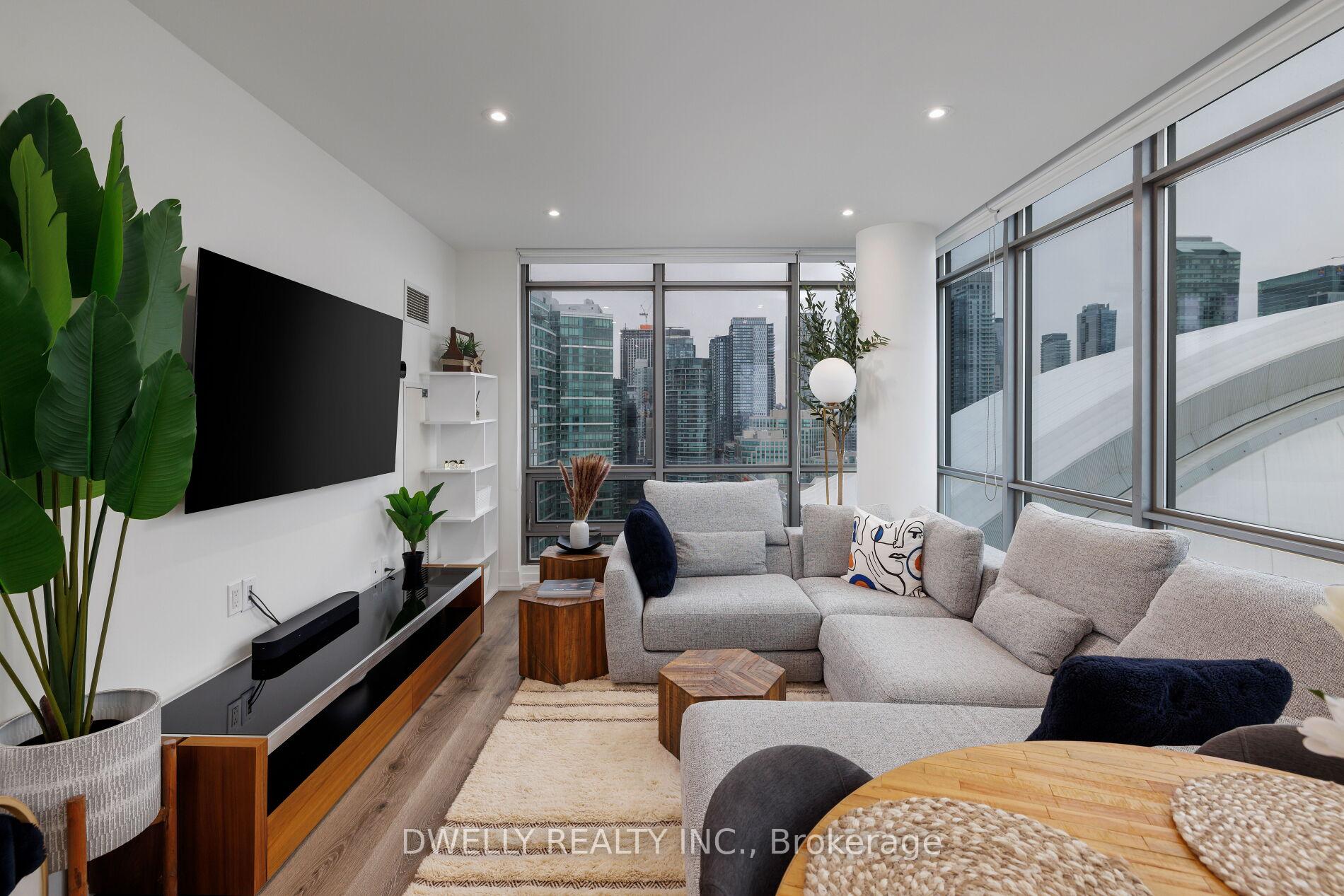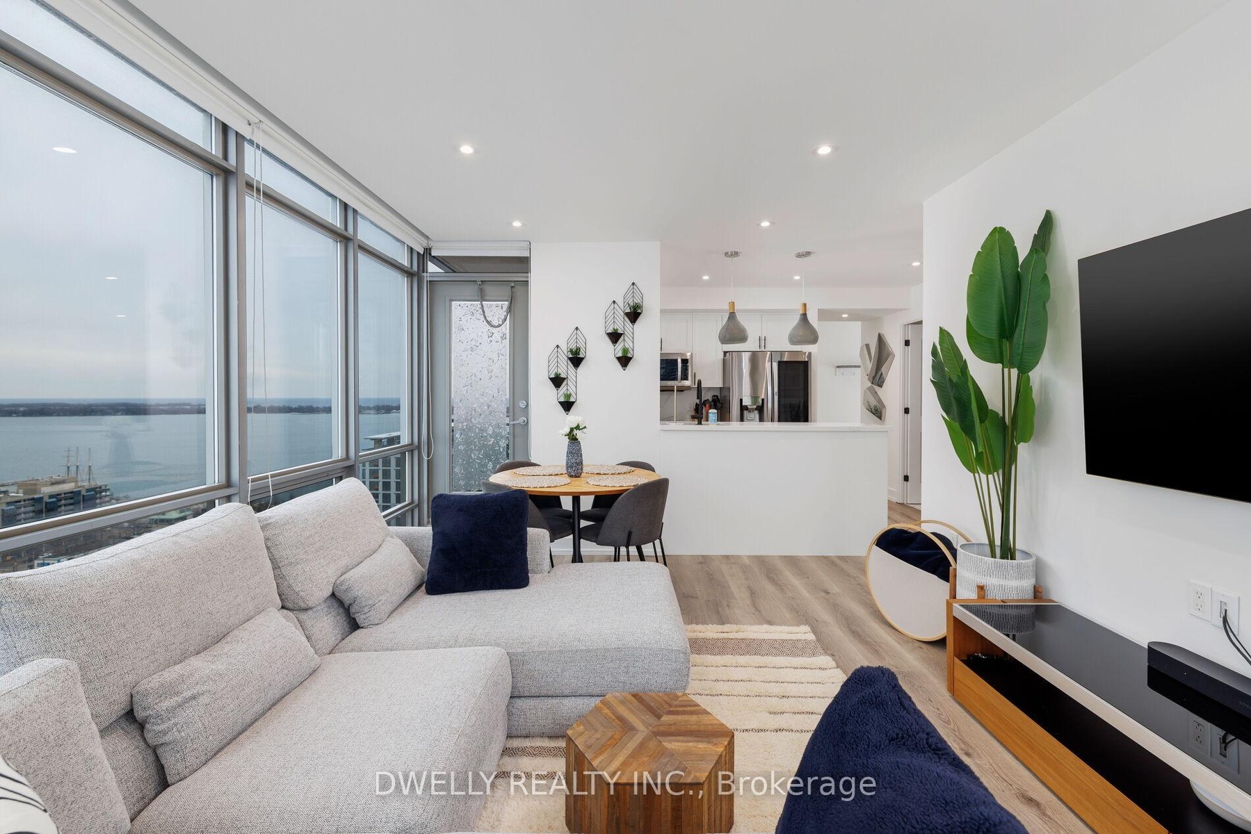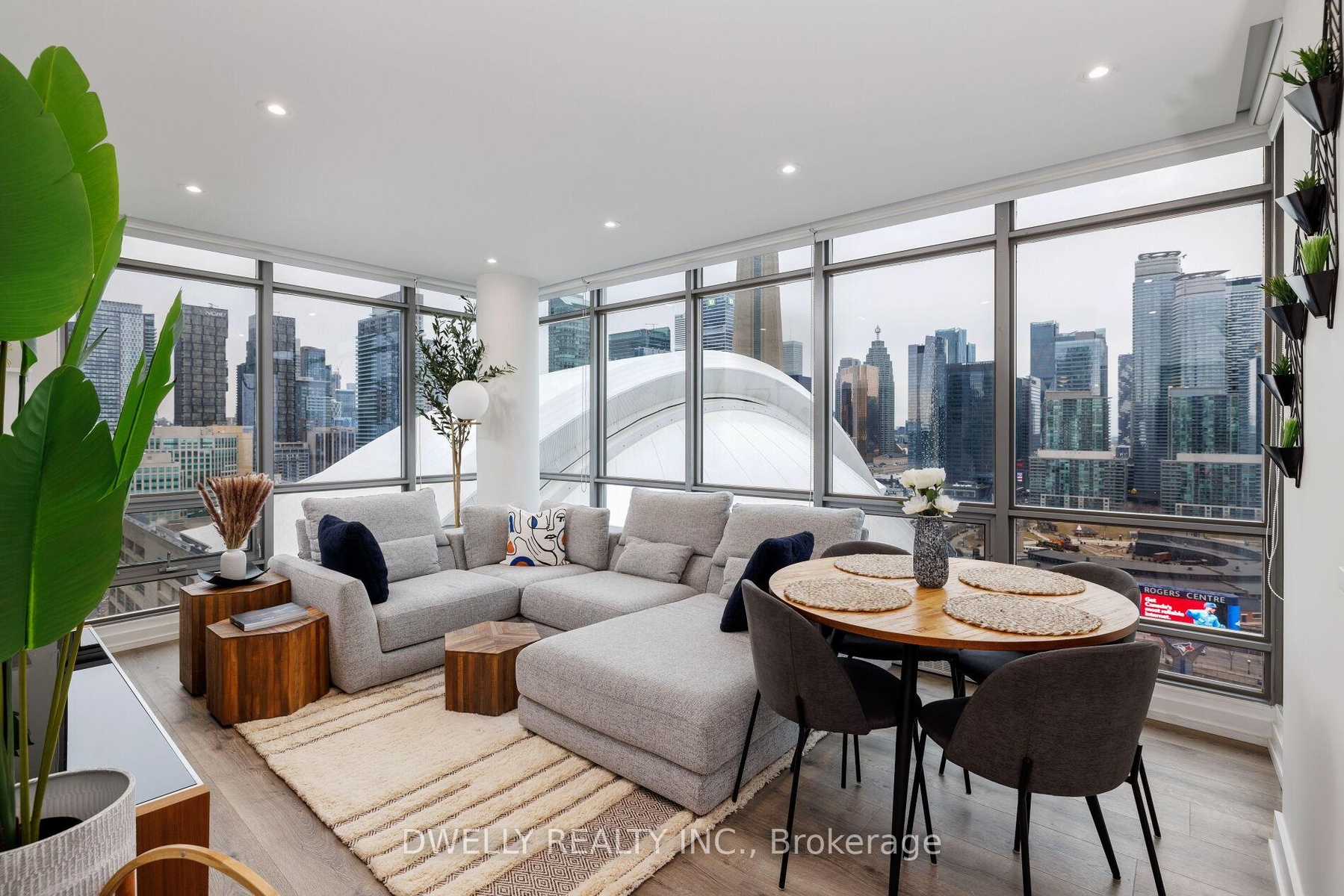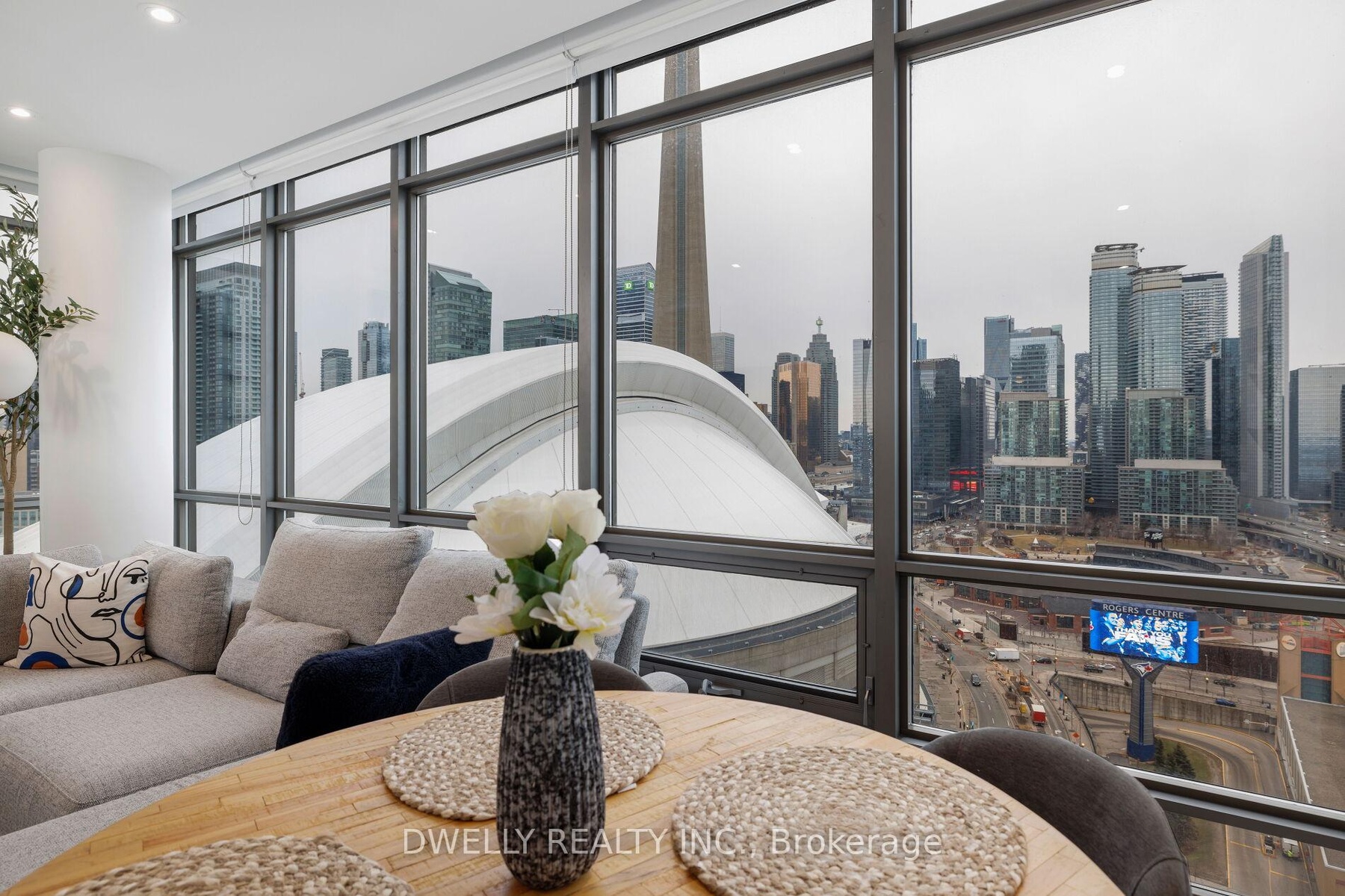 FULLY FURNISHED EXECUTIVE RENTAL offering everything you need for a worry-free stay in Toronto. ALL INCLUSIVE Professionally Designed and Recently Renovated CORNER UNIT One Bedroom plus Den offering plenty of storage/closet space and an Office with a VIEW! Open Concept Floorplan utilizes every Square Foot while the Floor-to-Ceiling Windows flood the interior with Natural Light. Enjoy Sweeping and Iconic views of the City Skyline and Lake Ontario right in the middle of everything Toronto has to offer. Unbeatable Location between Union Station and Billy Bishop Airport with the TTC and Gardiner Expressway at your doorstep. Walk to the Financial District, Harbourfront, King West, Queen Street and World Class Dining. Enjoy 24-Hour Concierge Service and Exclusive Access to the 30,000 SQ FT Superclub Complex featuring a Full Gym, Cardio Machines, Indoor Running Track, Pool, Sauna, Full-Sized Basketball and Tennis Courts, BBQs and much more!