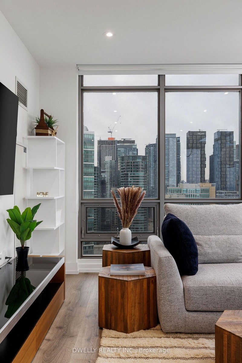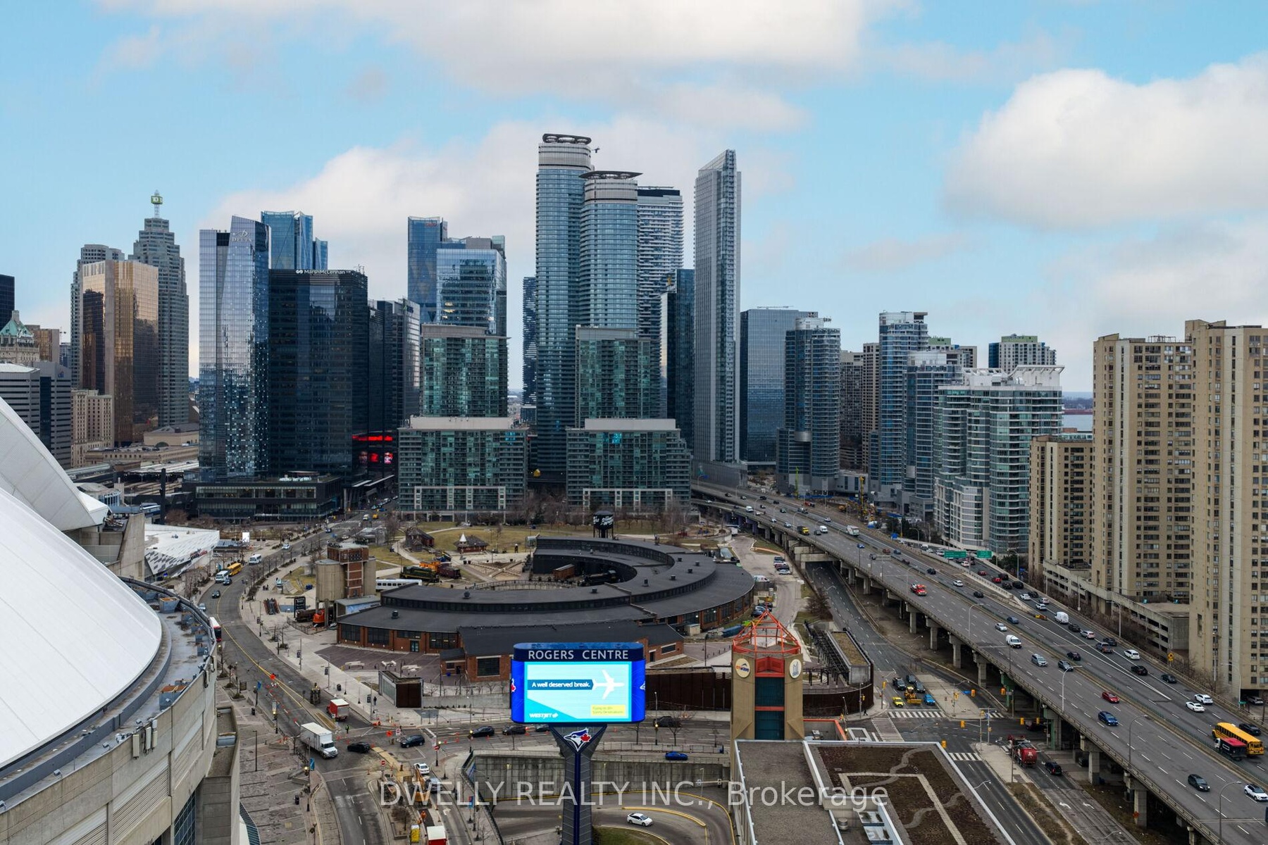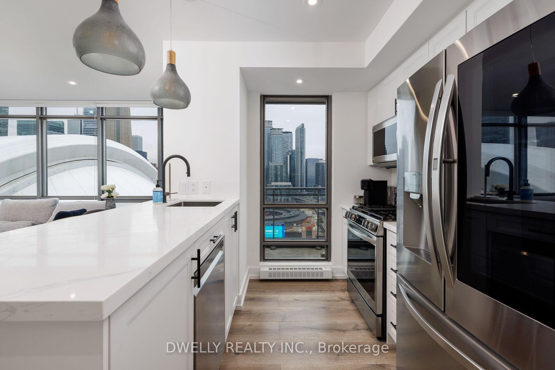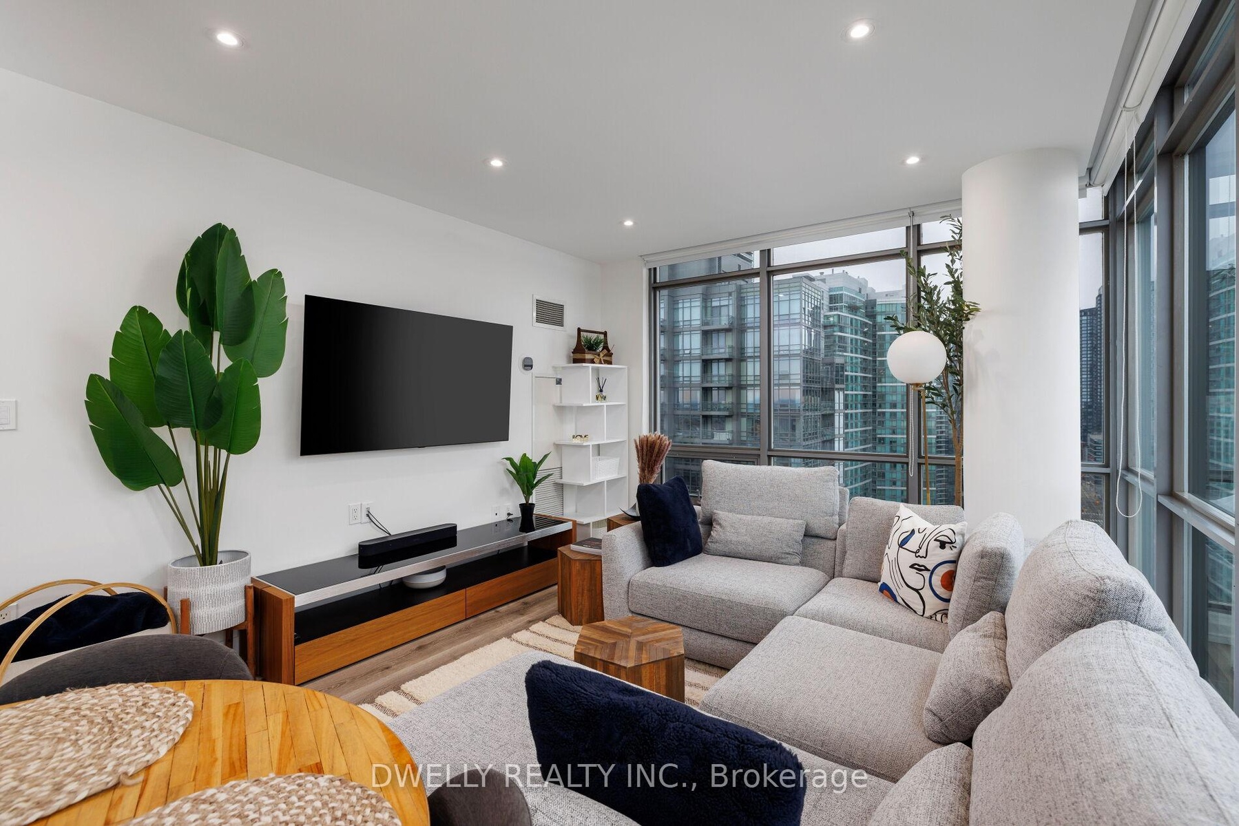 FULLY FURNISHED EXECUTIVE RENTAL offering everything you need for a worry-free stay in Toronto. ALL INCLUSIVE Professionally Designed and Recently Renovated CORNER UNIT One Bedroom plus Den offering plenty of storage/closet space and an Office with a VIEW! Open Concept Floorplan utilizes every Square Foot while the Floor-to-Ceiling Windows flood the interior with Natural Light. Enjoy Sweeping and Iconic views of the City Skyline and Lake Ontario right in the middle of everything Toronto has to offer. Unbeatable Location between Union Station and Billy Bishop Airport with the TTC and Gardiner Expressway at your doorstep. Walk to the Financial District, Harbourfront, King West, Queen Street and World Class Dining. Enjoy 24-Hour Concierge Service and Exclusive Access to the 30,000 SQ FT Superclub Complex featuring a Full Gym, Cardio Machines, Indoor Running Track, Pool, Sauna, Full-Sized Basketball and Tennis Courts, BBQs and much more!
