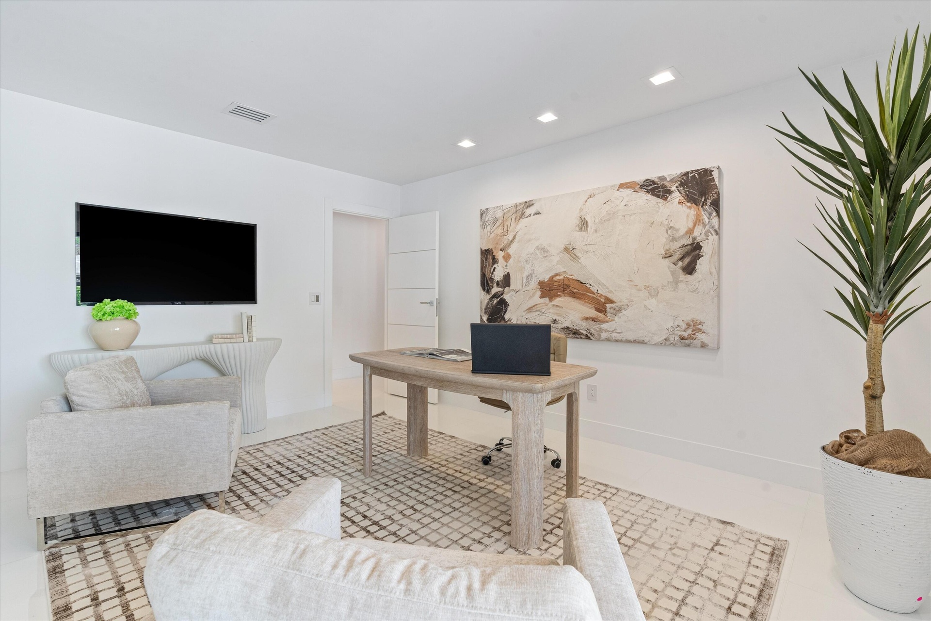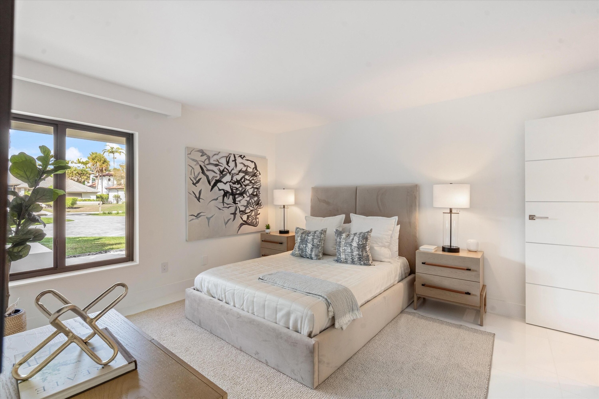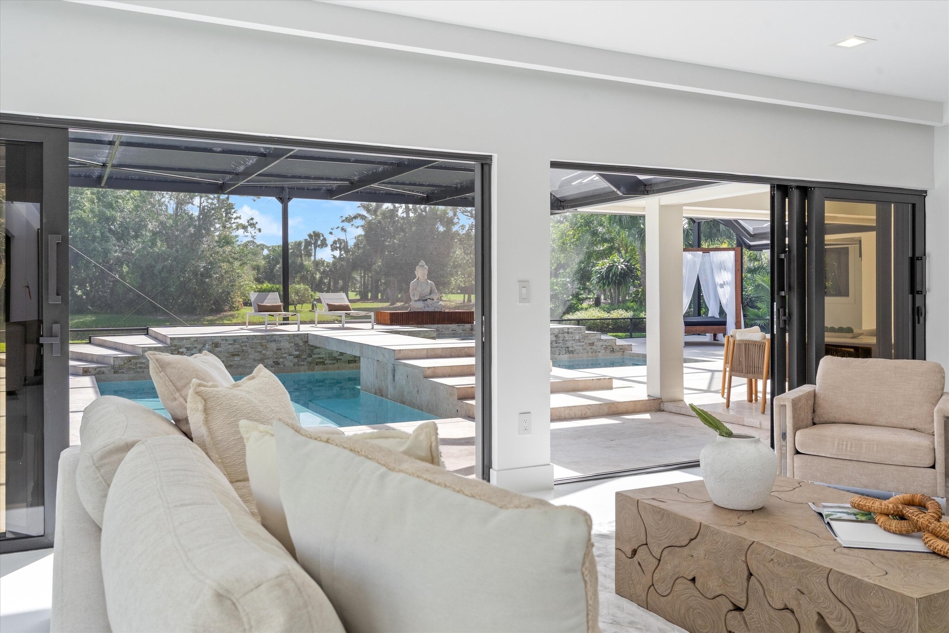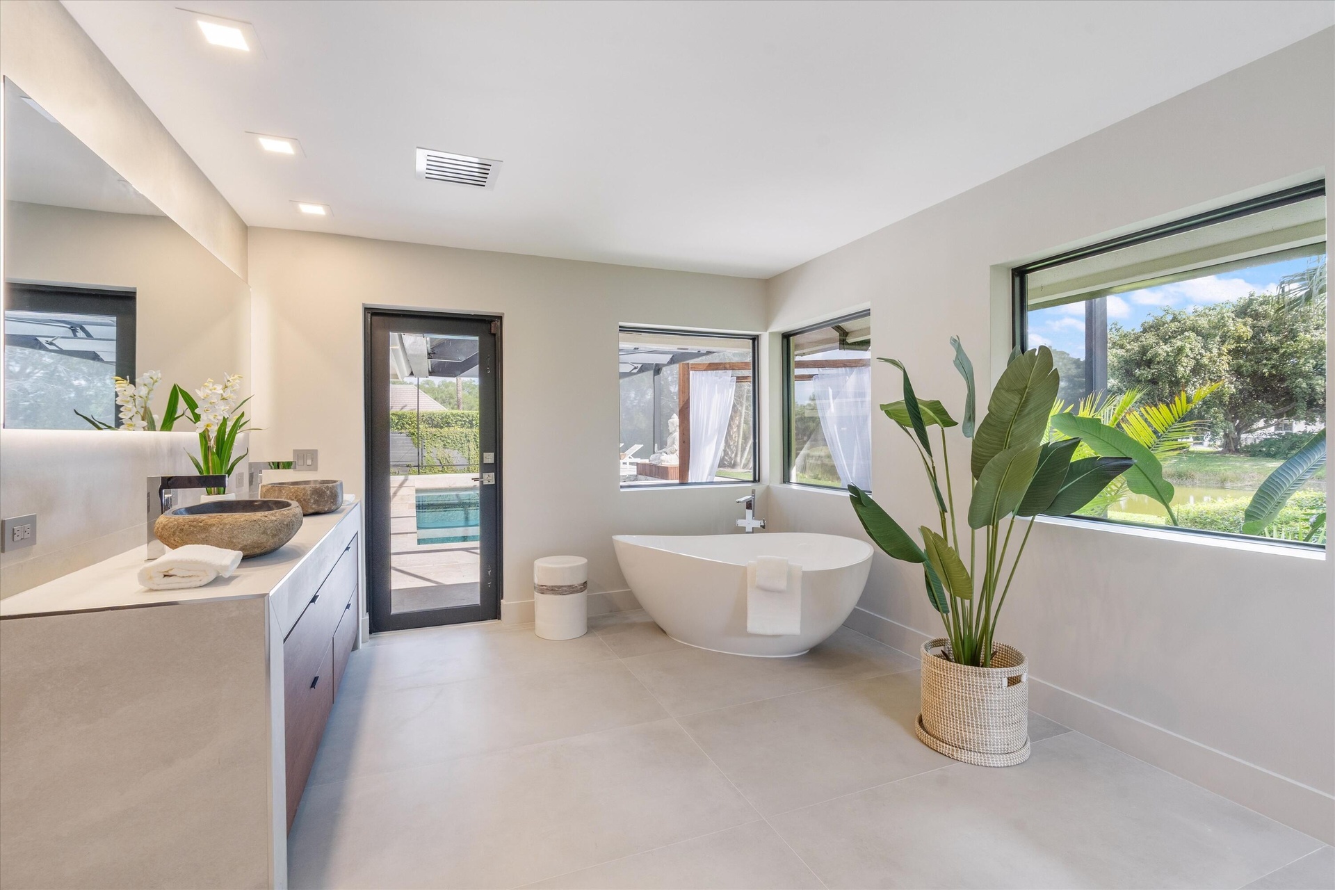 This one of a kind custom estate home in Breakers West Country Club in West Palm Beach is perfect blend of clean architectural lines, premium finishes and exceptional craftsmanship. This immaculate home boasts 4 Bedrooms + separate Office, 4 Full Baths and 2-Car + Golf Cart garage. Situated 0.55 acre lot, the design takes in the scenic lake and golf course views beyond. Thoughtfully renovated over the past 5 years this sophisticated, warm modern home features custom European cabinetry and Italian tile flooring throughout. The outdoor entertaining space reflects the same clean aesthetic with new Clear View screen enclosure, modern travertine patio deck, raised spa with waterfall overflowing into the pool and the tasteful Buddha sculpture as the focal point in your modern Florida retreat. Additional important features include: Commercial grade hurricane impact windows and doors (2021); New clay tile roof and new commercial grade flat roof, both with transferable warranty (2019); Pool/patio/screen remodel (2019-2021); Smart Home doorbell, smoke detectors and thermostats (2022); Water Heater (2023). And so much more!! Breakers West is a unique country club community where club memberships are NOT mandatory. Residents have the choice of Golf or Sport/Social memberships at Breakers West which includes golf at the Breakers West Rees Jones Course, tennis, pickleball, pool, gym, Kid's Club with playground as well as use of The Breakers Beach Club and Rees Jones Ocean Course in Palm Beach in the summer months. Also located within the community is Mayacoo Lakes Country Club with its renowned golf course, tennis facilities, pool and clubhouse dining with memberships available for separate purchase. Breakers West offers an unparalleled lifestyle within its 670 acres of wooded landscapes, manicured lawns, and two manned guard gates. Is conveniently located to PBI Airport, downtown West Palm Beach's new "financial district" and over the bridge to Palm Beach with its fabulous dining options and Worth Avenue shopping. Also convenient to Wellington's world-class equestrian amenities. Great private schools in West Palm Beach are nearby such as Oxbridge Academy, The King's Academy, and Rosarian Academy.