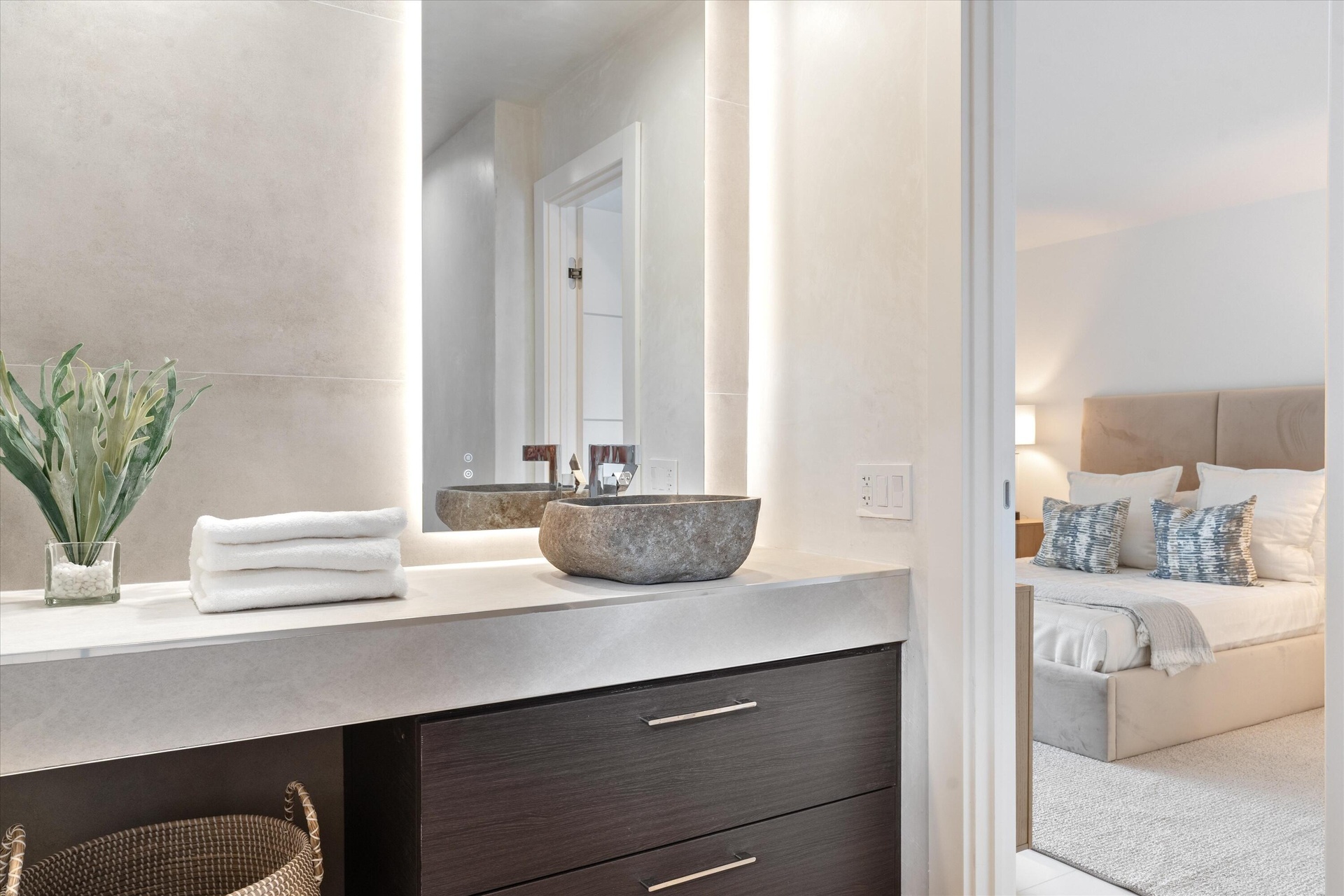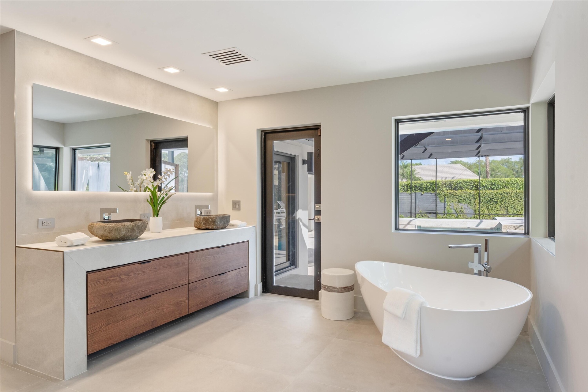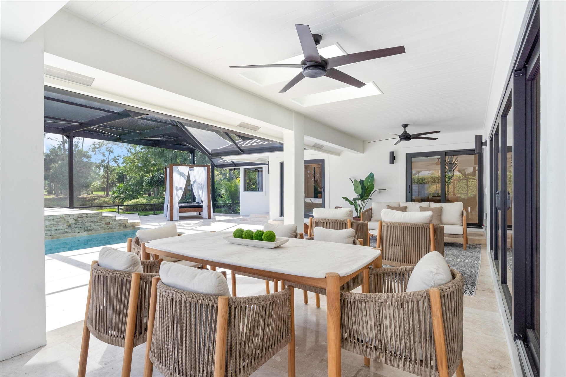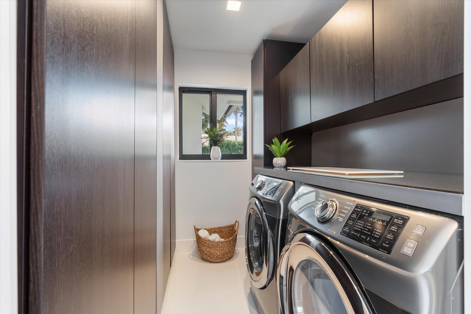 This one of a kind custom estate home in Breakers West Country Club in West Palm Beach is perfect blend of clean architectural lines, premium finishes and exceptional craftsmanship. This immaculate home boasts 4 Bedrooms + separate Office, 4 Full Baths and 2-Car + Golf Cart garage. Situated 0.55 acre lot, the design takes in the scenic lake and golf course views beyond. Thoughtfully renovated over the past 5 years this sophisticated, warm modern home features custom European cabinetry and Italian tile flooring throughout. The outdoor entertaining space reflects the same clean aesthetic with new Clear View screen enclosure, modern travertine patio deck, raised spa with waterfall overflowing into the pool and the tasteful Buddha sculpture as the focal point in your modern Florida retreat. Additional important features include: Commercial grade hurricane impact windows and doors (2021); New clay tile roof and new commercial grade flat roof, both with transferable warranty (2019); Pool/patio/screen remodel (2019-2021); Smart Home doorbell, smoke detectors and thermostats (2022); Water Heater (2023). And so much more!! Breakers West is a unique country club community where club memberships are NOT mandatory. Residents have the choice of Golf or Sport/Social memberships at Breakers West which includes golf at the Breakers West Rees Jones Course, tennis, pickleball, pool, gym, Kid's Club with playground as well as use of The Breakers Beach Club and Rees Jones Ocean Course in Palm Beach in the summer months. Also located within the community is Mayacoo Lakes Country Club with its renowned golf course, tennis facilities, pool and clubhouse dining with memberships available for separate purchase. Breakers West offers an unparalleled lifestyle within its 670 acres of wooded landscapes, manicured lawns, and two manned guard gates. Is conveniently located to PBI Airport, downtown West Palm Beach's new "financial district" and over the bridge to Palm Beach with its fabulous dining options and Worth Avenue shopping. Also convenient to Wellington's world-class equestrian amenities. Great private schools in West Palm Beach are nearby such as Oxbridge Academy, The King's Academy, and Rosarian Academy.