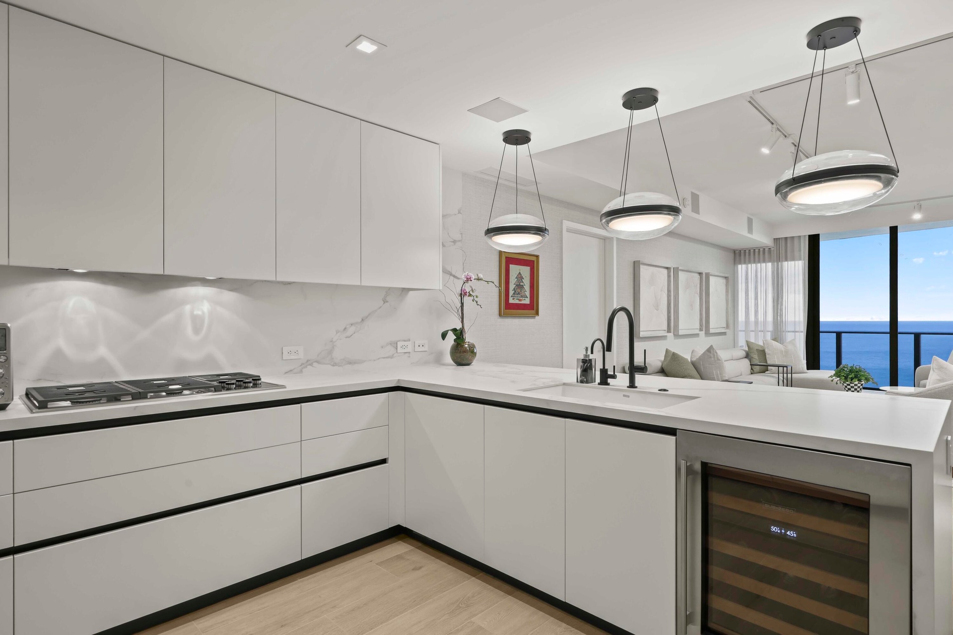 Turn-key, newer Solemar residence, exquisitely furnished Interiors by Steven G, with direct sapphire ocean views from a 43' sunrise balcony. The spacious 3-bedroom, 2.5-bath split floor plan features floor-to-ceiling glass, allowing you to hear the waves and watch the coastline glow. Automated white sunshades, EcoBar smart A/C, WiFi speakers (6), Tacora blonde porcelain plank floors throughout. European matte-white kitchen with Calacatta-vein quartz + waterfall edge, Wolf/Sub-Zero appliances, touch-front fridge, Wolf coffee system, and Hans Grohe finishes. You will love the five-star, pet-friendly building: concierge, 24/7 valet/security, sunrise & sunset pools, wine lounge, café, fitness studio, steam/sauna, club room, BBQ + more. Walk to the Pompano Beach Pier and dining options. Live like you're on vacationevery day. This is true "bring-your-toothbrush" living: designer-furnished and impeccably styled by Interiors by Steven G, so you can arrive, exhale, and immediately settle into oceanfront ease. Mornings begin with sunrise over the Atlantic and the calming soundtrack of rolling waves, best enjoyed from your expansive 43' balconycoffee in hand, breeze on your skin, and endless sapphire water views stretching out in front of you. Whether you're making this your full-time home or your perfect winter escape, it's the kind of place that helps you relax, refresh, and reset.