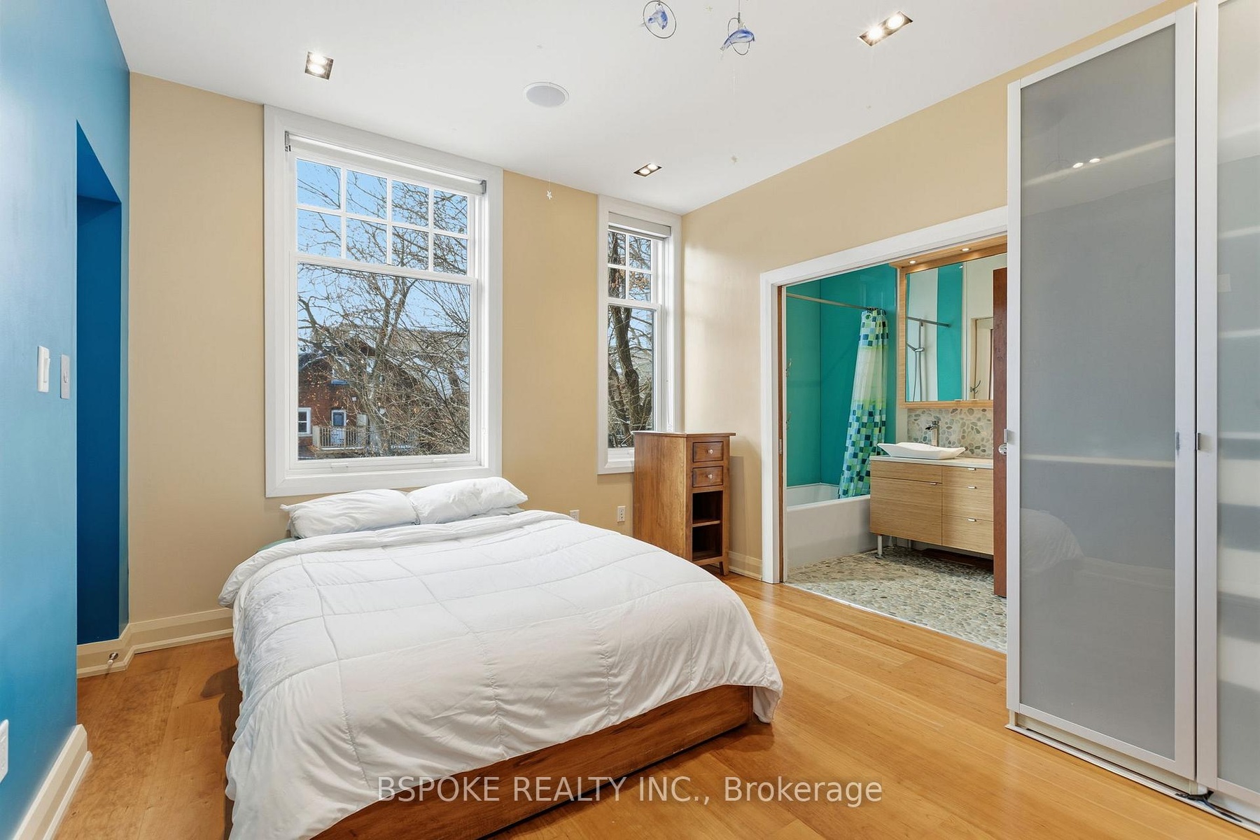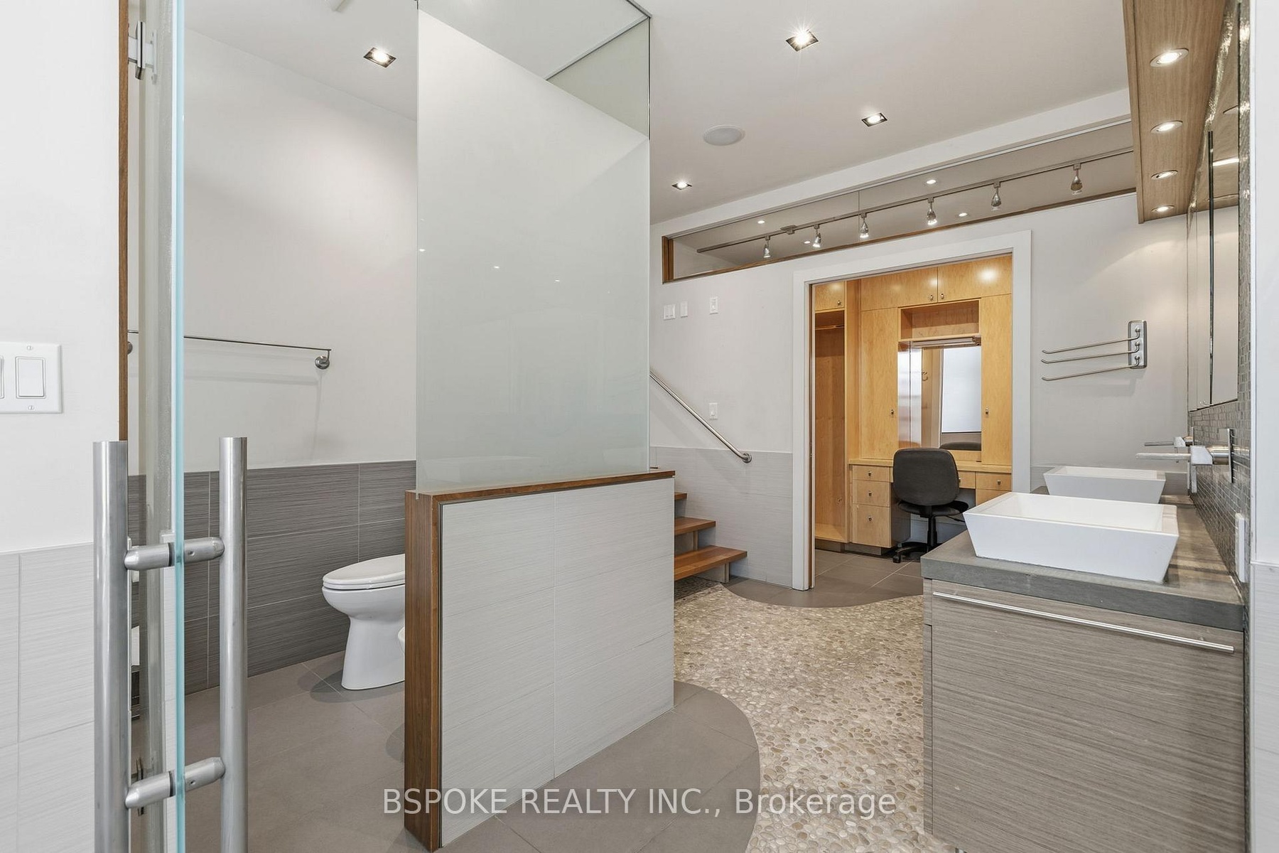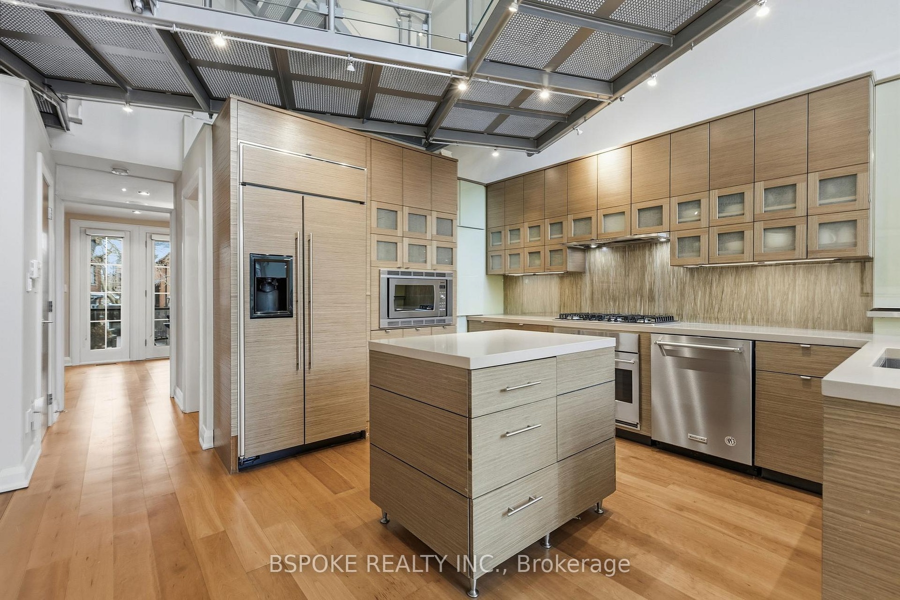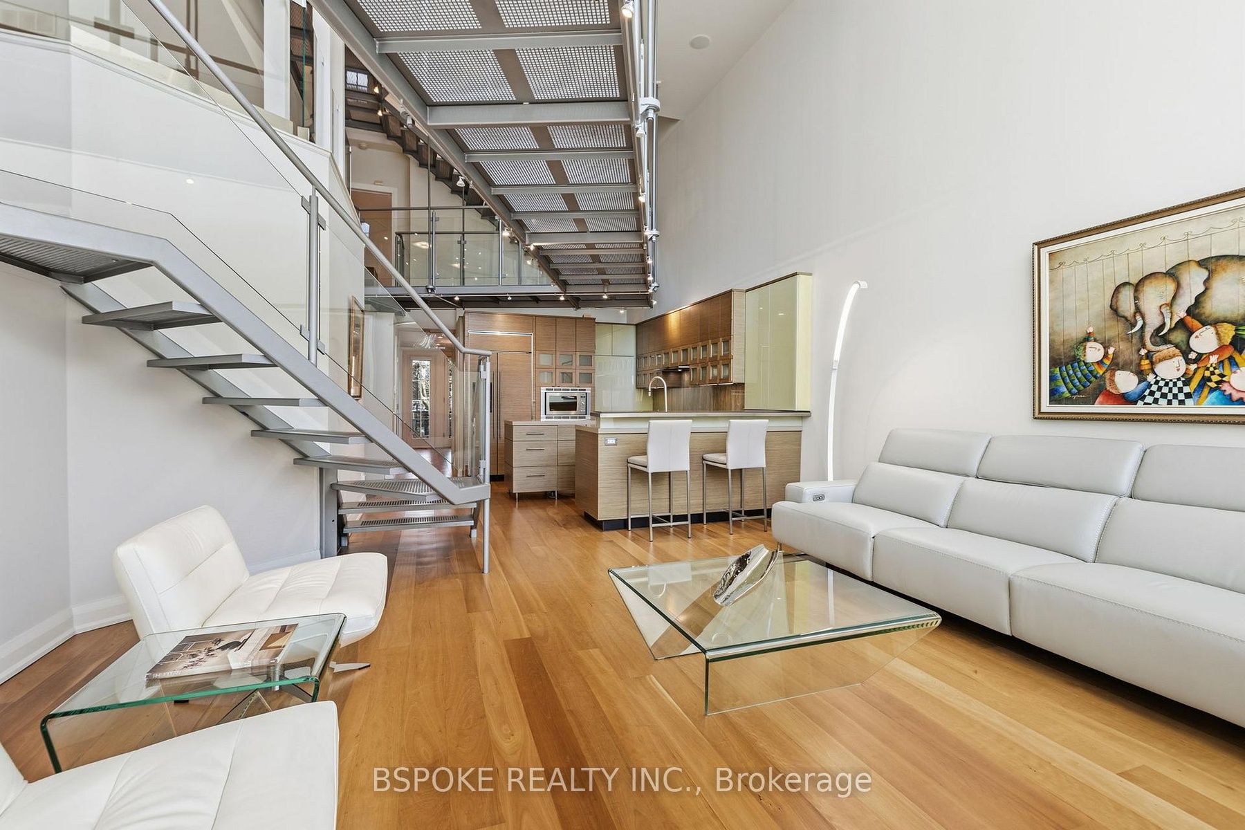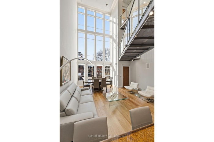 Some homes unfold as you move through them--and the furnished main loft at 90 Madison Ave is one of them. More than 3,200sqft of striking architectural space unfolds across three levels, linked by custom glass-and-metal catwalks and lit by a soaring west-facing wall of glass. With 27-ft ceilings and warm, heated Brazilian wide-plank hardwood floors, this is an Annex rental that lives large. On the main level: a generous open living/dining area walks out to a quiet west-facing terrace over a private backyard. The sleek walnut-and-quartz kitchen is built to perform, with a 5-burner gas range, oven, fridge-freezer, dishwasher, microwave, double sink and a breakfast bar. There's also a discreet powder room, mudroom-style storage, and an enclosed office/media room that could easily flex as an additional bedroom. A private elevator connects all three levels. Upstairs, a built-in family lounge separates two bedroom suites. The east-facing primary offers a covered balcony, a floor-to-ceiling custom walk-in closet w/ vanity, and an indulgent 8-piece ensuite: heated pebble-tile floors, jacuzzi tub, glassed-in shower, double vanity, toilet and bidet. The second bedroom has a large closet and its own 5-piece ensuite.The top floor adds two more bedrooms-one with vaulted ceilings, covered balcony and double closet; the other with vaulted ceilings, two skylights, two double closets, and interior windows overlooking the living space. A full family bathroom with waterfall tub/shower, double sinks and great storage serves both. Extras? Every bathroom has heated floors. There's second-floor laundry with built-ins, security cameras front and back, four-car parking (two side-by-side surface spots + two tandem under the carport), and yes-utilities and furnishings are included. Set on a premium Annex street, you're walking distance to Dupont, Spadina and St George stations, Bloor St, Yorkville, and some of the city's top schools: UTS, ICS, Mabin, Huron, RDS, Royal St. George's and U of T.