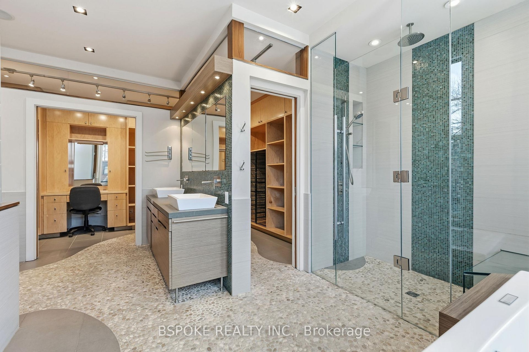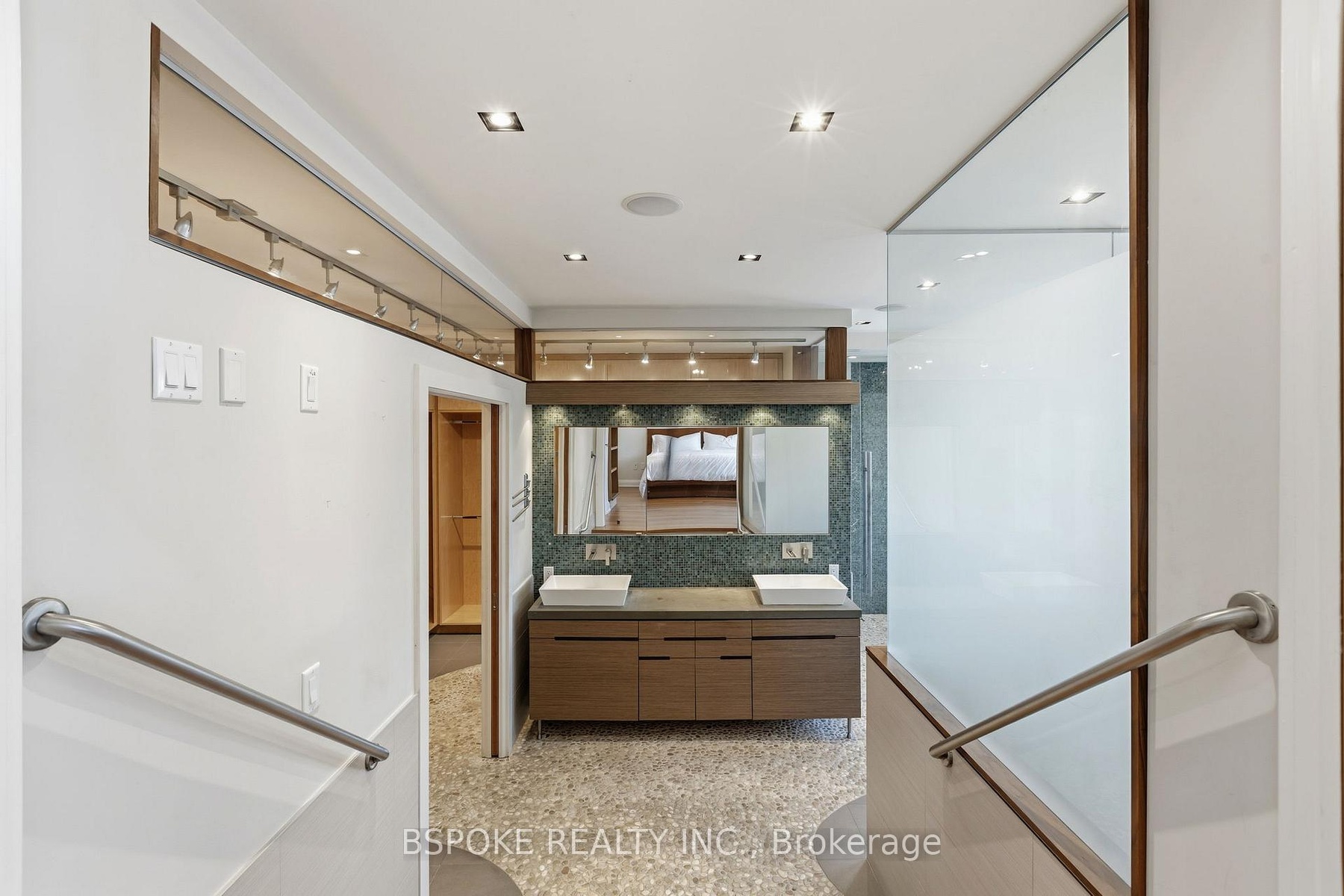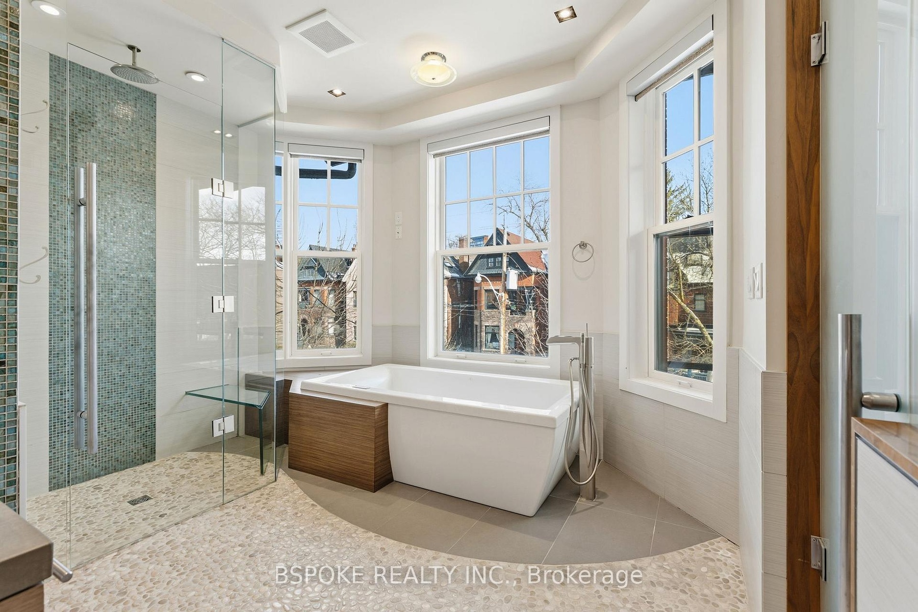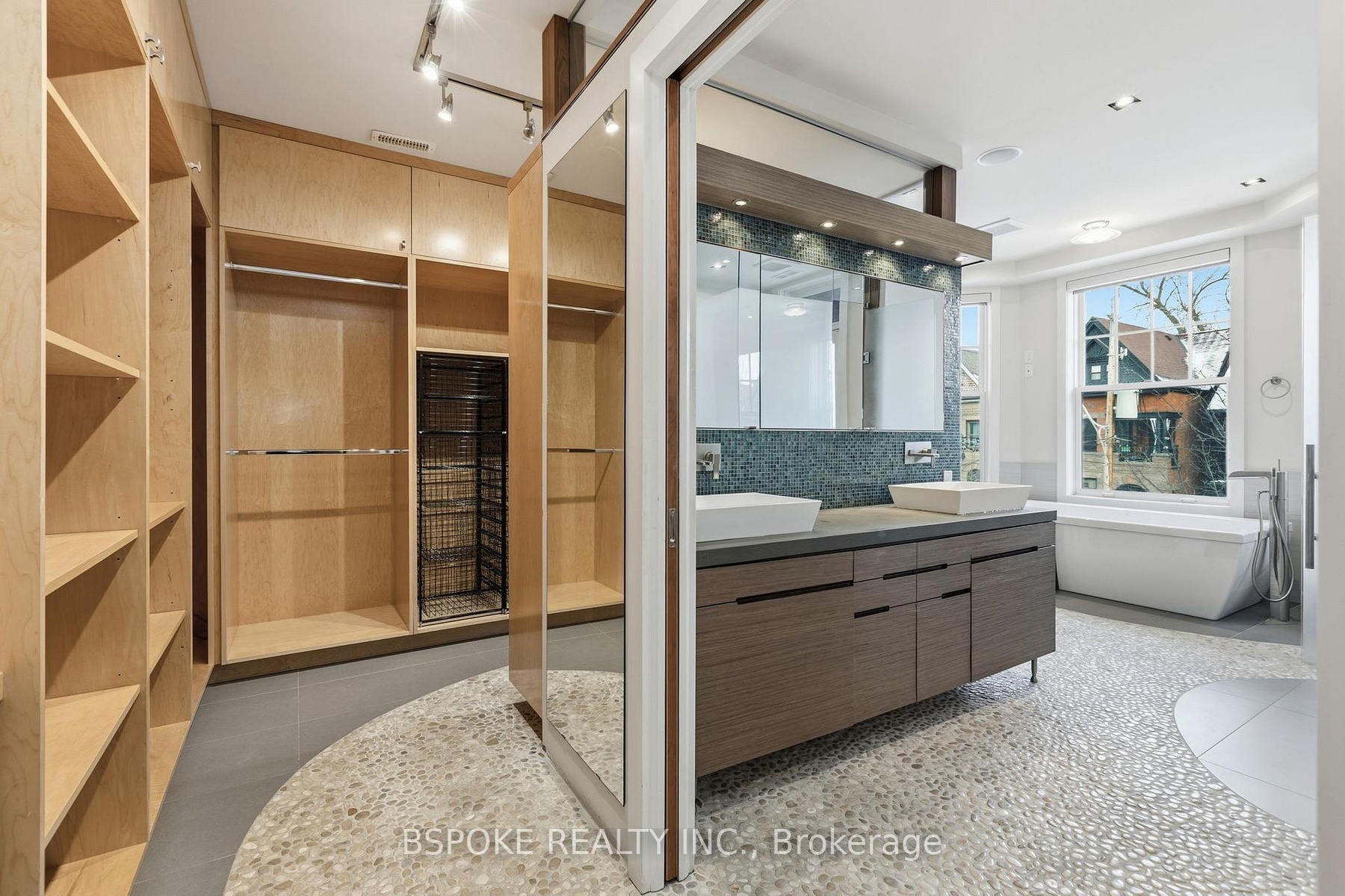 Some homes unfold as you move through them--and the furnished main loft at 90 Madison Ave is one of them. More than 3,200sqft of striking architectural space unfolds across three levels, linked by custom glass-and-metal catwalks and lit by a soaring west-facing wall of glass. With 27-ft ceilings and warm, heated Brazilian wide-plank hardwood floors, this is an Annex rental that lives large. On the main level: a generous open living/dining area walks out to a quiet west-facing terrace over a private backyard. The sleek walnut-and-quartz kitchen is built to perform, with a 5-burner gas range, oven, fridge-freezer, dishwasher, microwave, double sink and a breakfast bar. There's also a discreet powder room, mudroom-style storage, and an enclosed office/media room that could easily flex as an additional bedroom. A private elevator connects all three levels. Upstairs, a built-in family lounge separates two bedroom suites. The east-facing primary offers a covered balcony, a floor-to-ceiling custom walk-in closet w/ vanity, and an indulgent 8-piece ensuite: heated pebble-tile floors, jacuzzi tub, glassed-in shower, double vanity, toilet and bidet. The second bedroom has a large closet and its own 5-piece ensuite.The top floor adds two more bedrooms-one with vaulted ceilings, covered balcony and double closet; the other with vaulted ceilings, two skylights, two double closets, and interior windows overlooking the living space. A full family bathroom with waterfall tub/shower, double sinks and great storage serves both. Extras? Every bathroom has heated floors. There's second-floor laundry with built-ins, security cameras front and back, four-car parking (two side-by-side surface spots + two tandem under the carport), and yes-utilities and furnishings are included. Set on a premium Annex street, you're walking distance to Dupont, Spadina and St George stations, Bloor St, Yorkville, and some of the city's top schools: UTS, ICS, Mabin, Huron, RDS, Royal St. George's and U of T.
