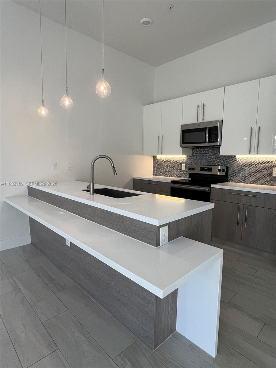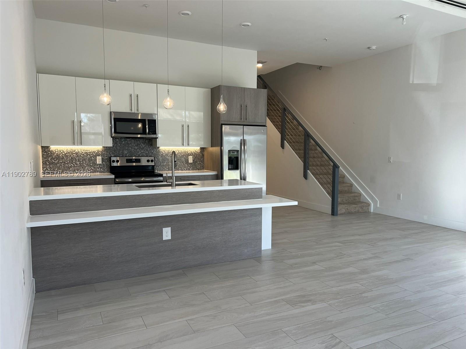 This beautiful 2-story townhouse is located in the desirable gated community of Strata at Plantation. High ceilings and an open floor plan create a bright and elegant atmosphere throughout the unit. The kitchen with sleek European cabinetry, stainless steel appliances, and a signature island is perfect. Designer bathrooms and contemporary finishes add a luxurious touch. Ceramic tile on the main level and plush carpeting upstairs. The primary suite features a spa-like bathroom, a closet, and a private balcony. The 2 bedrooms are filled with natural light. Sliding glass doors from the living room open to a common garden area, ideal for outdoors. Close to The clubhouse.