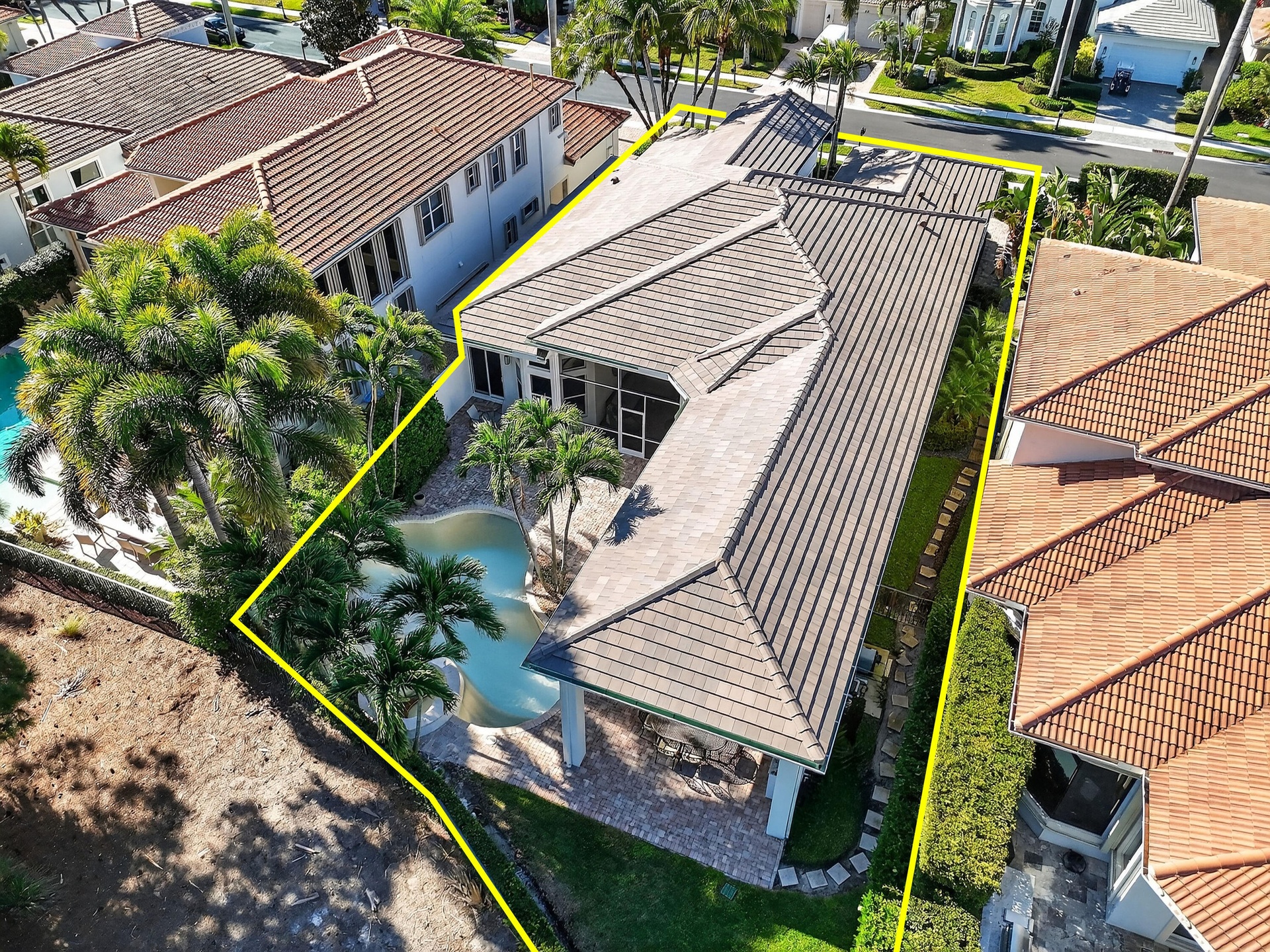 Notable upgrades include a new roof (2025), impact windows and doors, a Sonos sound system, newer A/C units, EV charger, golf-cart parking and path, an expanded widened paver driveway, fresh exterior paint, attic storage, and garage cabinetry.
