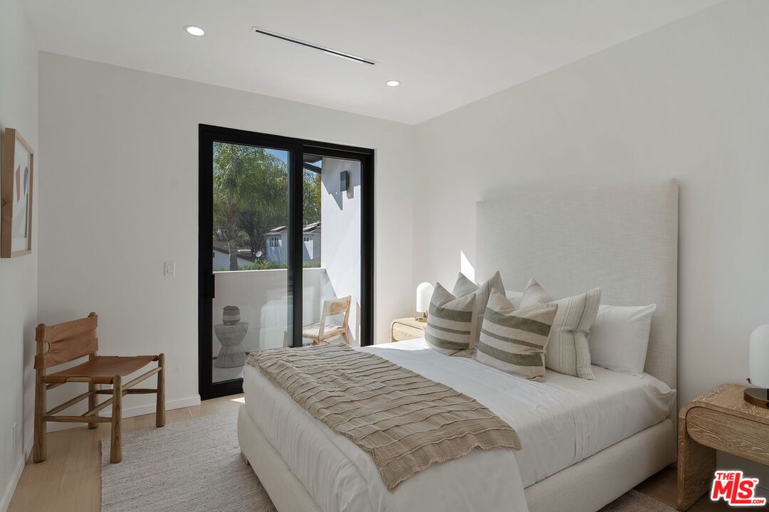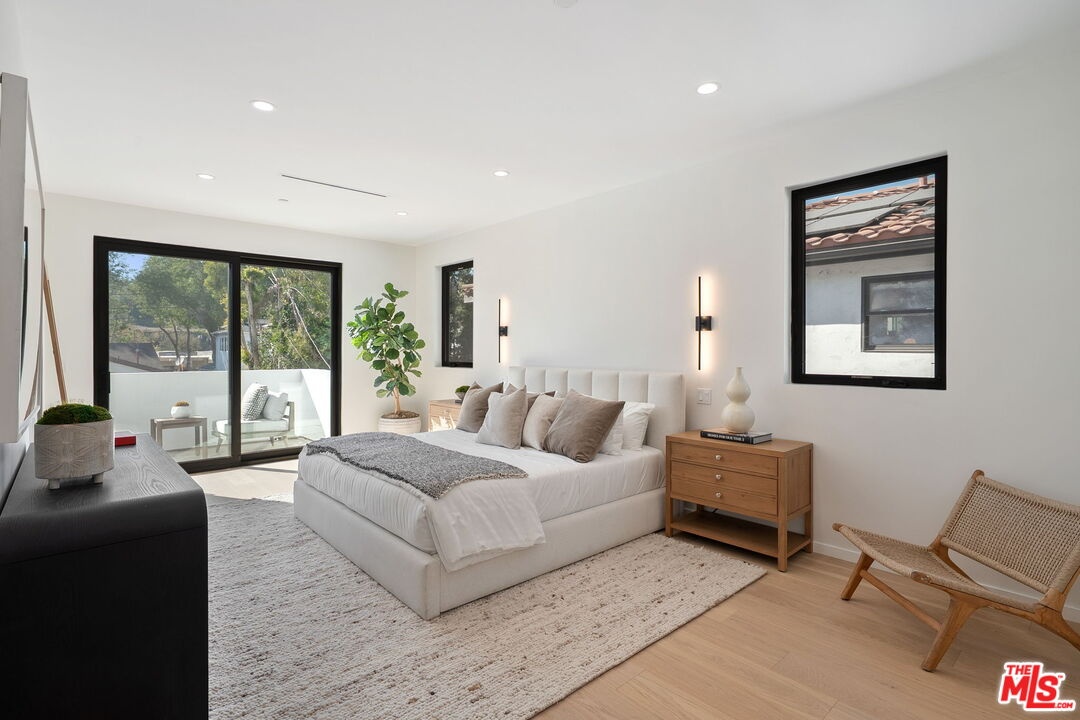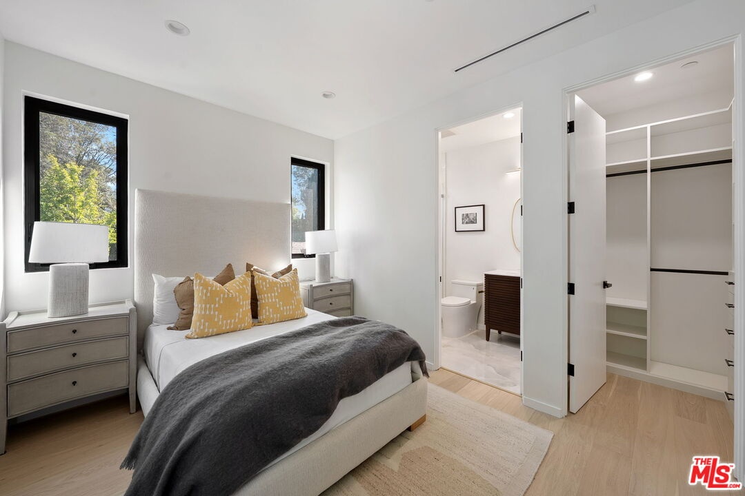 This exquisite 5-bedroom, 7-bath contemporary masterpiece in Beverlywood's exclusive HOA with 24-hour armed security patrols, blends high quality craftsmanship with modern luxury. This newly built estate offers a large sparkling pool, expansive grassy yard, and ficus trees that will only grow more mature and add even greater privacy. Inside, wide-plank white oak floors, custom millwork, and designer finishes elevate every space. The open-concept design, with disappearing Fleetwood sliding glass doors, seamlessly connects the interior to a private backyard oasis featuring a sunlit patio and built-in gas line for outdoor cooking. The chef's kitchen shines with Sub-Zero and Wolf appliances, custom solid white oak cabinetry, an oversized quartzite island, walk-in pantry, and a wine fridge with custom shelving. Each spacious bedroom includes an en-suite bathroom and bespoke closet, with all four upstairs bedrooms opening to private balconies. The primary suite stuns with a spa-like bath, dual vanities, soaking tub, oversized shower, and a tailored walk-in closet. Additional highlights include a sunlit office, Control4 smart home automation, large laundry room with storage and a sink, LED lighting, a fully fenced yard with ficus hedges, and lush landscaping with irrigation. A rare gem where luxury and comfort converge in the heart of Beverlywood.