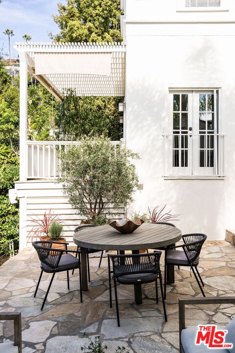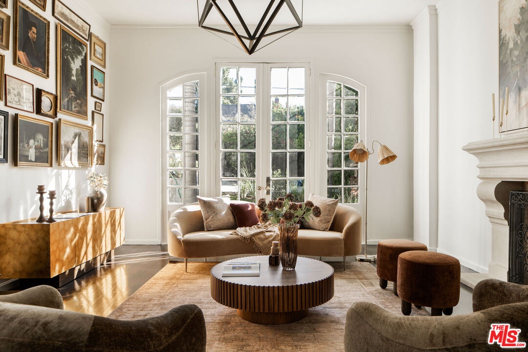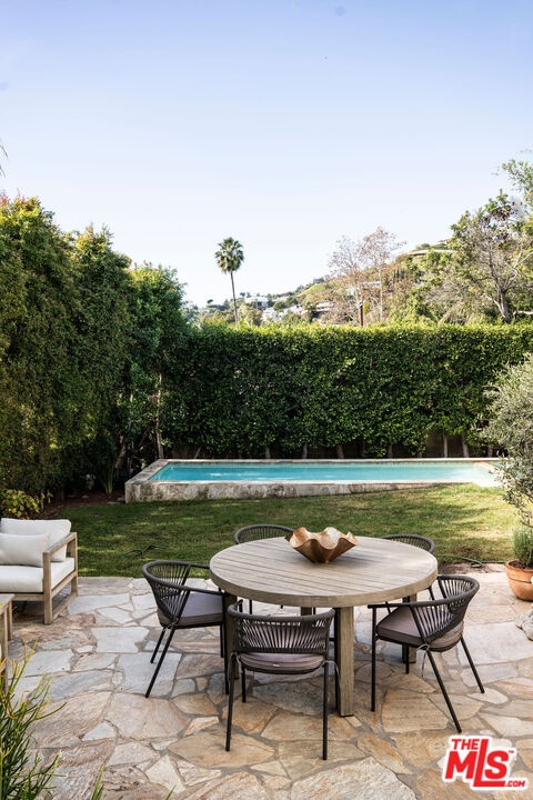 Tucked into a rare, quiet cul-de-sac in the Hollywood Hills just moments from the energy of Runyon Canyon this timeless residence offers classic elegance with an unmistakable sense of old Hollywood glamour.Hedged, gated, and exceptionally private, the home unfolds behind a graceful flagstone driveway and patios, setting the tone for a serene retreat perched just below some of the neighborhood's most significant estates. Inside, beautiful natural light pours through the rooms, highlighting a classic, enduring design that feels both refined and warmly livable.The pristine chef's kitchen is finished with Carrera marble counters, echoed again in the primary and guest baths, lending a cohesive sense of understated luxury throughout. The primary suite features a generous walk-in closet, enhancing the sense of comfort and ease. Generous interior spaces flow seamlessly outdoors, creating abundant room for gathering, entertaining, or quiet moments alike.Sweeping hillside and city views provide a cinematic backdrop. A pool and in-ground spa anchors the outdoor living spaces, offering a tranquil escape with the city just beyond. Side-by-side parking an uncommon luxury in the area adds ease and practicality rarely found in the neighborhood, where tandem parking is the norm.Peaceful, elegant, and effortlessly timeless, this is a Hollywood Hills home that honors the past while living beautifully in the present.