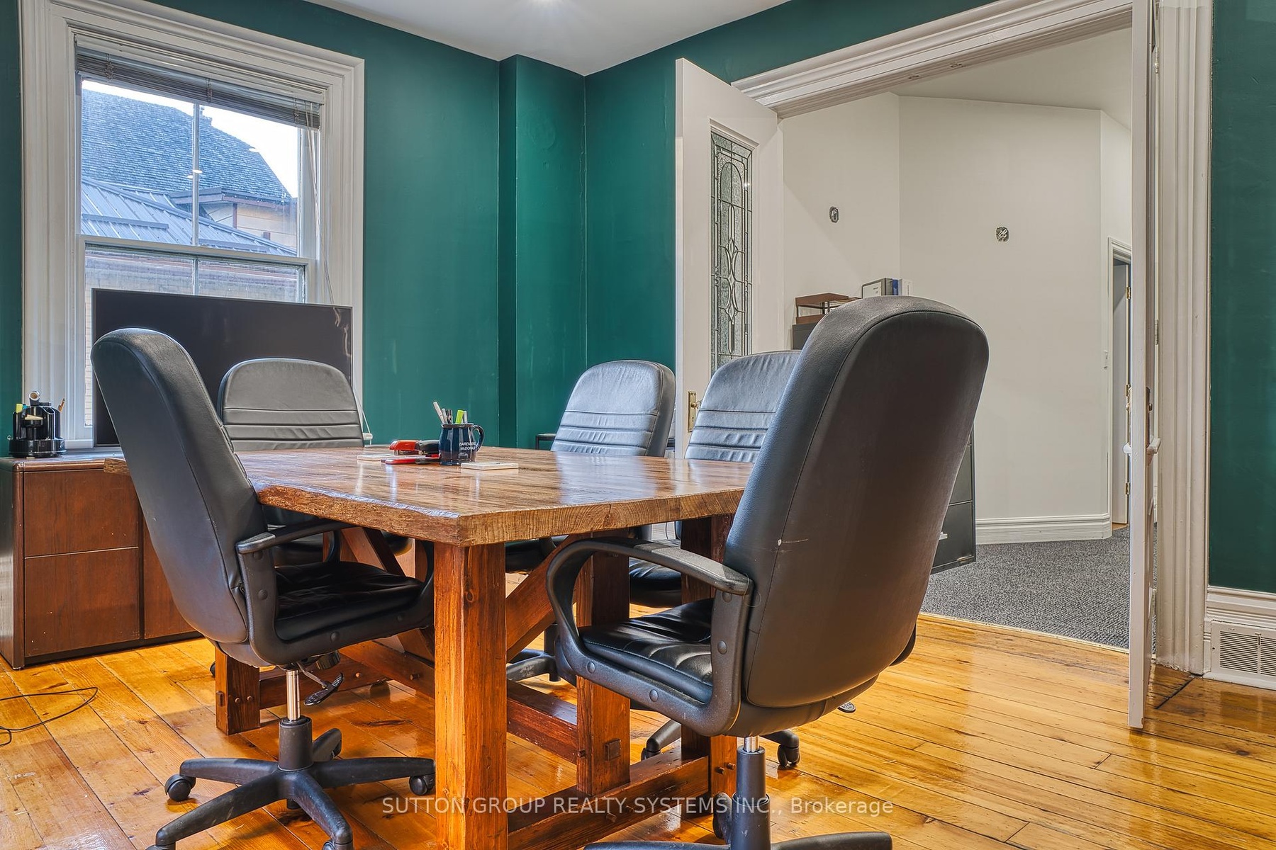 A rare opportunity to own a beautiful, historic mixed-use commercial/residential property located on a main Street in Stratford. Prime, high-visibility location with excellent street presence. The upper level features a spacious two-bedroom apartment with in-suite washer and dryer, offering comfortable residential living or strong rental potential. The main & second floors were previously occupied by a law office that relocated solely to accommodate a need for additional space. Extensively updated throughout, the property has undergone significant improvements, including complete replacement of former knob-&-tube electrical wiring, installation of new high-efficiency lighting, Ethernet cabling run to all rooms, patching & repainting of most of the building, new flooring throughout the entire upper unit & select areas of the main floor & new toilets in both bathrooms. This is an excellent income-producing property offering the flexibility to own & operate your business on-site while benefiting from supplemental residential rental income. Ideal for entrepreneurs seeking the perfect work-life balance. Zoned MUR, permitted uses include residential & a wide range of business opportunities such as professional or medical offices, clinics, studios, personal care establishments, pet grooming, private or commercial schools. Private parking lot accommodating seven or more vehiclesA truly versatile investment with exceptional visibility in one of Stratford's most desirable area.