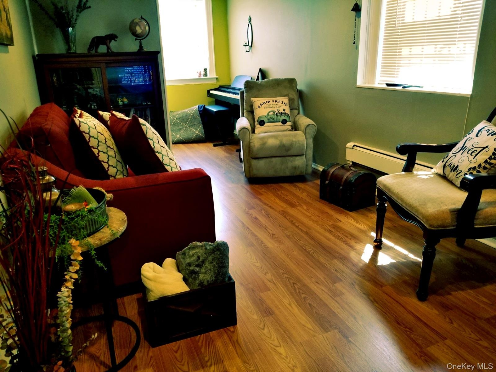 Second Floor: Spacious two-bedroom apartment with a charming front porch, all hardwood floors, and a bright layout including living room, dining area, and eat-in kitchen. Approximately 920 sq. ft., equipped with stainless-steel, energy-efficient appliances.