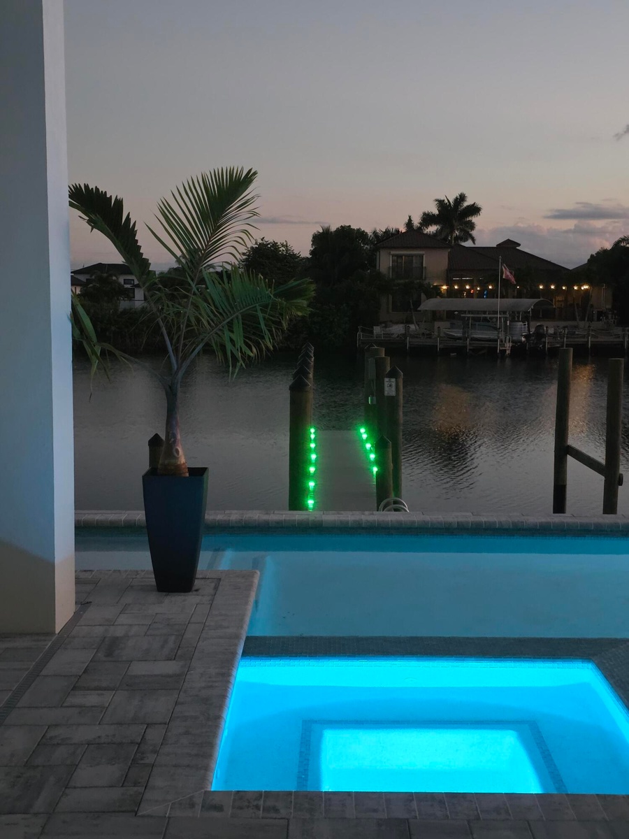 NEW CONSTRUCTION one-of-a-kind custom-designed home, not a builder's model. Featuring 3 bedrooms, 3 bathrooms, and a versatile den or office that can be used as a permitted fourth bedroom. The home overlooks a 260-foot-wide south-facing canal with no bridges to the Gulf. Dock with 2 slips. Inside, the home offers 2,653 sf of A/C space with a total of 4165sf under roof. 14ft. soaring ceilings and 10-foot impact sliders that lead to a nearly 800 square foot covered lanai. The outdoor space includes a summer kitchen, bar, and a large fully automated saltwater pool with custom spa and sun shelf, all controllable from your phone.