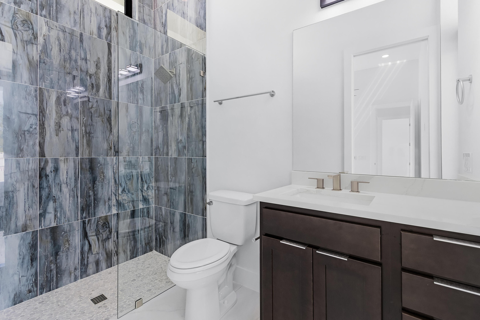 The primary suite features a spa-inspired bath with dual vanities, seven-foot LED backlit mirrors, a soaking tub, and a double-entry his and her shower. Throughout