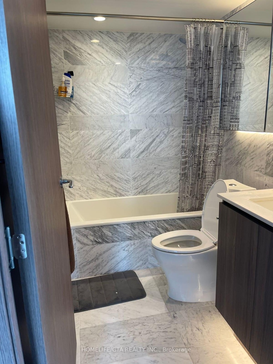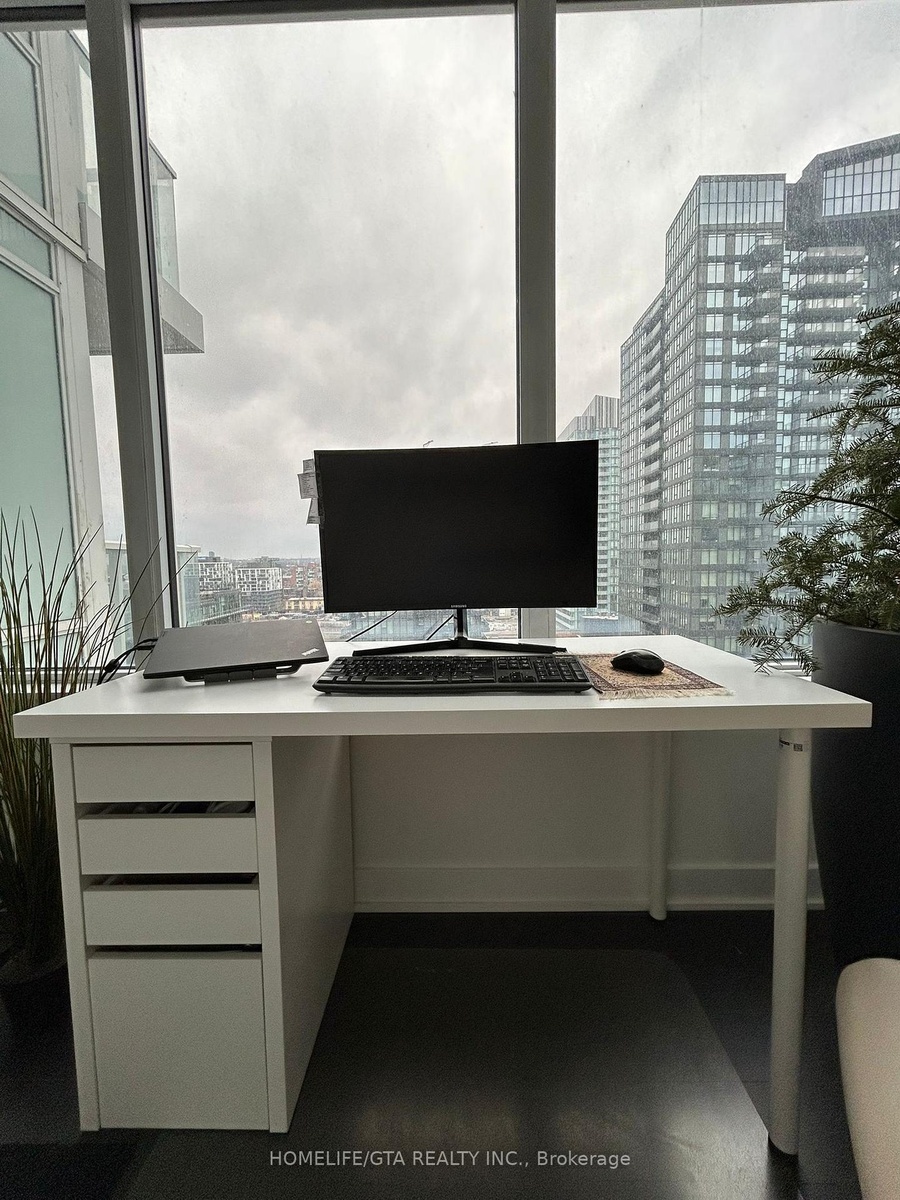Short-Term Rental Available. Bright 1 Bedroom + Den | Prestigious Lake Shore Location. Spacious and sun-filled 1 Bedroom + Den condo with stunning water and city views. The den is ideal as a home office or second bedroom. Conveniently located with the streetcar at your doorstep and just minutes from the Harbour Front, Gardiner/DVP, Union Station, Rogers Centre, and CN Tower. Steps to restaurants and the new flagship Loblaws. Enjoy premium building amenities and a vibrant urban lifestyle. Furniture includes Bedframe with mattress, sofa, dining table, TV unit, office desk and chair.