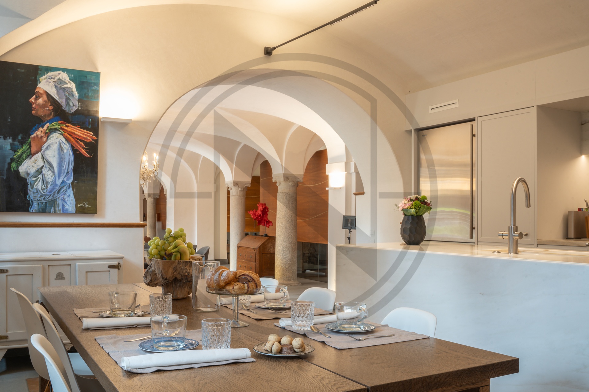 The property features modern systems and top-quality finishes, the result of a thorough and meticulous renovation that combined contemporary comfort with respect for the residence's history.