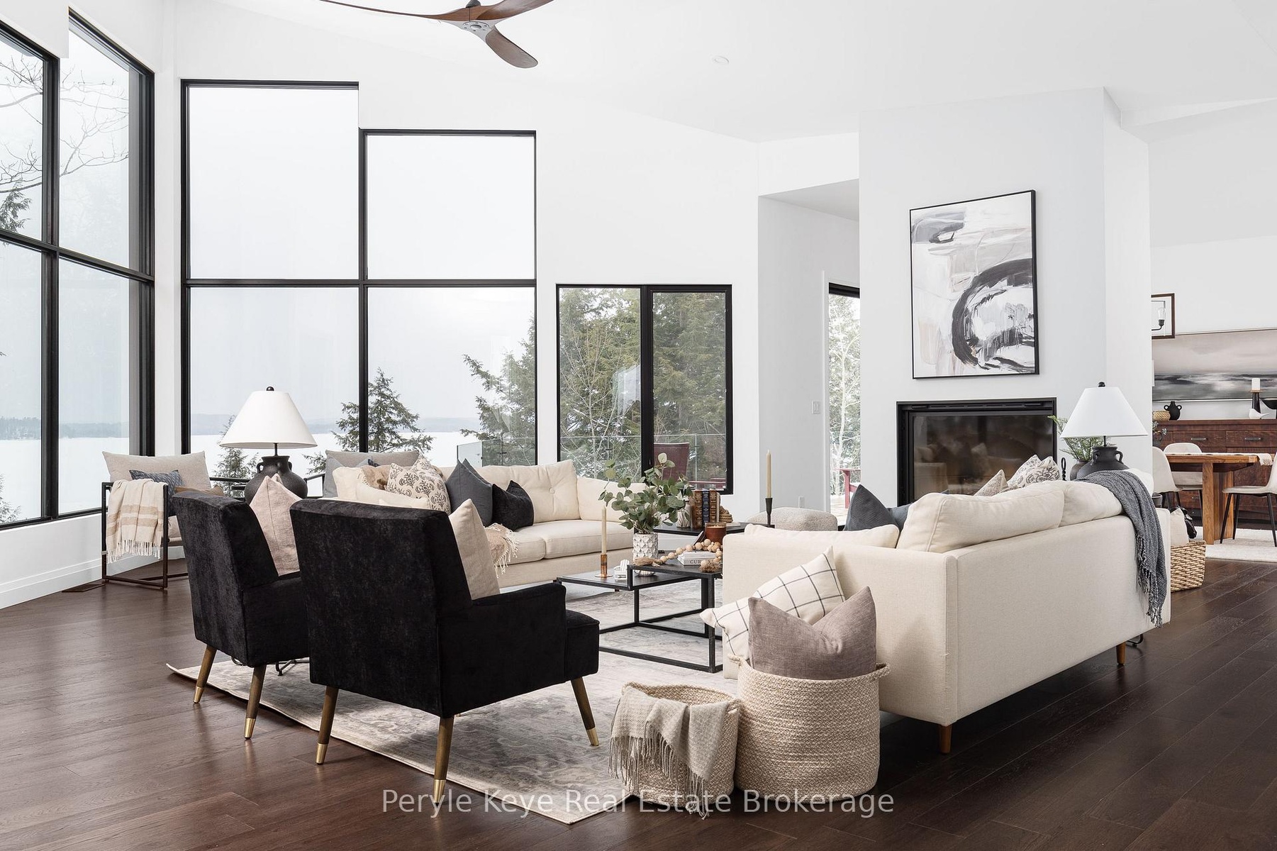 Luxury comes in many forms, but the most thoughtful designs don't compete w/ nature - they showcase it. At this lakefront masterpiece, the view isn't an accessory - it's the headline! Set on 4.39 Ac w/ 298 of pristine Lake Vernon shoreline, this newly completed 6,200+ sq ft lakefront retreat (including a 900 sq ft guest suite) is a masterclass in bold & refined Muskoka living. Located in Ashworth Bay-an exclusive, high-end community w/ an uncrowded shoreline & no neighbours in sight-just 15 min to Huntsville by car or boat. At this end of the lake, serenity & adventure coexist. Step inside & be WOWED! Panoramic lake views. Expansive 16 ceilings in the great room. Natural light floods the space & walls of glass erase the line between inside & out! A Valcourt Frontenac fireplace adds warmth, turning gatherings into experiences. Every inch of this home was designed to elevate how you live, relax & entertain. Seamless indoor-outdoor flow invites lake life at its best. A frameless glass deck soaks in breathtaking views, & the Muskoka room w/ a wood-burning stove extends your enjoyment beyond summer. At the shoreline, the floating dock offers deep water off the edge & a sandy entry at shore. The fully finished walkout lower level features 3 bedrooms plus space for a rec room, gym, or media lounge. Step outside the primary suite to a stone patio pre-wired for a hot tub. A self-contained guest suite offers 2 bedrooms, a full kitchen, private laundry & its own stone patio. The oversized, insulated & heated garage features 12' doors, large windows, an EV-ready panel & smart home wiring. Designed for every season w/ in-floor radiant heating, a Mitsubishi ZUBA heat pump, & a whole-home automatic generator & more. Bell Fibre internet keeps you connected. Some properties add to your portfolio. A rare few expand your way of living. This one does both. Design that preserves your time, protects your privacy, & recentres your perspective. This one will become your favourite chapter!