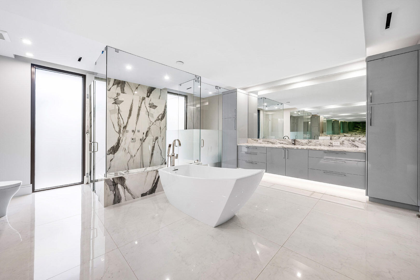 Upstairs, a central lounge connects the bedroom suites. The primary retreat features a spa-style bathroom with dual vanities, walk-in closets, a morning bar, and private balcony access. Additional en-suite bedrooms are generously sized, many with balconies or terraces.