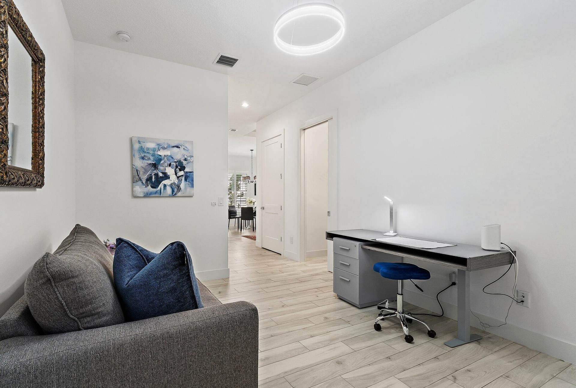 Welcome to this beautifully furnished and thoughtfully appointed home in the exclusive community of Banyan Cay. This newer construction 2 bedroom plus den, 3 bathroom residence in the heart of West Palm Beach offers the perfect blend of style, comfort, and convenience. Featuring many beautiful upgrades throughout like wood look tile flooring, plantation shutters, built out closets, an upgraded patio with electric awning and the Egg BBQ. This gorgeous home offers a formal dining room and an open floor plan kitchen as the perfect space to entertain and cook. The adjoining large family room opens up to a private backyard for plenty of room to entertain, play and lounge. Solar panels ensure impressively low energy costs, making this home as efficient as it is beautiful. Banyan Cay is located close to downtown, the outlets, Palm Beach Island and i95. Adjacent to the community is the new Belgrove Hotel and Dutchman's Pipe, a private country club (with voluntary membership) featuring a Jack Nicklaus designed Golf Course and a racquet center with tennis, pickle, and padel courts right next to the community.
