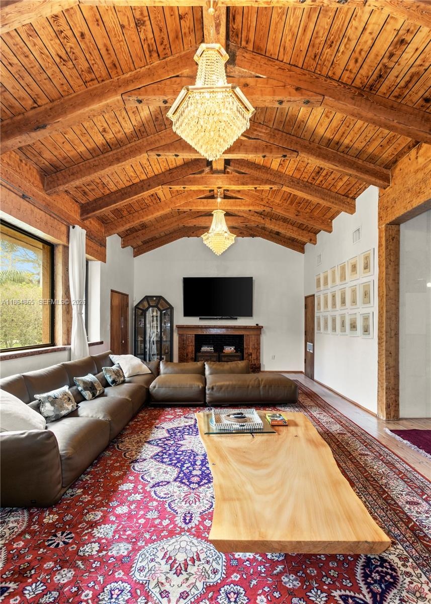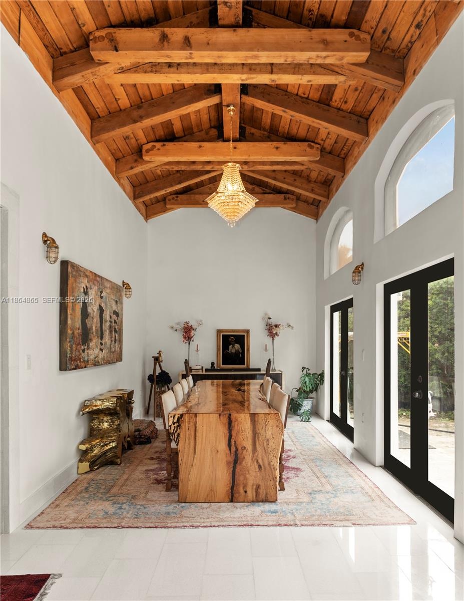 Experience unparalleled sophistication at this exclusive Pinetree residence. With exposed beams and 13-foot vaulted ceilings, the four-bedroom, three-bathroom home seamlessly blends modern aesthetics with classic charm. The expansive kitchen overlooks a pristine pool and lush garden, creating a refined ambiance for both relaxation and entertainment. Nestled in La Gorce's most sought-after neighborhood, this home exudes exclusivity. Adjacent to a park, it epitomizes upscale living. Plans for a second-floor expansion, adding over 2,000 square feet, offer an opportunity to elevate this residence to new heights of grandeur. Welcome to a world where luxury meets meticulous design in every detail, inviting those with a taste for the extraordinary.