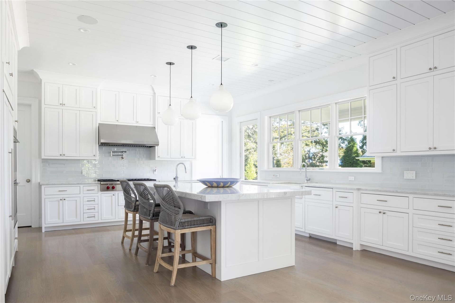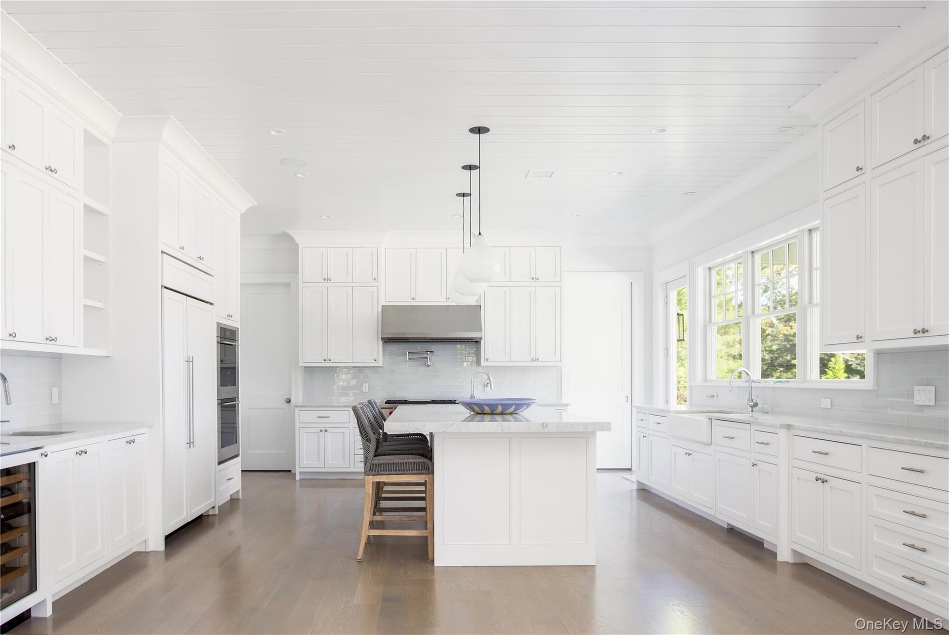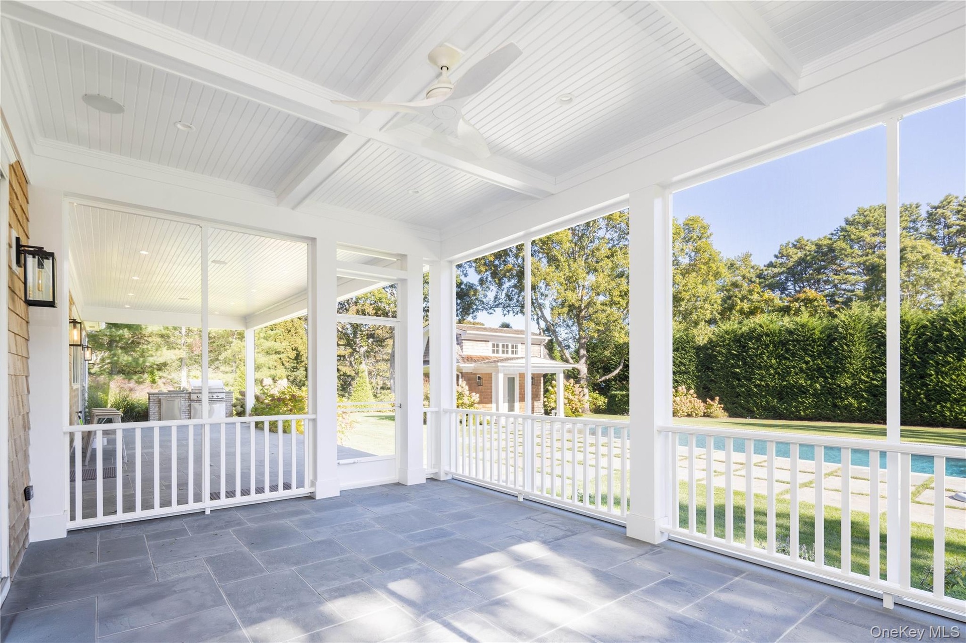 In the heart of Westhampton Beach Village, discover an exquisite shingle-style Hamptons estate, blending timeless architecture and design with modern sophistication. Set on a stunningly landscaped acre, this 7,000 sq. ft. residence spans three levels of finely crafted living, offering both striking entertaining spaces and luxurious private retreats. Coffered ceilings and wide-plank white oak flooring welcomes you into sunlit interiors, where clean architectural lines and a refined neutral palette create an atmosphere of coastal elegance. The kitchen, a culinary showcase, features Sub-Zero, Wolf and Miele appliances, anchored by an oversized Carrara marble island. Multiple living areas flow effortlessly indoors and out, highlighted by ceiling height and walls of glass, flooding the home with natural light. Designed with versatility in mind, the home is equally suited for informal gathering or grand-scale entertaining. The private quarters include five gracious ensuite bedrooms, each offering generous proportions and refined finishes. The primary suite is a sanctuary unto itself, complete with a spa-like bath and private sun terrace overlooking the grounds. The expansive lower level, with soaring 10’ ceilings, is designed for recreation and relaxation. A state-of-the-art gym with full bath, sauna, spacious media lounge and theatre create the ultimate Hamptons retreat experience. Outdoors, a private oasis. An 18’ x 44’ heated saltwater gunite pool, bluestone patio, outdoor kitchen and screened porch provide the perfect backdrop for summer entertaining. All enhanced by the pool cabana and fire pit with the privacy of exquisite mature landscaping. The home is enhanced with a full home generator, advanced technology, including integrated security and Wi-Fi enabled climate control, offering ease, comfort, and peace of mind. 100 Griffing Avenue redefines Hamptons luxury—a rare offering, pairing architectural distinction with the coveted convenience of Westhampton Beach Village.