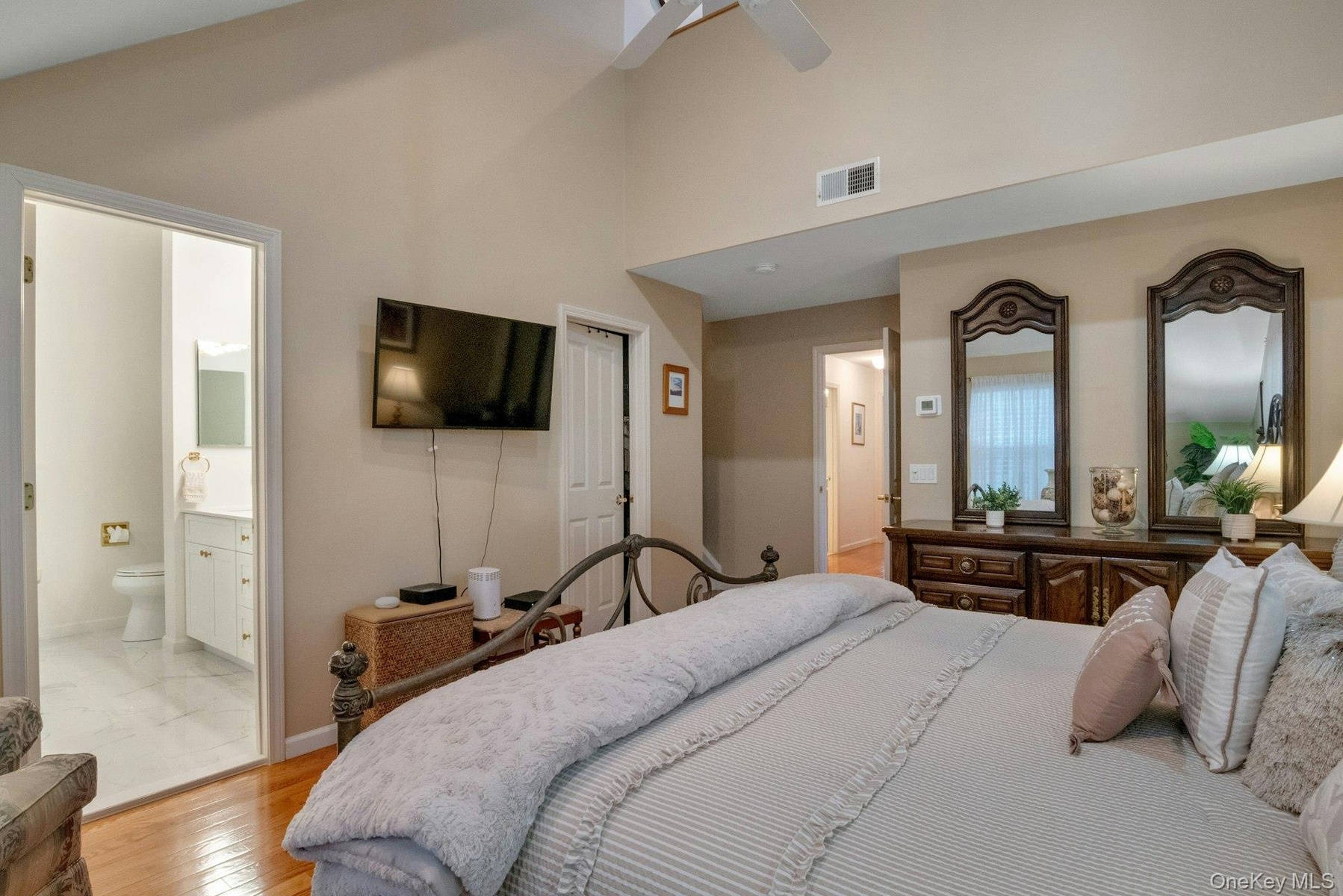 Enjoy the expansive living room and dining room featuring hardwood floors, a cozy gas fireplace, and dual sliding doors leading to the private patio. This main-level layout provides a perfect combination of comfort, style, and space for hosting guests.