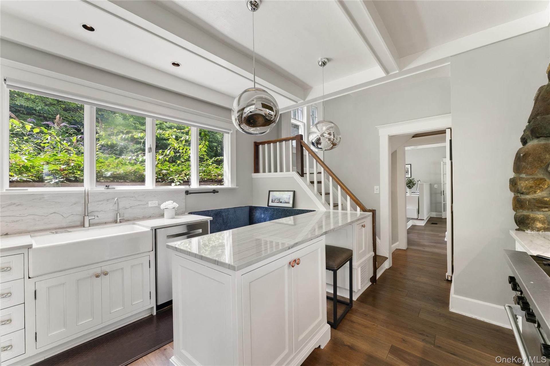 Thoughtfully renovated in 2020, this home masterfully preserves its historic character—coffered ceilings, wide moldings, original stone fireplace, and custom built-ins—while infusing every space with curated, contemporary design and upscale finishes. Nestled on 1.8 beautifully landscaped acres with stone patios, fruit trees, and fenced green spaces perfect for pets, this property feels like a secluded retreat, yet remains conveniently close to the city. Wake up to stunning river sunrises, sip your morning coffee on the expansive primary suite balcony as sailboats drift by, or meander down your private stone path to the 10-mile Esposito Trail leading to Piermont and South Nyack’s shops, cafes, marinas and waterfront parks. Enjoy over 3,300 square feet of living space (not including the partially finished attic and basement) with incredible flexibility. The main floor showcases an open-concept layout with a gracious living room, family room, dining room, and three river-facing sunrooms or offices, each bathed in natural light and perfect for remote work or creative pursuits. The chef’s kitchen is a dream for entertaining, featuring marble countertops, a six-burner Viking range, and Sub-Zero refrigerator, all opening out to a sun-drenched patio with river views—perfect for seamless indoor-outdoor gatherings. The sprawling primary suite is a retreat, with spa-like bath, custom-built closets, and direct access to a private river-facing deck to relax and unwind. Three additional bedrooms (two with built in custom beds, and two with an adjoining room with river views, perfect for a cozy flex space as a lounge/playroom or additional office complete the second floor. Upstairs, the partially finished attic offers added bonus space for movie nights, legos or gaming. The partially finished walkout lower level adds even more flexibility, with room for a gym, rec room, wine cellar, an additional guest or au pair suite, and enormous storage space. An exterior, climate-controlled bonus space offers the perfect setting for a private office, music studio, or artist’s workshop. And the original Carriage-style detached two-car garage adds charm and functionality. With quick access to the MC Bridge just minutes away, and only 13 miles to the George Washington Bridge, this is a rare opportunity to own a true Hudson River haven—a place to unwind, entertain, and reconnect with nature, without leaving convenience or elegance behind. This is more than a home—it’s a lifestyle. Tranquil, inspiring, and completely turnkey, this one-of-a-kind property is designed for those who appreciate architectural integrity, thoughtful design, and the beauty of riverfront living.