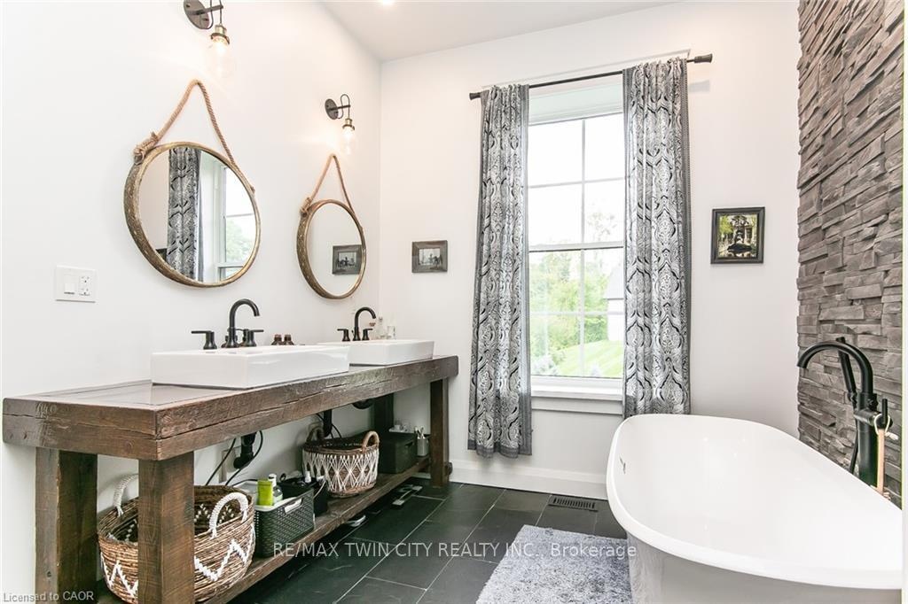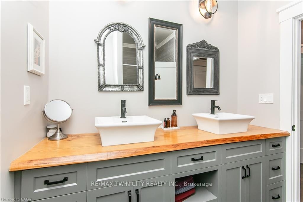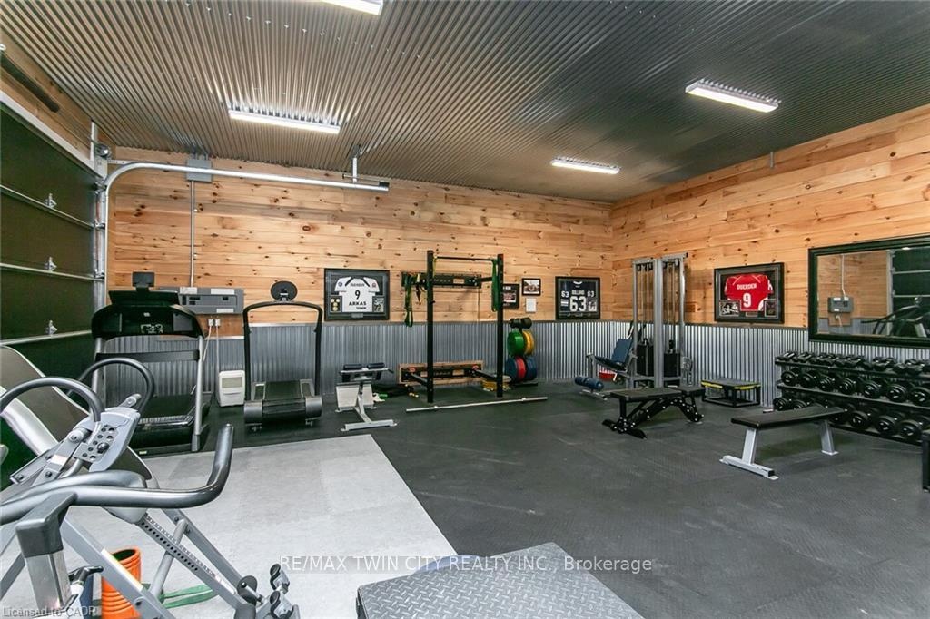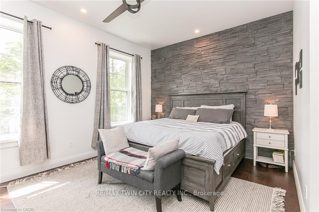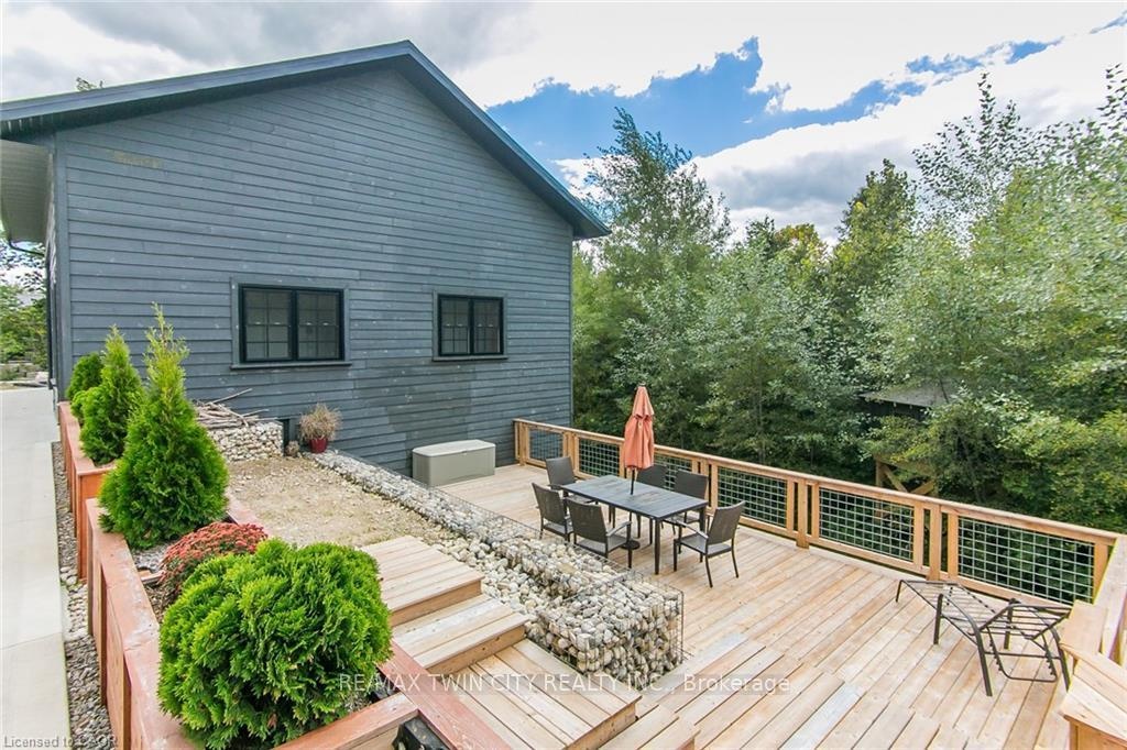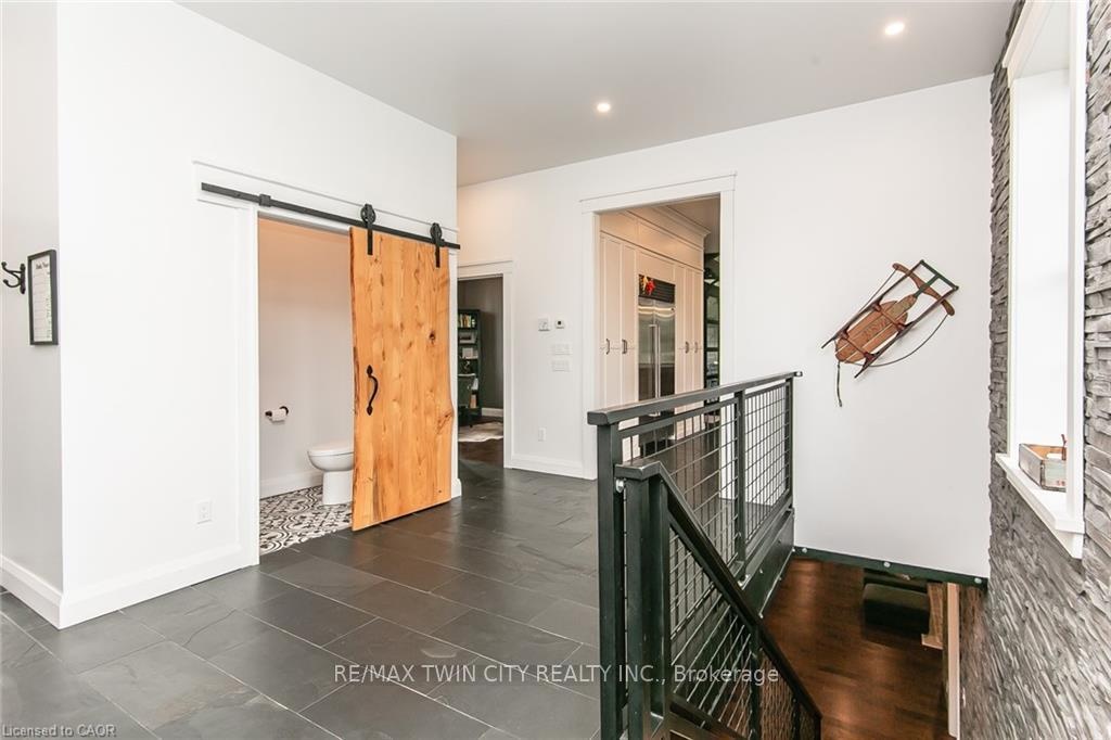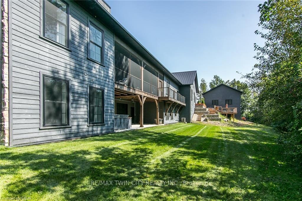 Spectacular Custom-Built Bungalow with Walk-out Basement, Triple Car Garage & Detached 2-Storey Garage & Shop on Two Acres-just 35-45 min from Waterloo! Nestled in an exclusive enclave of executive homes in Moorefield, this property offers a peaceful country setting with easy city access. Built like no other, it showcases structurally superior ICF (insulated concrete form) construction & a lifetime metal roof-the same quality extends to the det garage. Inside, the open-concept layout features exposed timber-frame details, soaring vaulted ceilings & 2 glass garage doors that open onto a 3-season porch.The kitchen, dining & living area impress w/ a stone f/p, concrete counters, oversized island & fantastic walk-in pantry w/ floor-to-ceiling storage. At its heart: an 8-burner Wolf gas stove, double ovens & upgraded range hood-over $40,000 in luxury appliances! Entertain year-round w/ the screened porch, complete w/ outdoor kitchen, brick hearth & fume hood for your bbq. The main floor also boasts a stunning primary suite w/ walk-in closet, spacious dressing rm & spa-inspired ensuite. A 2nd bedroom, currently an office, offers lovely treed views. A stylish mudrm, laundry rm & powder rm w/ live-edge barn door complete the main level. The fin w/o basement features heated floors, 2 bedrooms, 4-pc bath & expansive rec spaces-perfect for family gatherings or games night. 2 more w/o garage doors lead to the backyard & patio. For hobbyists, the 3-car gar is wired for an EV, while the sep insulated 2 storey wrkshp w/ electrical & wood stove provides endless options for projects, vehicles or gym. The nearly 2-acre property incl a pool-sized lot, new tiered deck, firepit area, treehouse & almost an acre of forest w/ a creek running through it. Your own private retreat!