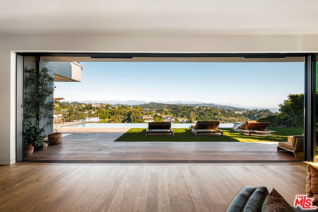 Masterfully conceived by HEH in collaboration with Von Studnitz Architects and Studio Preveza, this exceptional residence was designed as the personal home of an experienced developer/owner, one who truly did not miss a beat. Perfectly positioned at the end of one of Bel Air's most coveted and private view streets, the property offers rare privacy paired with breathtaking scale and presence. Behind gates and mature landscaping, the home reveals sweeping 270-degree views spanning Downtown Los Angeles, city lights, canyons, and the Pacific Ocean. Mornings begin with a beautiful sunrise from the primary suite, while evenings unfold with dramatic sunsets from both the front and rear decks, creating an ever-changing backdrop of light and atmosphere throughout the day. Inspired by the refined, effortless aesthetic of James Perse, the residence captures the essence of elevated California living modern yet warm, sophisticated yet relaxed seamlessly blending indoor and outdoor spaces. Impeccably finished, the open-concept floor plan is designed to frame panoramic city and ocean views from nearly every major room, complemented by rich, natural materials throughout. The layout includes a private first-floor bedroom suite thoughtfully separated from the main living areas, along with a dedicated office ideal for an owner constantly on the move. There are six spacious bedroom suites, including a luxurious primary retreat with a sitting room and private balcony, as well as subterranean guest quarters with a separate entrance, offering privacy and flexibility. Every detail reflects intention and experience from the private home theater and beautifully scaled living spaces to the seamless indoor-outdoor entertaining areas. Outdoor sitting and dining zones overlook a curated vegetable and herb garden, surrounded by citrus trees, French lavender, and Tuscan rosemary evoking a true Italian villa sensibility. The result is a rare fusion of California ease with a European, Italian-inspired lifestyle that feels romantic, timeless, and deeply livable. The outdoor experience is anchored by a 40 foot infinity-edge pool, expansive decks, and serene hillside gardens, creating a private urban oasis. Additional amenities include a state-of-the-art kitchen, fitness studio, three-car garage, and a wide, flat motor court accommodating three large SUVs or low-profile sports cars with ease. Designed with precision, warmth, and timeless restraint, this is a modern architectural residence in one of Bel Air's most desirable locations a property that must be seen in person to fully appreciate.