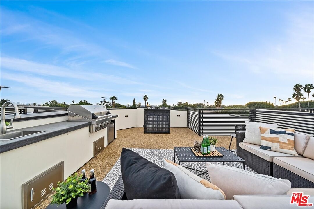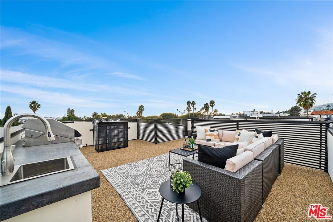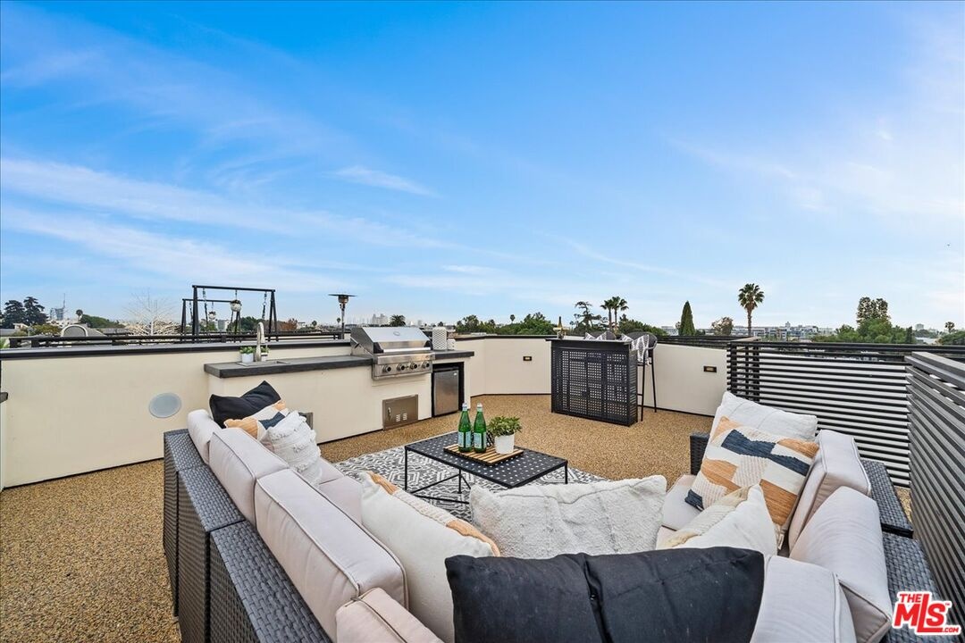 Introducing an exclusive collection of five newly built, gated small-lot residences in the heart of West Hollywoodeach residence with its own separate address, and this is the only one currently available. Thoughtfully designed for modern living, this three-bedroom home spans four levels and showcases a bright, open-concept floor plan with high ceilings, recessed lighting, custom flooring, and refined millwork throughout.The gourmet kitchen features premium white-and-gold appliances, designer finishes, and seamless flow into the spacious living area with an electric fireplaceideal for both everyday living and entertaining. The expansive primary suite offers a true retreat, complete with a spa-inspired bath featuring a soaking tub, glass-enclosed shower, dual vanities, and an oversized walk-in closet.Enjoy private balconies and terraces, plus a spectacular rooftop deck with a built-in BBQ and outdoor kitchen. Select floor plans offer sweeping city views, including Downtown LA, the Hollywood Hills, the Hollywood Sign, and Griffith Observatory an exceptional setting for entertaining or relaxing under the stars (buyer to verify).Additional highlights include an in-unit washer and dryer, pre-wired security system, integrated sound system, fire sprinklers, gated entry, and secure garage parking. A rare opportunity to own a brand-new, contemporary residence just moments from the vibrant shops, restaurants, and markets of West Hollywood and Hollywood, with convenient access to the best of Los Angeles. *Select floor plans*; buyers must verify.