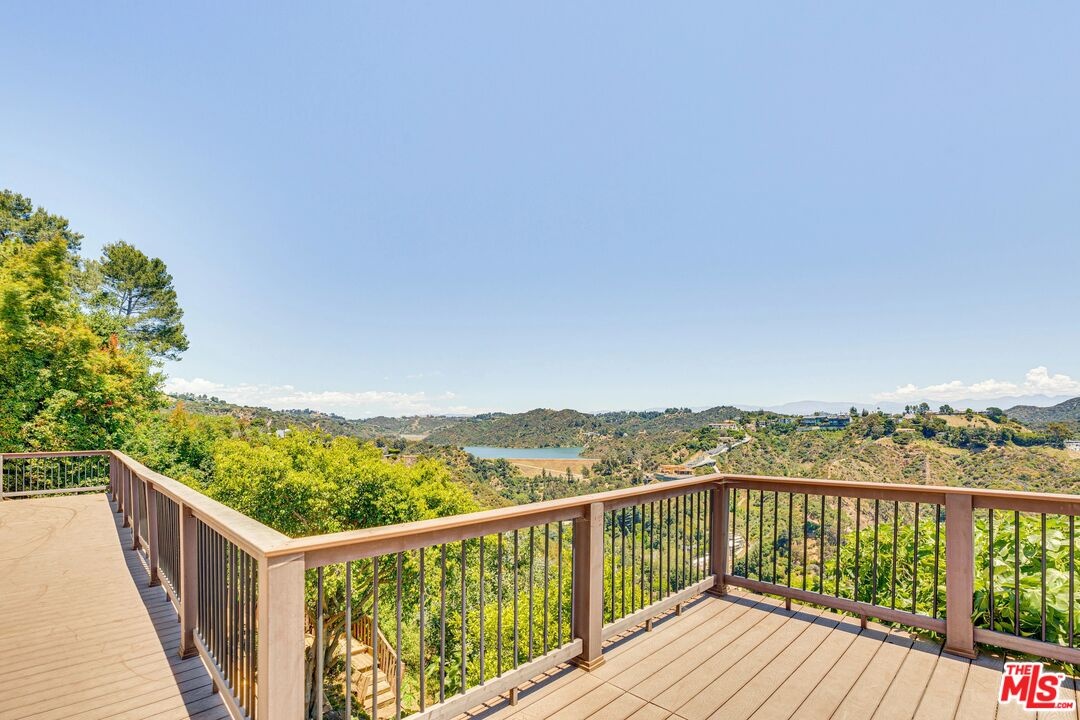 Beautiful upper Bel Air 2-story 4 bed/4.5 bath (furnished or unfurnished) updated Contemporary Spanish with sweeping panoramic canyon, reservoir and gorgeous sunset views. Privately gated front yard and driveway with additional parking leads to double doors that open to formal entry and beautiful open floor plan filled with natural light. Great room with vaulted ceiling, double sided fireplace and wall of windows with 2 sliding doors to entertainer's backyard with pool and spa, large deck and covered outdoor living room and kitchen with with built-in BBQ and granite countertop serving area, 2 refrigerators including wine fridge, ceiling fan and large dining and seating areas. Dining room with fireplace and access to deck, pool and canyon views, opens to modern kitchen with granite countertops and stainless Miele steel appliances including built-in coffee maker, breakfast bar and side yard access. 2 bedrooms down including spacious primary suite with fireplace, walk-in cedar closet beautiful canyon views and ensuite updated full bath with dual basins, separate bath and shower. 2nd bedroom front facing with bay window and bench and ensuite updated bathroom. Upstairs is an additional 2 bedrooms each with ensuite bathroom with a second primary suite option with sliding door to private balcony with views and ensuite updated bathroom. Additional features include contemporary flooring downstairs and hardwood flooring in 2 upstairs bedrooms, central ac/heating, recessed lighting, alarm system, all bedrooms with updated ensuite bathrooms. and inside laundry room. Enjoy entertaining poolside and taking in the tranquil sunset views on one of the finest view streets in Bel Air.