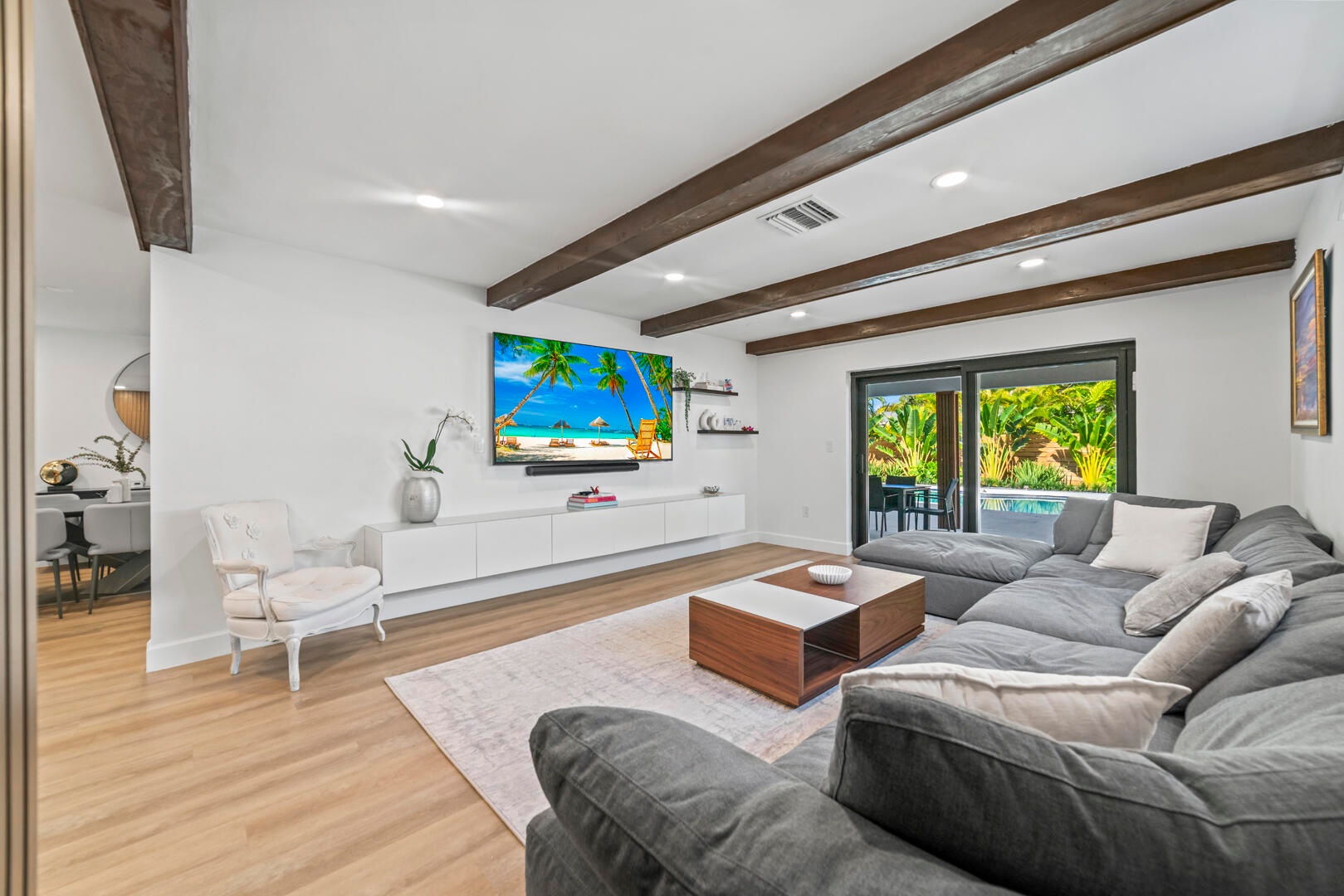 The home features a brand-new modern kitchen with all new appliances, completely remodeled bathrooms, custom closets, and a spa-like primary suite with a smart toilet. Enjoy new wood-look laminate flooring throughout, updated lighting, a brand-new laundry room, and freshly painted interiors and exterior. Major upgrades include a new AC system, new air ducts, full impact windows, a new front door, and a new driveway. The backyard has been fully transformed with a resurfaced pool, leveled grass, new landscaping, and fencing, creating a private outdoor oasis. A new sprinkler system completes the lush exterior upgrades. Electric car charger included.