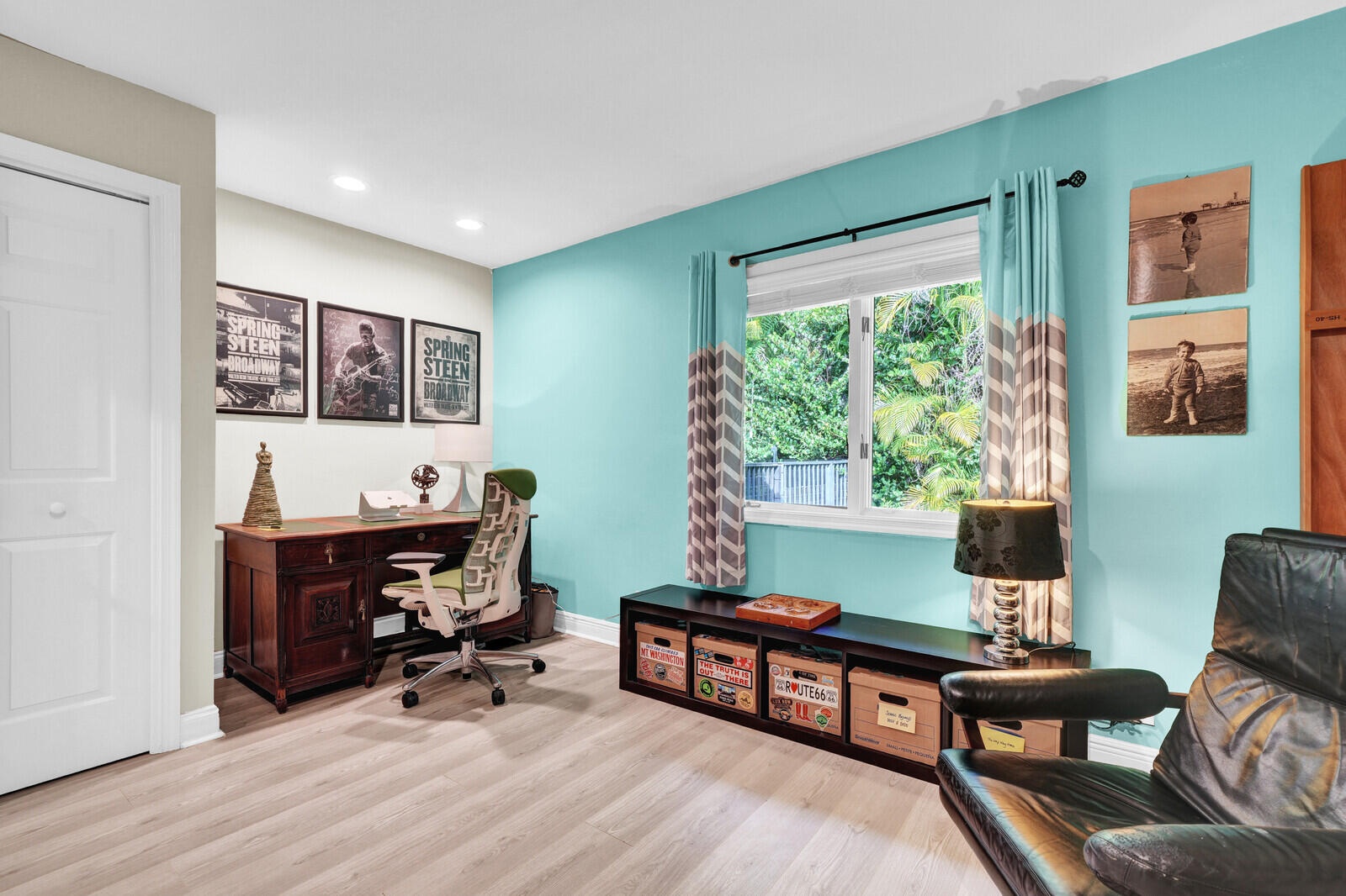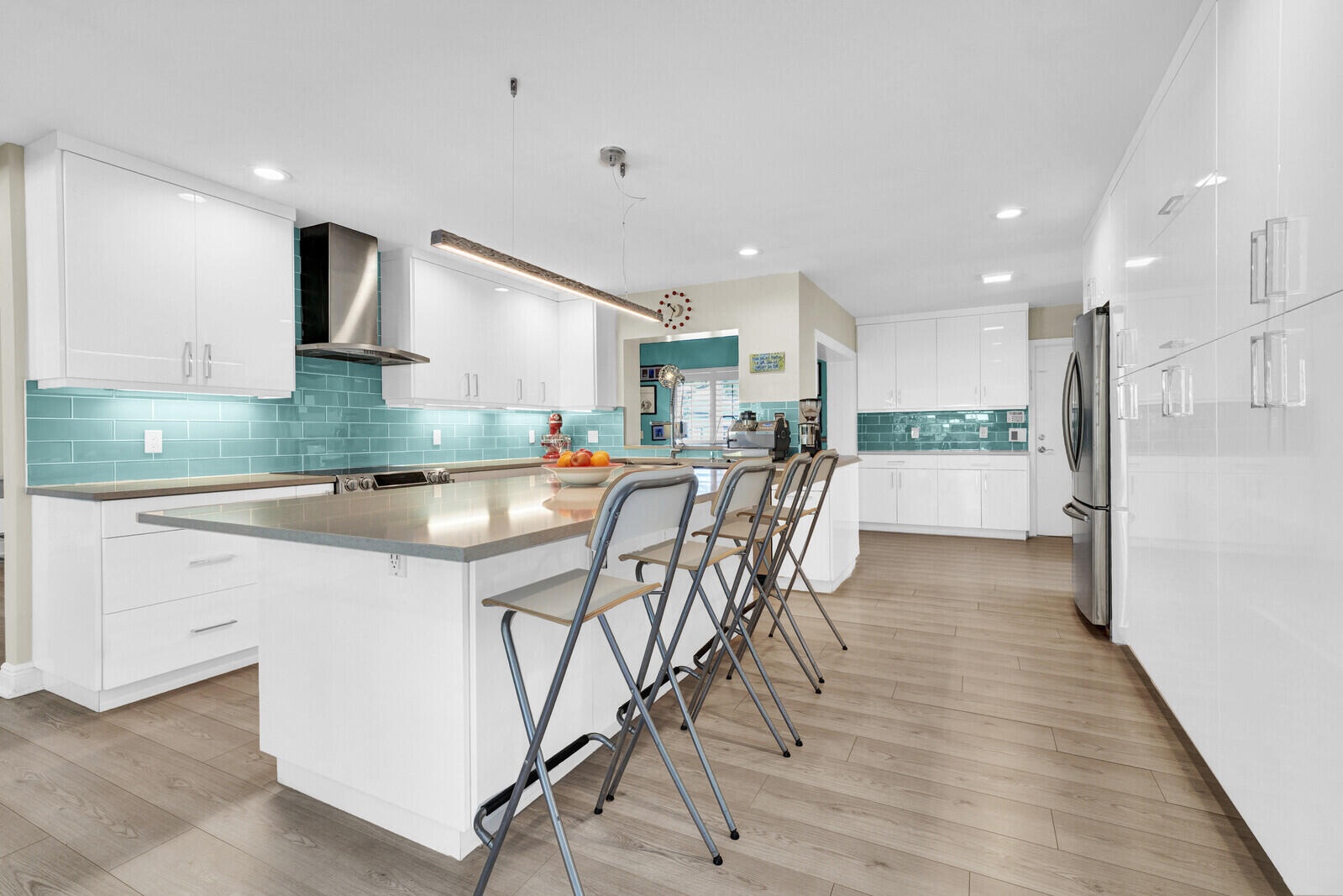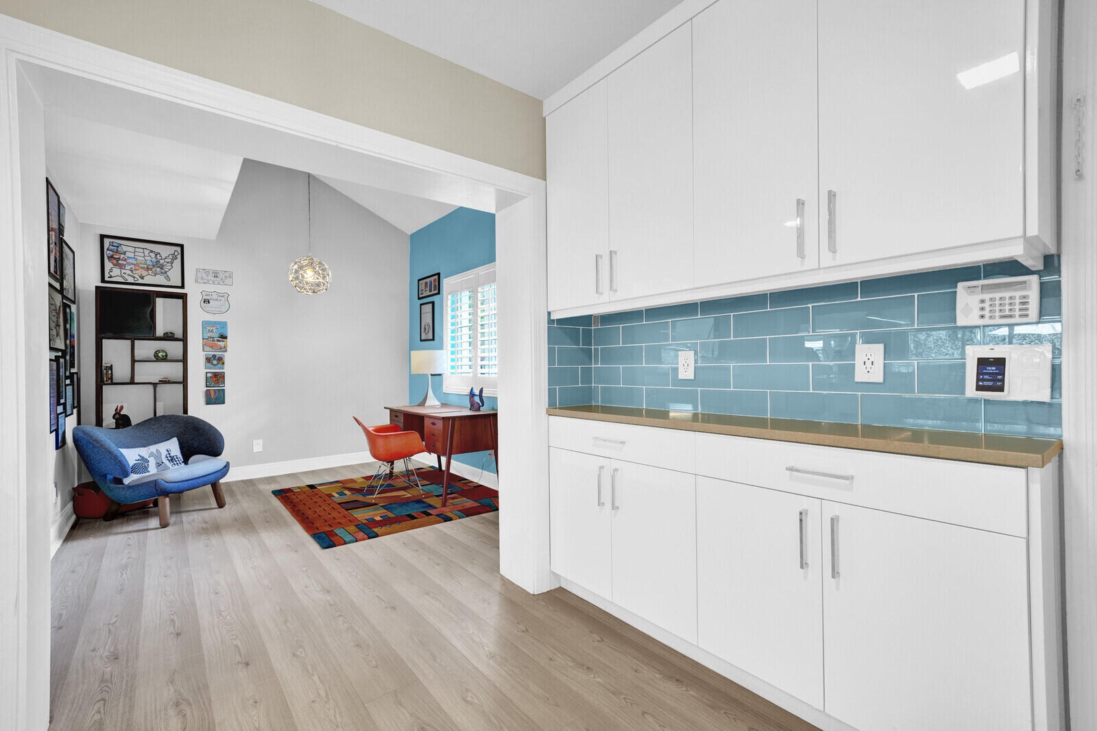 Inside, the home features a renovated, open-concept kitchen highlighted by sleek stone countertops and a well-appointed island ideal for casual dining and entertaining. Updated bathrooms and consistent laminate flooring throughout create a clean, cohesive aesthetic. Just off the kitchen, a versatile bonus room serves as the perfect flex space for a home office, gym, or relaxed breakfast room, enhancing the home's adaptability to a variety of lifestyles.