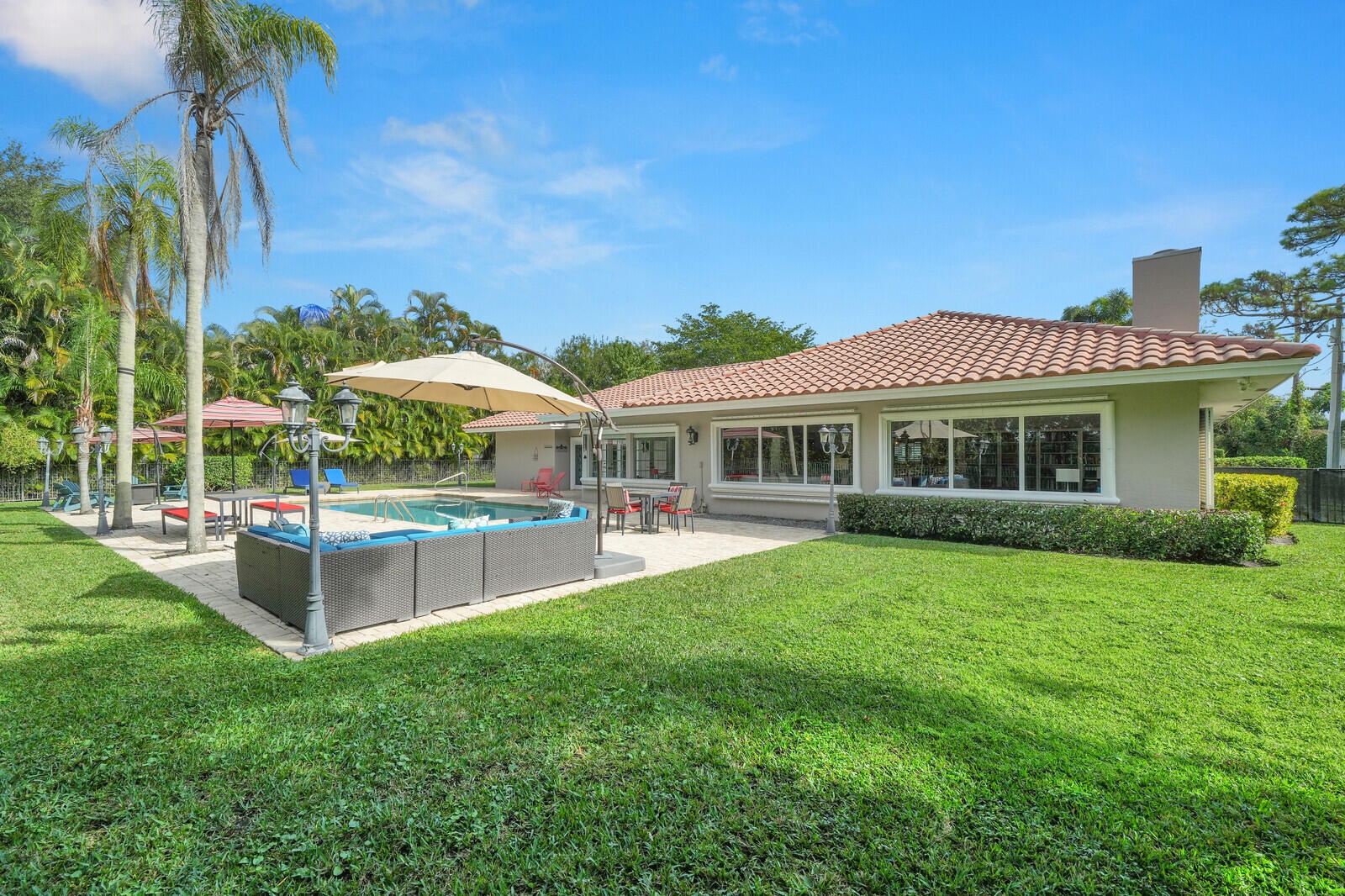 Situated on a nearly half-acre, fully fenced lot in a quiet section of Pine Tree Country Club Estates, this residence combines privacy, thoughtful upgrades, and striking curb appeal. The home is set away from the neighborhood traffic, offering a peaceful setting within the gated community. It welcomes you with an appealing double-door entrance set within a charming front alcove, creating a warm and inviting first impression. Light-filled rooms throughout the home are enhanced by numerous windows and elegant French doors that open directly onto the backyard, seamlessly connecting indoor and outdoor living. While the surrounding golf course enhances the community's scenery and sense of openness, it is independently operated, and homeownership does not include or require club membership, allowing residents to enjoy the setting without the obligations of membership.