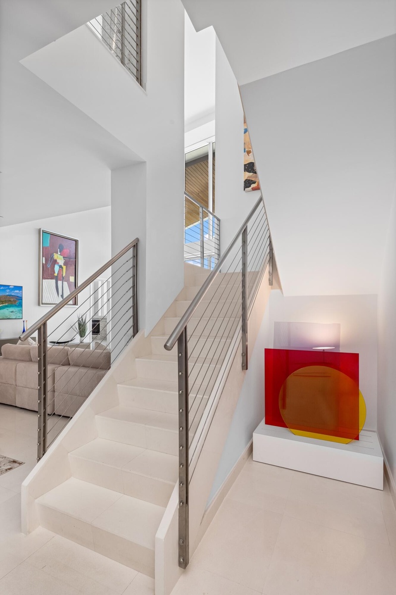 Expansive oceanfront terraces, one on each floor, provide curated outdoor living spaces, including a private plunge pool and a dedicated dining area, perfect for unwinding or hosting in an al fresco setting.