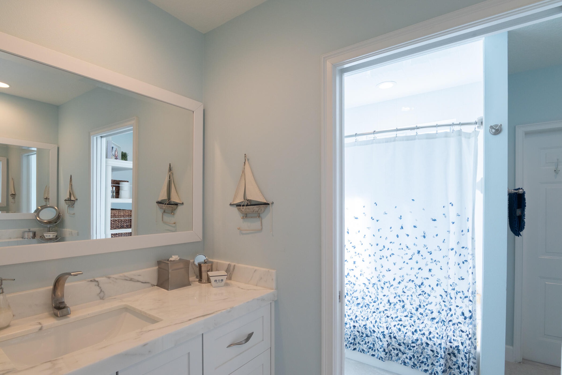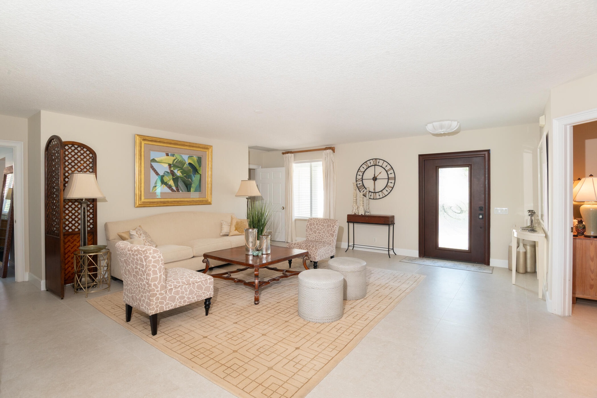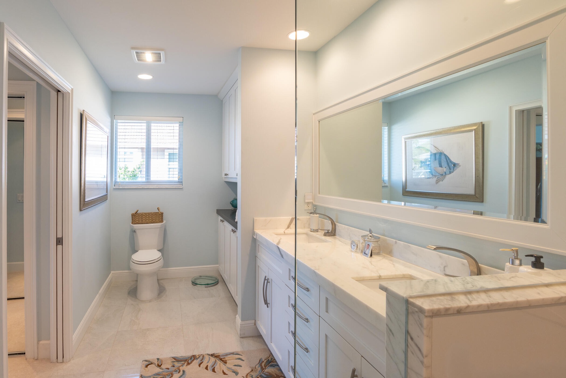 The fully updated primary suite includes a luxurious oversized shower, dual vanity sinks, and his-and-her walk-in closets. Additional highlights include impact windows throughout, a 2-car garage with impact garage door, and freshly painted exterior.