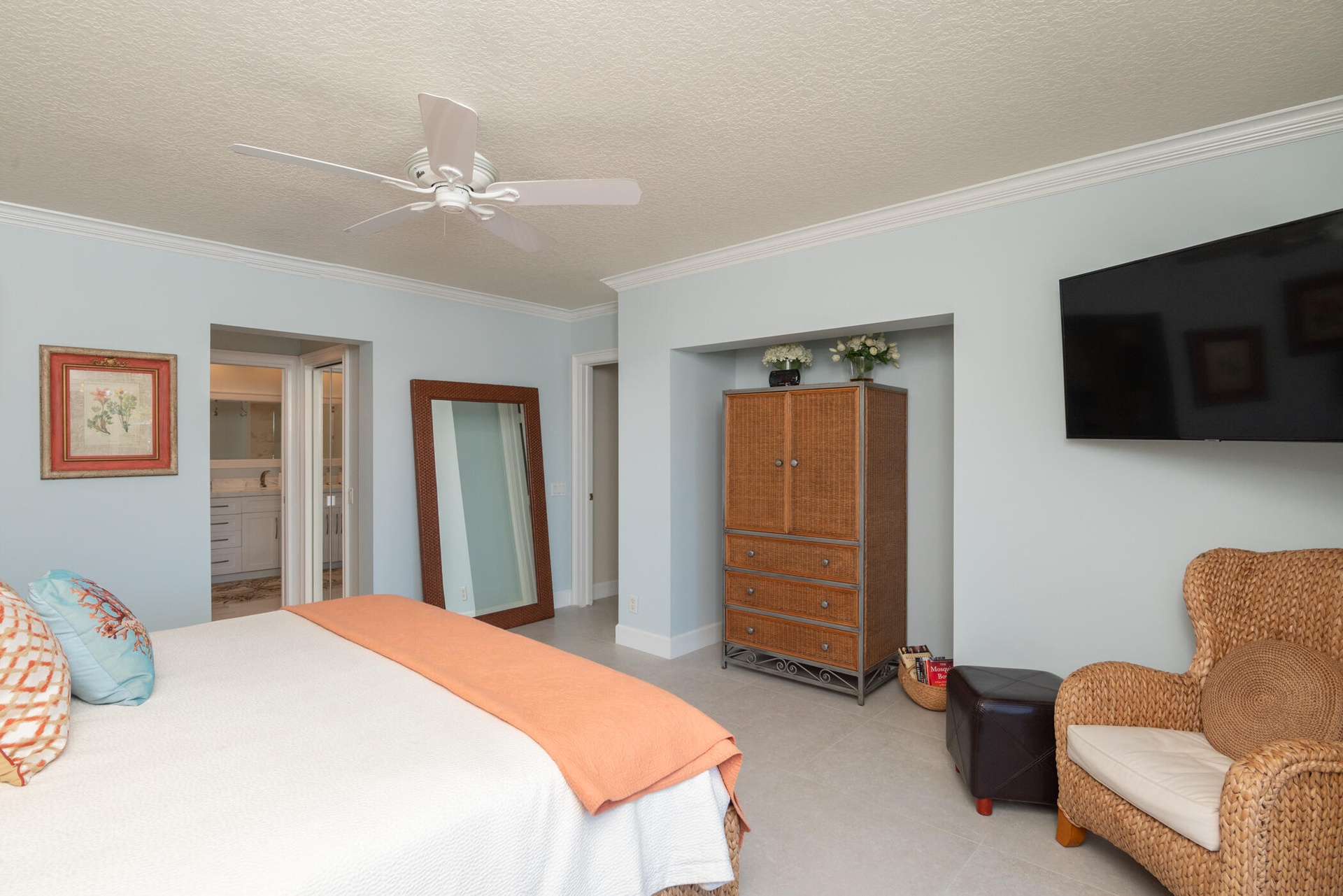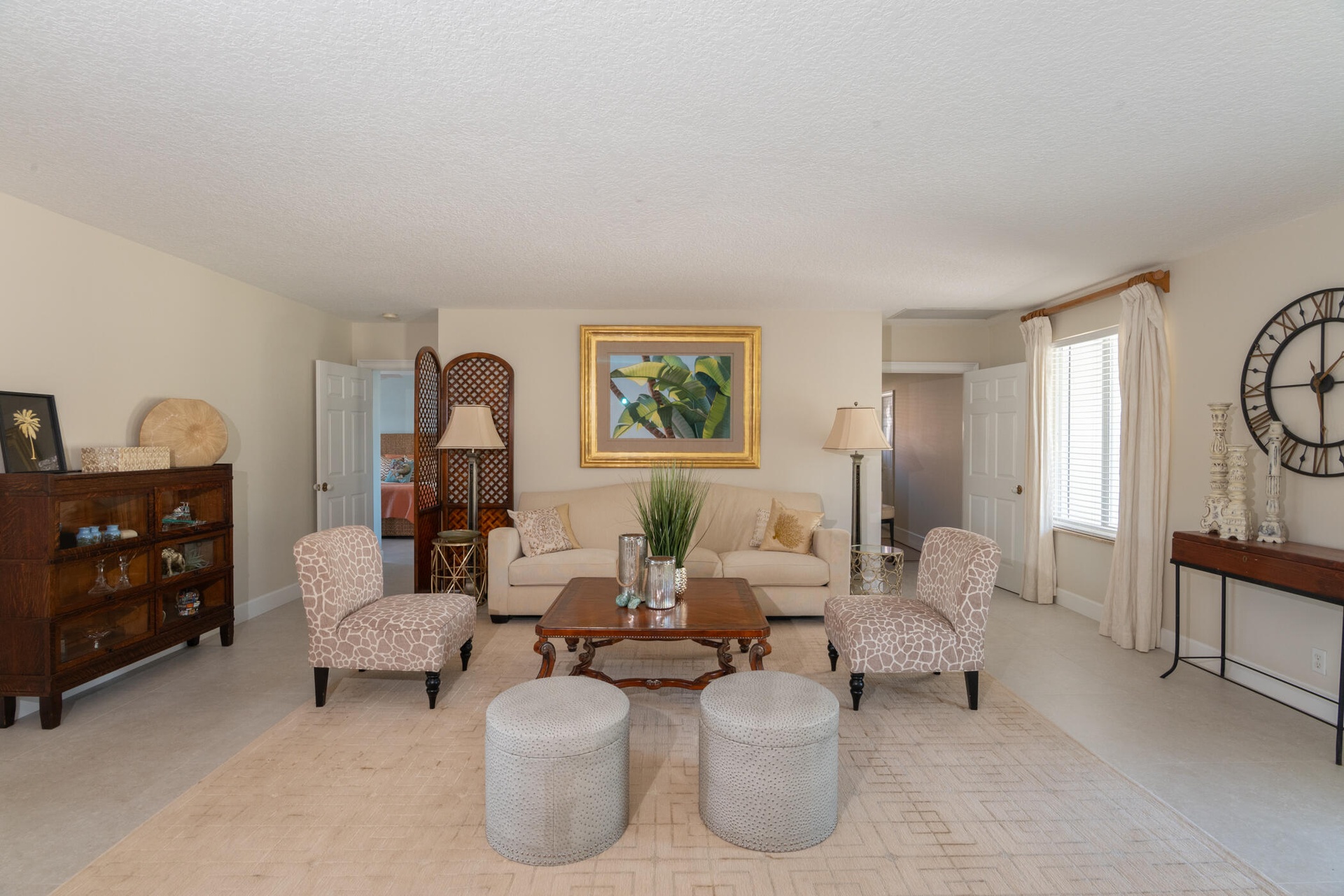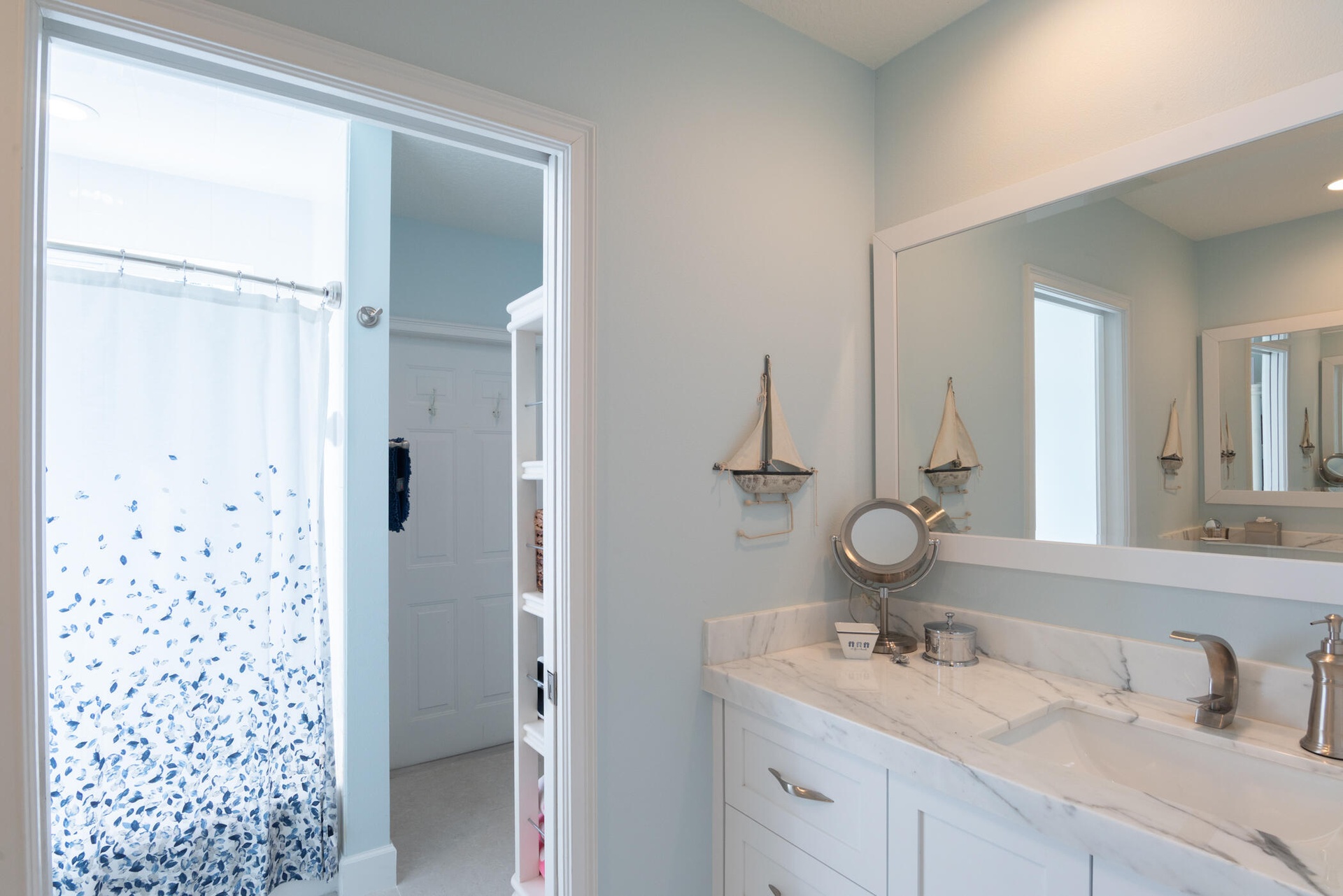 The fully updated primary suite includes a luxurious oversized shower, dual vanity sinks, and his-and-her walk-in closets. Additional highlights include impact windows throughout, a 2-car garage with impact garage door, and freshly painted exterior.