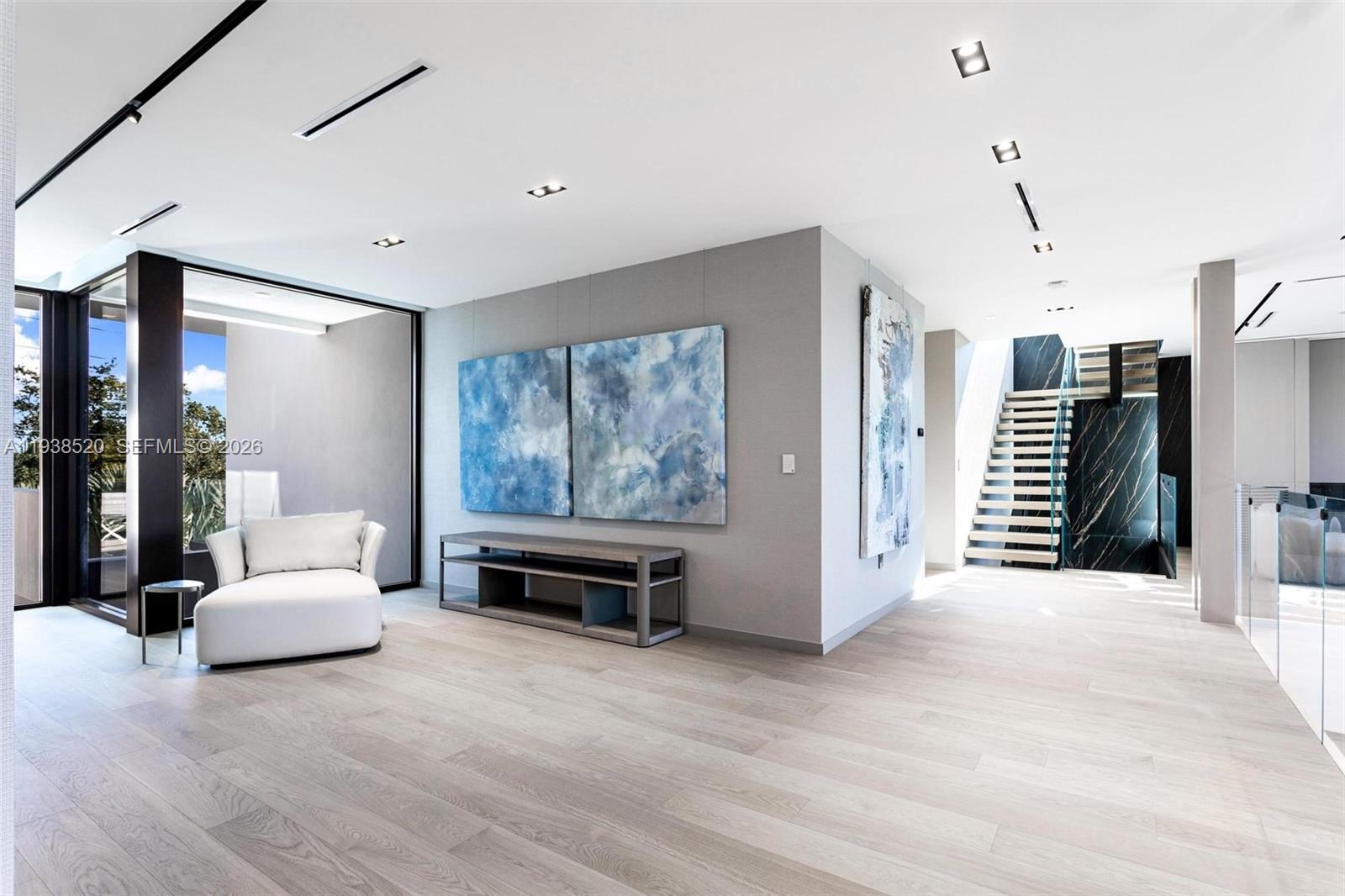 This expansive waterfront residence is located within the gated community of Keystone and offers approximately 6,700 square feet under air and 12,800 square feet total. Featuring 75 feet of direct water frontage with private dock access, the home is designed for both refined living and exceptional entertaining. Highlights include a dramatic double height living room with soaring ceilings, an impressive waterfront lounge terrace with sweeping views, a private putting green, a state of the art private gym, an entertaining game room, an elevator, and a dedicated home office. The residence includes seven luxurious bedrooms and seven full plus one half exquisitely appointed bathrooms. Italian millwork by Mia Cucina and furniture by Artefacto throughout complete this exceptional offering.