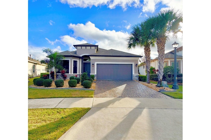Welcome to Esplanade Highland Ranch, a premier 55+ active adult community in Clermont. This Taylor Morrison custom Block home built in 2017 2 bed/2 bath and study/den offers premium upgrades & a bright, open layout with 10-foot ceilings, large windows, and sliding doors illuminate the space with natural light. The gourmet kitchen features granite countertops, luxury full-height cherry wood cabinets, dry bar area & spacious pantry. Upgraded stainless appliances, an oversized island with extra storage & seating for up to seven. Including recessed lighting/ceiling fans throughout for ambiance. The flexible living area can serve as a dining room, living room, or guest space. The primary suite sits off the main living area for convenient access, two closets, featuring dual granite vanity sinks, beautiful shower, & generous linen storage space. Exterior upgrades include an extended concrete slab & screened in lanai, gutters, updated ac motor, tankless water heater, irrigation & lighting, mature landscaping! The private gated community features street lights and sidewalks ready for your endless walks enjoying the Florida weather. Including resort-style amenities such as a pool, lazy river/exercise area, gym, tennis & pickleball, plus social events. Lovely maintained with landscaped surroundings all contributing to an ideal Florida lifestyle! NO CDD*Located off Minneola Turnpike & lose to shopping, hospitals, and near the National Training Center!