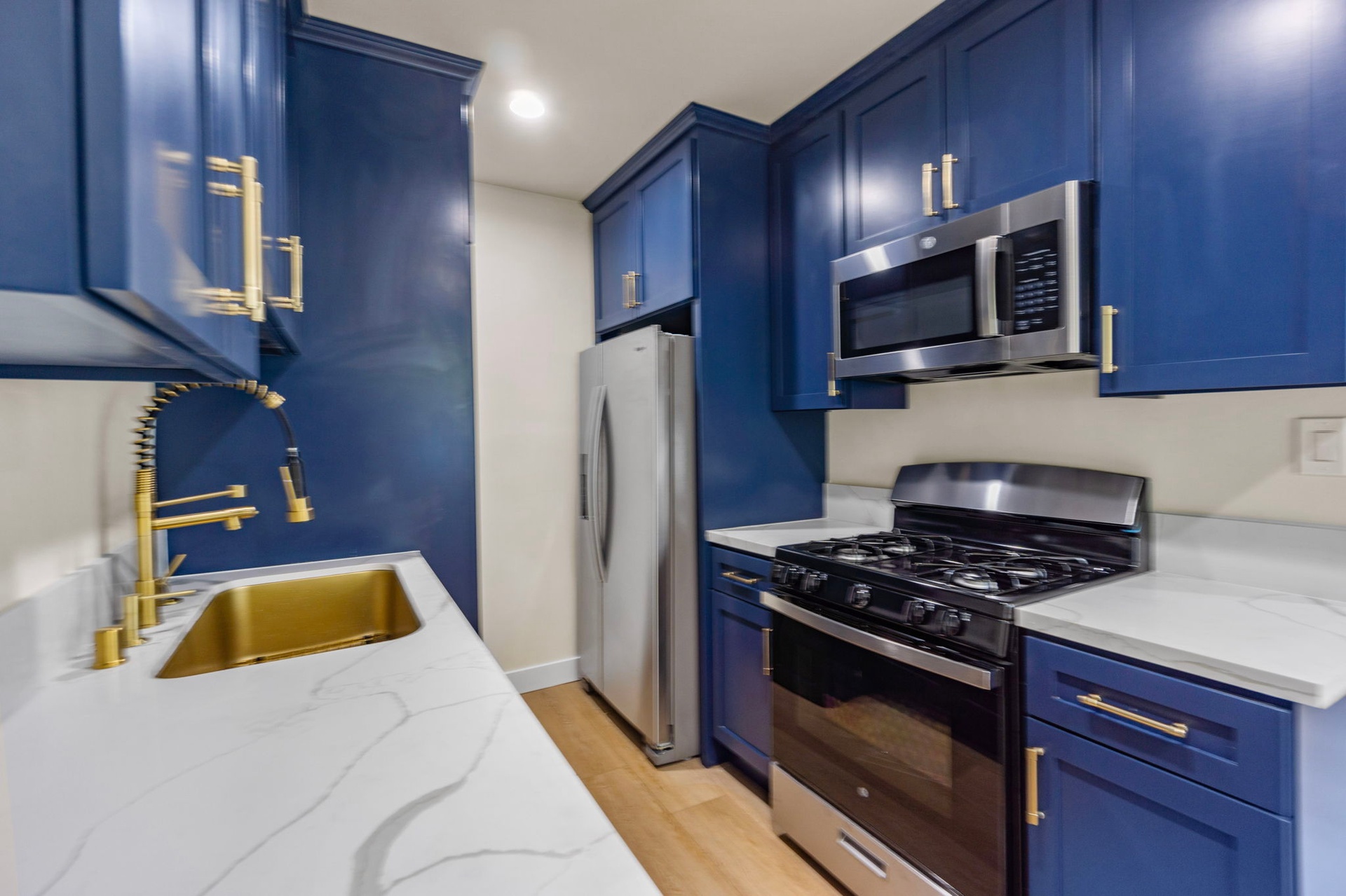 PRIME LOCATION!! This completely remodeled apartment features an inviting open floor plan with a modern touch. Situated in the heart of Santa Monica, this apartment building boasts recessed lighting, laminate floors, designer tiles, and more. The bright and spacious unit includes 2 bedrooms and 2 baths. The kitchen has new appliances, white quartz countertops, Navy cabinetry, and a washer and dryer. The living and dining area is perfect for entertaining guests and leads to a private patio. Tandem parking for two cars is included. Conveniently located just a short drive from the beach, Third Street Promenade, Montana Ave, Venice Beach, Westwood, Beverly Hills, excellent SMMUSD, (Santa Monica, Malibu USD) schools, and the 10 & 405 freeways.