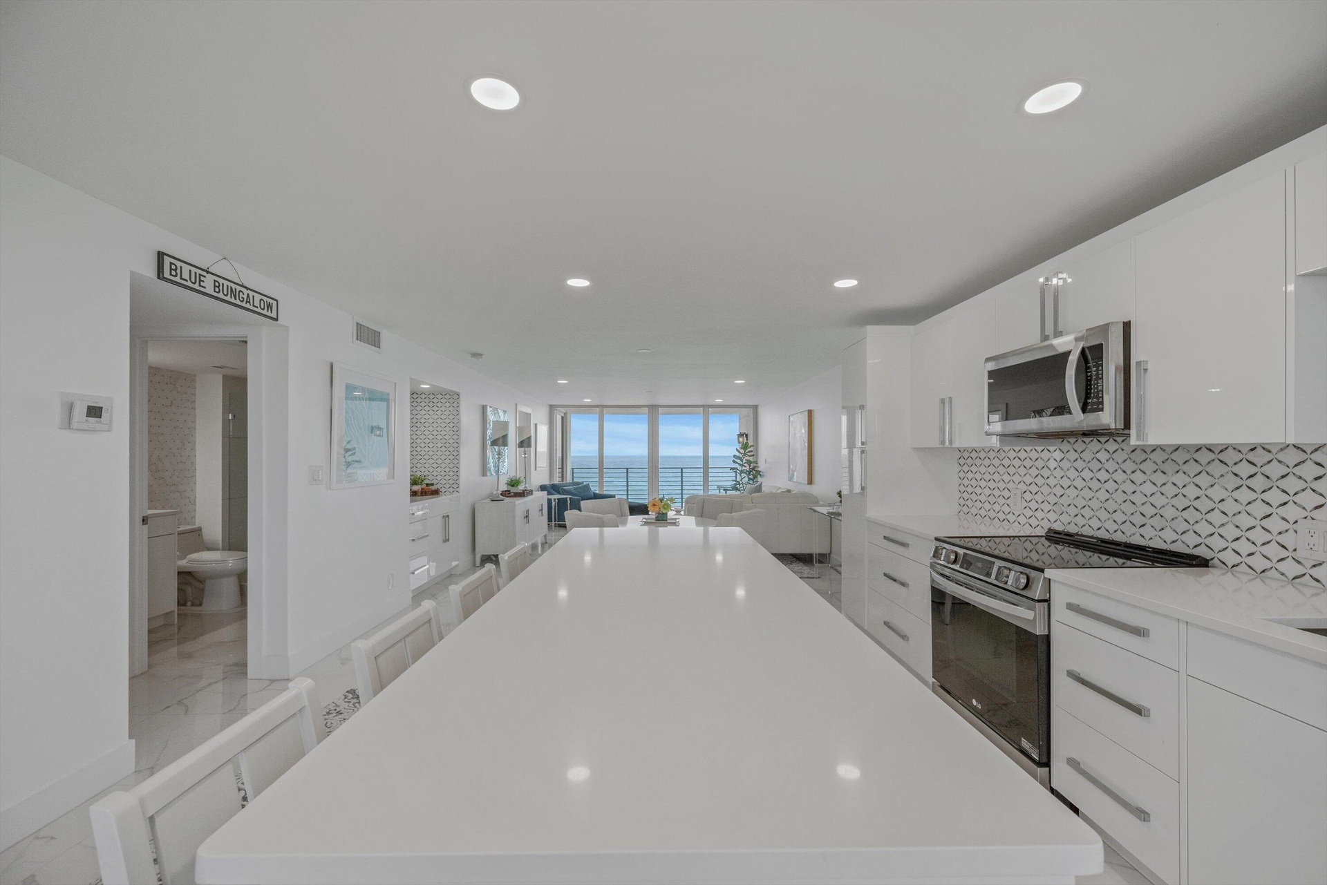 This beautifully renovated oceanfront condo at The Surf offers sweeping, unobstructed views of the Atlantic and an easy, turnkey lifestyle in the heart of Juno Beach. Offered with the option to be fully furnished, this unit has been thoughtfully redesigned with a clean, modern coastal feel. The open kitchen features sleek quartz countertops, European-style cabinetry, and a stylish backsplash that flows into the spacious living and dining areas—framed by floor-to-ceiling impact windows showcasing the ocean. Porcelain tile floors run throughout, and the primary suite offers its own incredible views along with a spa-like bathroom and custom walk-in closet. SEE MORE... You'll also find a fully updated guest bath, new lighting and fixtures, impact glass windows and doors, and a full-size washer and dryer inside the unit. The oversized balcony is the perfect place to relax, unwind, and watch the sunrise and sunset. The building just underwent renovations (seller has paid all assessments), with almost everything completed. Upgrades include concrete restoration, all-new balconies, waterproofed catwalks, rebar reinforcement, updated electrical systems, newly finished garages and pool, fresh exterior paint, and updated tropical landscaping. One of the standout features is the second-floor beachfront pool, which offers private beach access and elevated ocean views, making it feel like your own private resort. The Surf is a pet-friendly community with underground parking and an unbeatable location just minutes from the best dining, shopping, golf, and entertainment. This is a rare chance to enjoy luxurious, low-maintenance oceanfront living in one of South Florida's most charming beach towns.