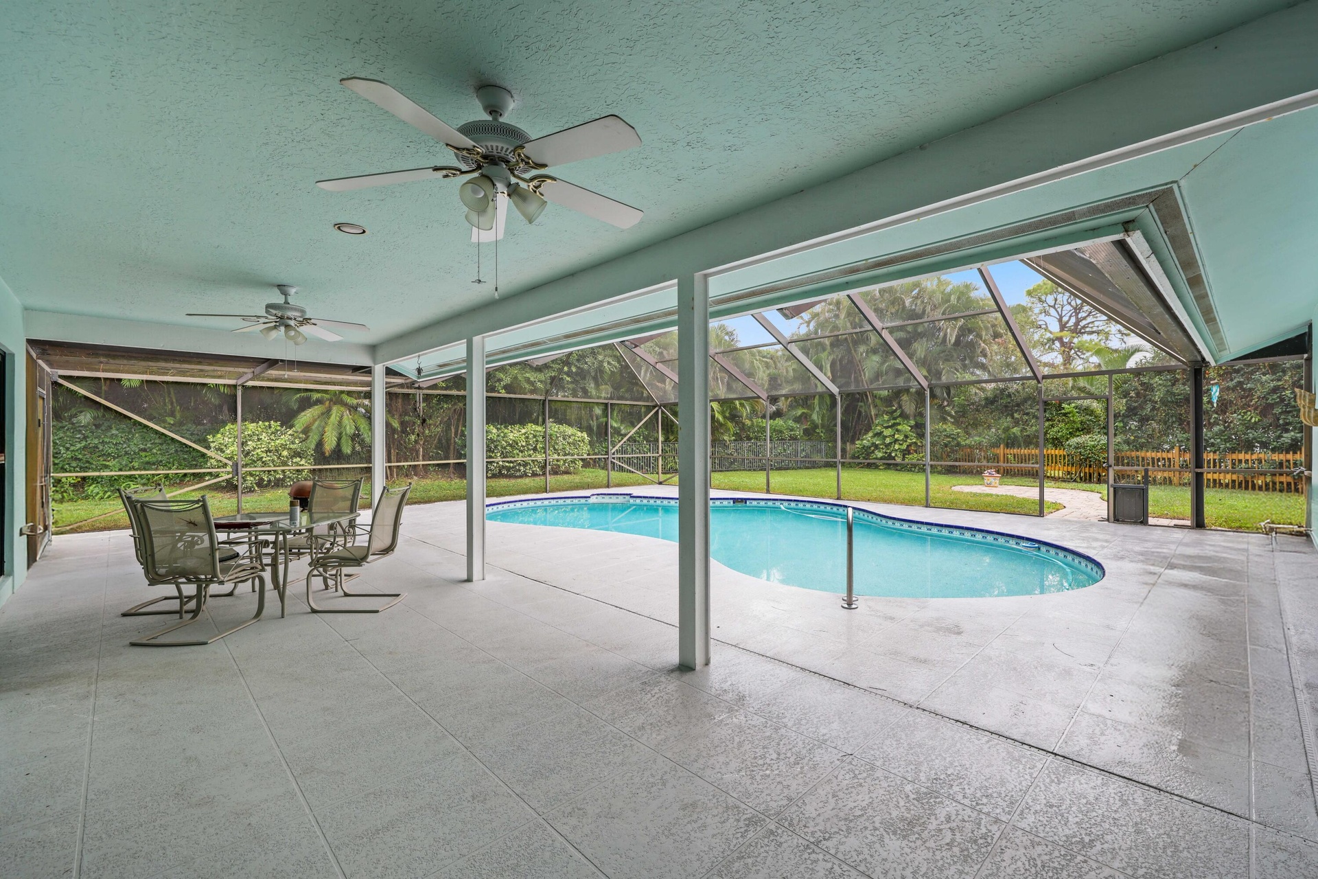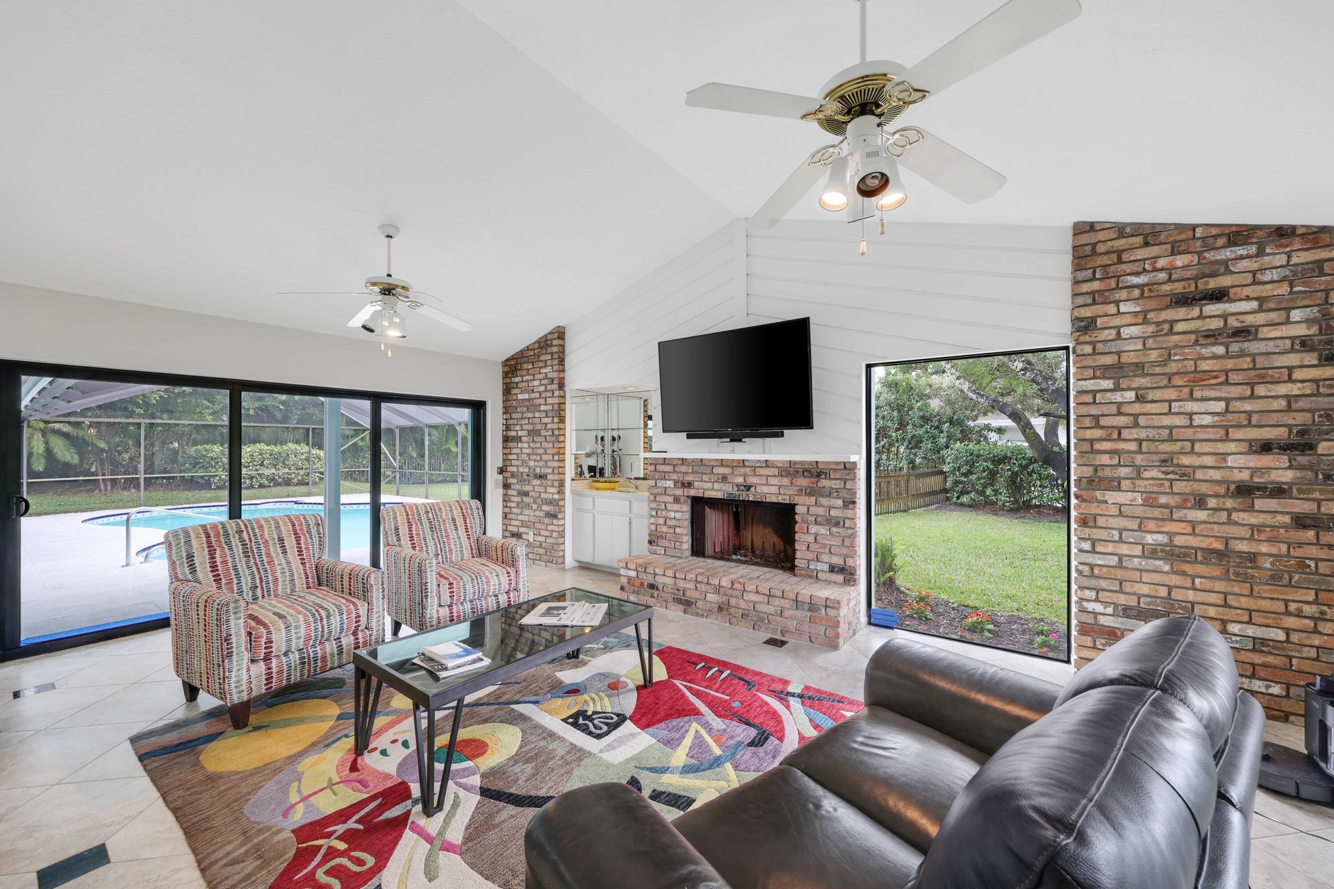 Inviting 3-bedroom, 3-bath CBS home on a spacious .57-acre corner lot in Whispering Trails, offering the layout and room so many want in Jupiter. The split design adds privacy between the large primary suite and guest rooms, and the generous family room features a fireplace that instantly feels like the heart of the home. The kitchen and living areas connect easily with views out to the wide covered patio and screened pool. The extended driveway and four-car garage provide excellent parking and storage. Weekends are simple here with easy access to Jupiter beaches and parks, Riverbend Park, golf, and popular dining. Spend your free time visiting the Jupiter Inlet Lighthouse and local spots such as Guanabanas, U-Tiki, and Harbourside Place. Low HOA fees make this home even more appealing. Whispering Trails is one of Jupiter's most sought-after areas for those who want larger lots, winding streets, and a peaceful setting surrounded by long-standing trees. Its location keeps you close to everything that makes Jupiter special while giving you the room and privacy rarely found so close to town.