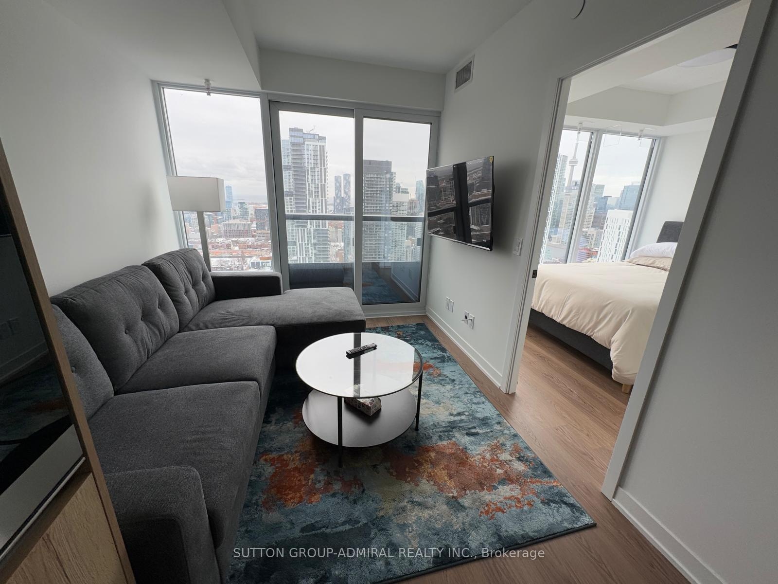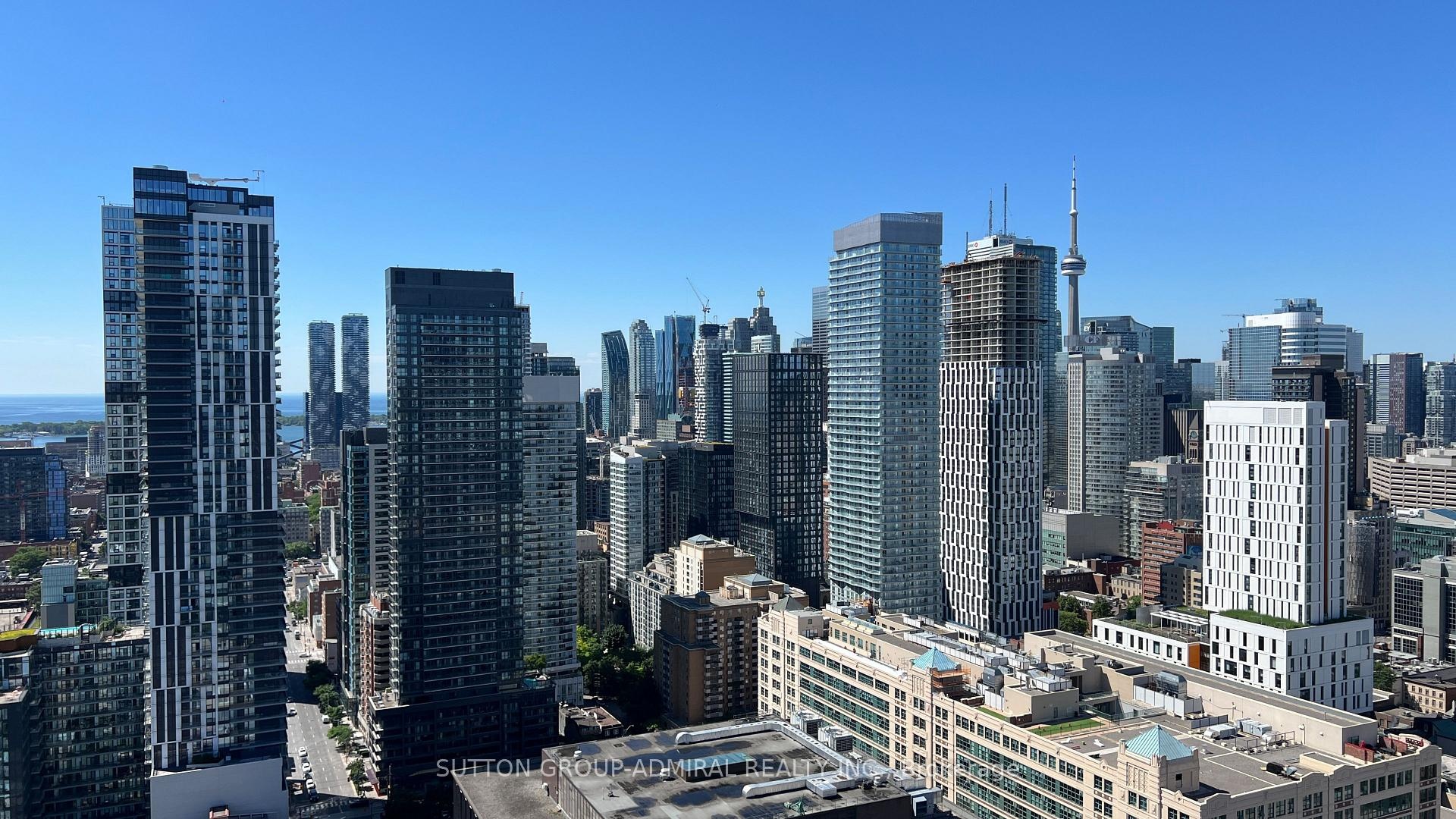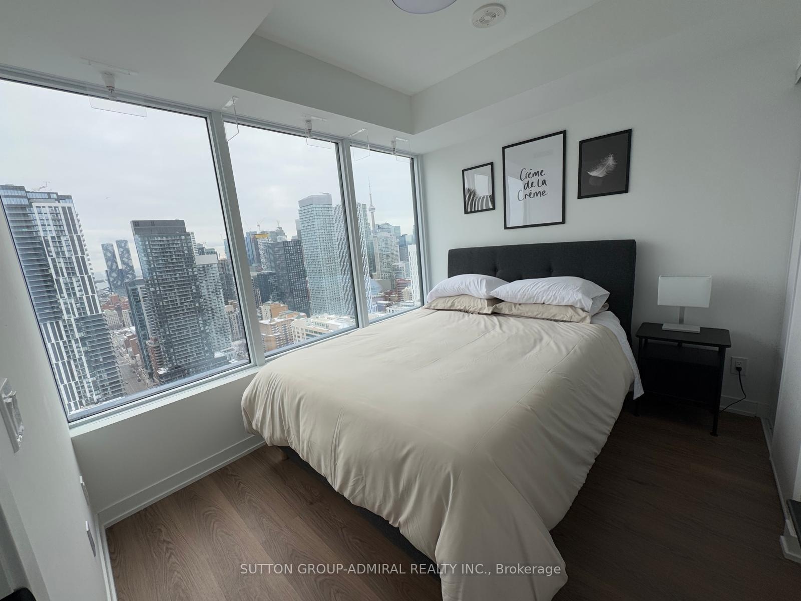 Fully furnished luxury condominium with unobstructed south-facing lake, skyline, and CN Tower views. Bright and spacious 2-bedroom, 2-bathroom suite plus sofa bed sleeps up to 6 in a prime downtown location, steps to TMU, Eaton Centre, City Hall, and public transit.Features a sun-filled open-concept layout with a modern kitchen offering built-in appliances, under-cabinet lighting, and contemporary finishes. Primary bedroom includes floor-to-ceiling windows with spectacular city views. Second bedroom is ideal for guests or home office. Two full bathrooms provide added comfort and privacy. Turnkey and move-in ready. Short-term and long-term leases available (30+ days).Extras: Fully furnished inclu. queen bed, double bed, sofa bed, linens, towels, in-suite laundry, TV, lamps, kitchenware, coffee maker, and accessories.