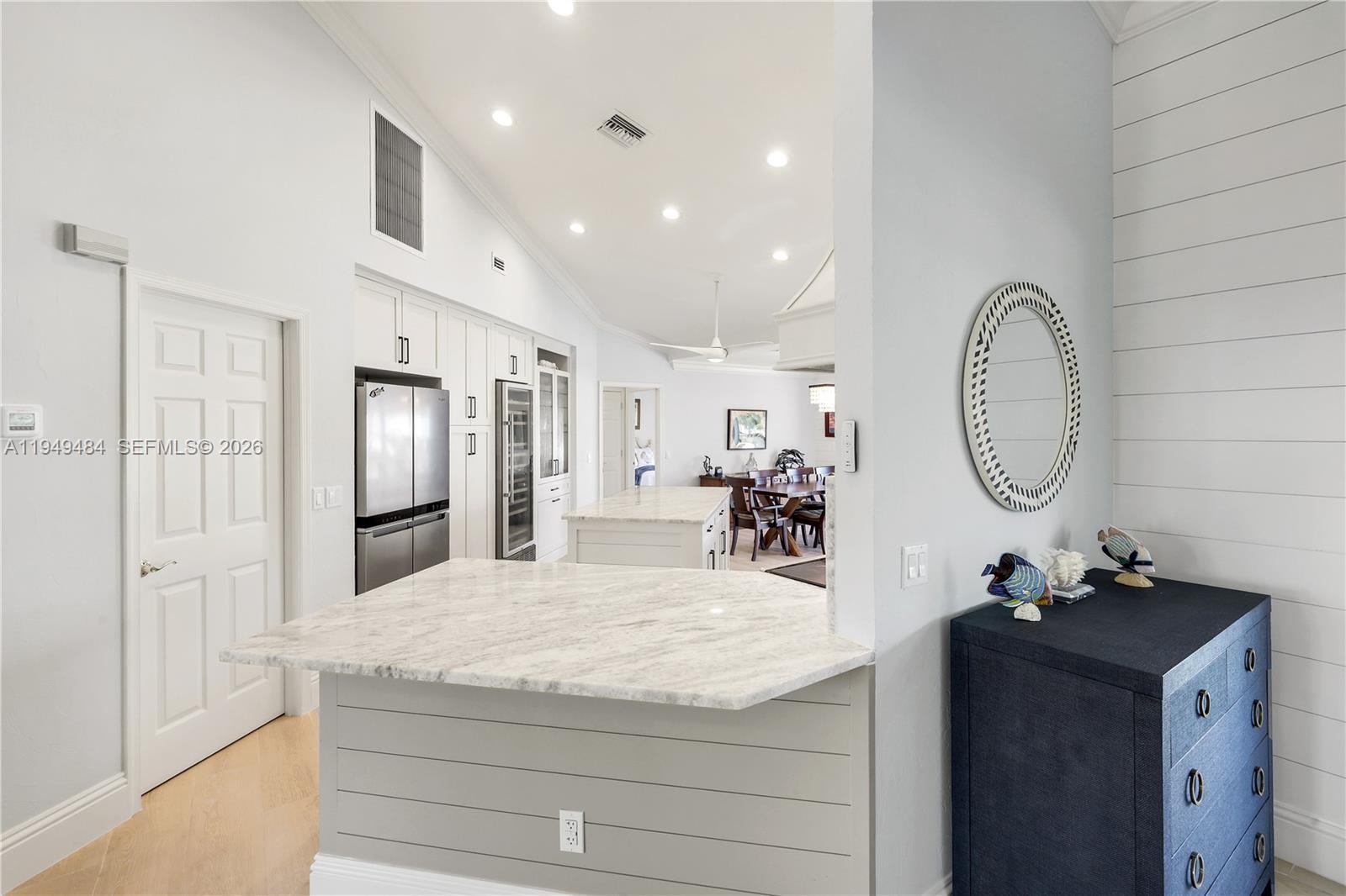 Experience premier waterfront living with this distinguished 5-bedroom, 4-bath residence, strategically situated on nearly half an acre with direct Gulf of Mexico access. This home is a boater's dream, featuring two advanced boat lifts—a 20,000 lb and a 27,000 lb lift, the latter protected by a canopy to preserve your vessel's condition. The property boasts an impressive 276 feet of seawall, complete with a private gazebo for enjoying stunning sunsets and bay views. The recent remodel has transformed this luxurious abode, seamlessly blending contemporary elegance with comfort. High-end finishes and thoughtful design elements are showcased throughout, including new plank flooring and a beautifully remodeled kitchen, equipped with a large wine cooler. The expansive backyard offers numerous opportunities for relaxation, from the glider swing to dining while surrounded by nature's beauty and fruit trees. The home has an added wheelchair lift in the third-car garage opening into the master bedroom. Venture outside to your private oasis, where a spectacular, heated pool with a spa offers the ultimate retreat for relaxation or entertaining. The meticulously landscaped grounds enhance the seamless connection between indoor and outdoor living spaces. There is so much potential on this property! Conveniently located near shopping centers, grocery stores, the beach, and easy island egress, this rare gem offers a harmonious blend of luxury, convenience, and natural beauty.
