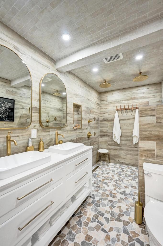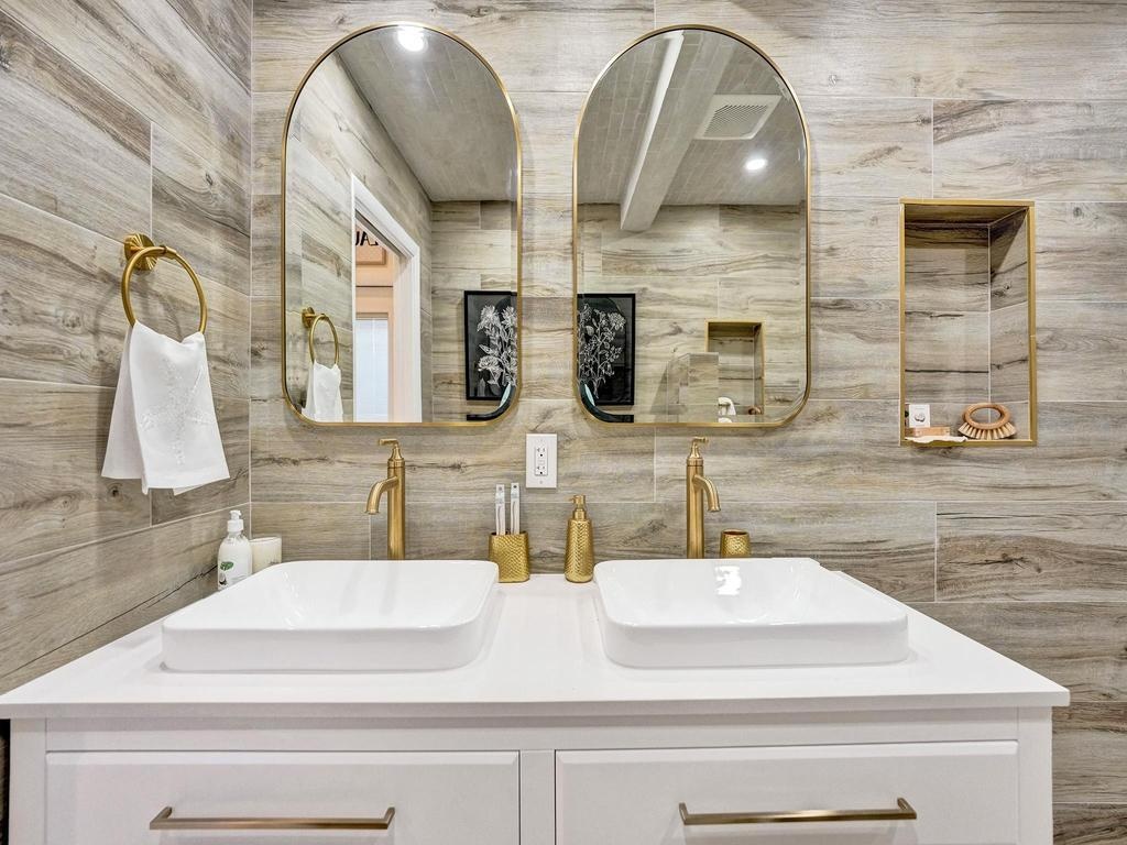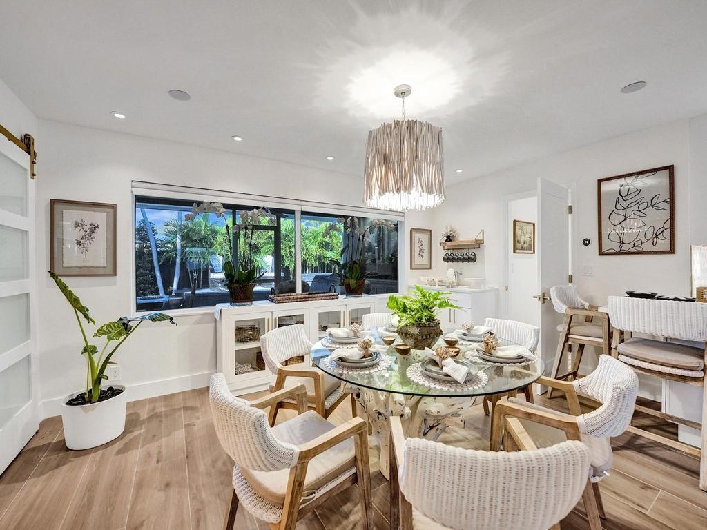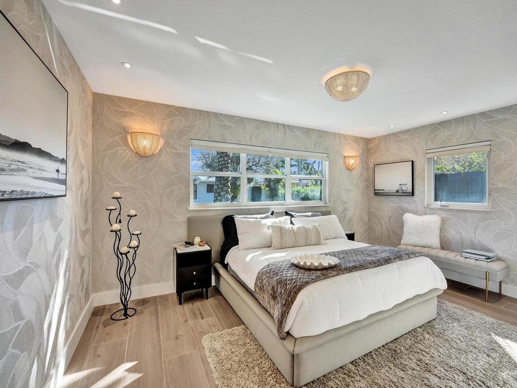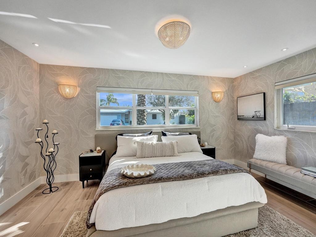 Coastal Elegance Meets Designer Luxury in This Fully Renovated Sanctuary Step into this exquisitely designed and fully renovated 3-bedroom, 3-bathroom retreat, masterfully curated by renowned interior designer Jeanne Michelle of Palm Beach, Florida. This turnkey coastal haven blends refined luxury with seaside charm, offering a move-in-ready experience where no detail has been overlooked. Every space is thoughtfully appointed with high-end furnishings, fine antiques, and nature-inspired accents, creating a serene and sophisticated ambiance throughout. Textured wallpaper, grasscloth wall coverings, and natural fiber elements add warmth and depth to each room, while Smeg small appliances and carefully selected designer pieces elevate the home's modern coastal style. The primary suite is a true retreat, featuring a custom linen king platform bed, designer sconce lighting, and push-press drawers throughout the closets and cabinetry. The en suite bath is adorned with glass tile, a white rock floor, and a frameless glass shower enclosure, creating a spa-like escape. The guest suite offers a tranquil, tropical ambiance with Turkish marble tile, a glass-enclosed bath/shower combo, and the same thoughtful finishes found throughout the home. A third bedroom doubles as a chic office space, complete with a peacock chair, antique accents, and elegant grasscloth walls. The kitchen is a showstoppersleek flat-panel cabinets with Emtek gold-trimmed hardware, matching hardware throughout the home, and pristine white quartz countertops with bar seating and a built-in coffee station. Wood-look tile flooring flows throughout, echoing the textures of beachside living. The third bath features a luxurious wet room with dual sinks, his-and-her showerheads, and body sprayersperfect for indulgent relaxation. All appliances, including the washer and dryer, are brand new and state-of-the-art. Step outside to your private, low-maintenance backyard oasis featuring synthetic turf, tiled and screened-in patios, stylish pavers, a Tiki hut bar, and a brand-new hot tub spa. Both the garage and patio showcase beautiful tilework, while refurbished antique outdoor furniture adds timeless charm and character. Nestled in a peaceful coastal neighborhood, you're just a short stroll from the beach, boutique shops, charming restaurants, and relaxing resorts. Whether you're hosting friends, enjoying your morning coffee with a view, or simply soaking in the tranquility, this home offers the ultimate in comfort, style, and coastal living. Don't miss your chance to own this breathtaking, fully furnished retreatschedule your private tour today and step into your dream beachside lifestyle.