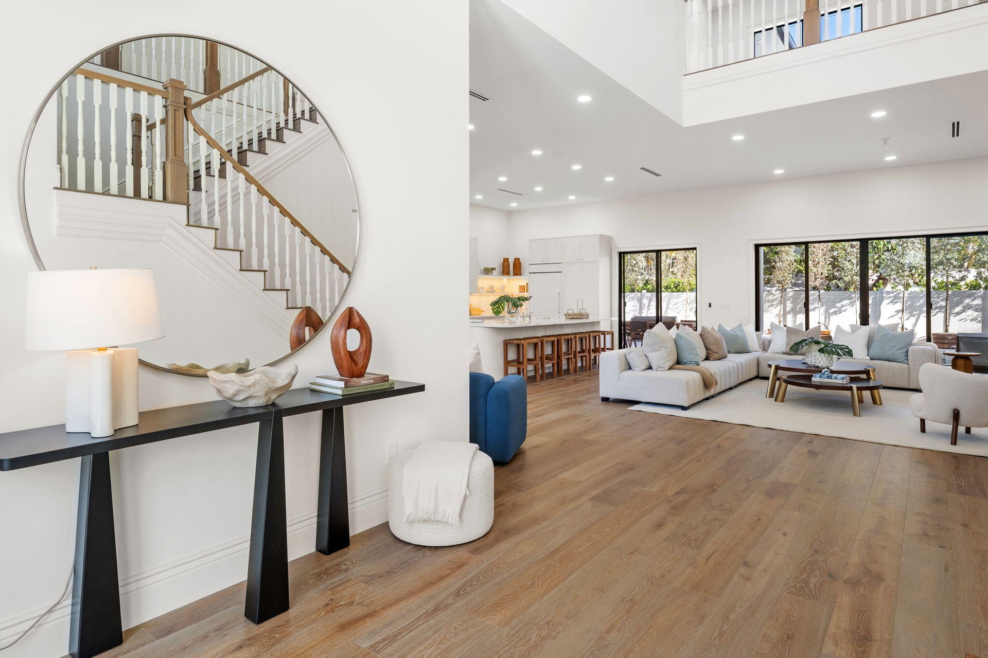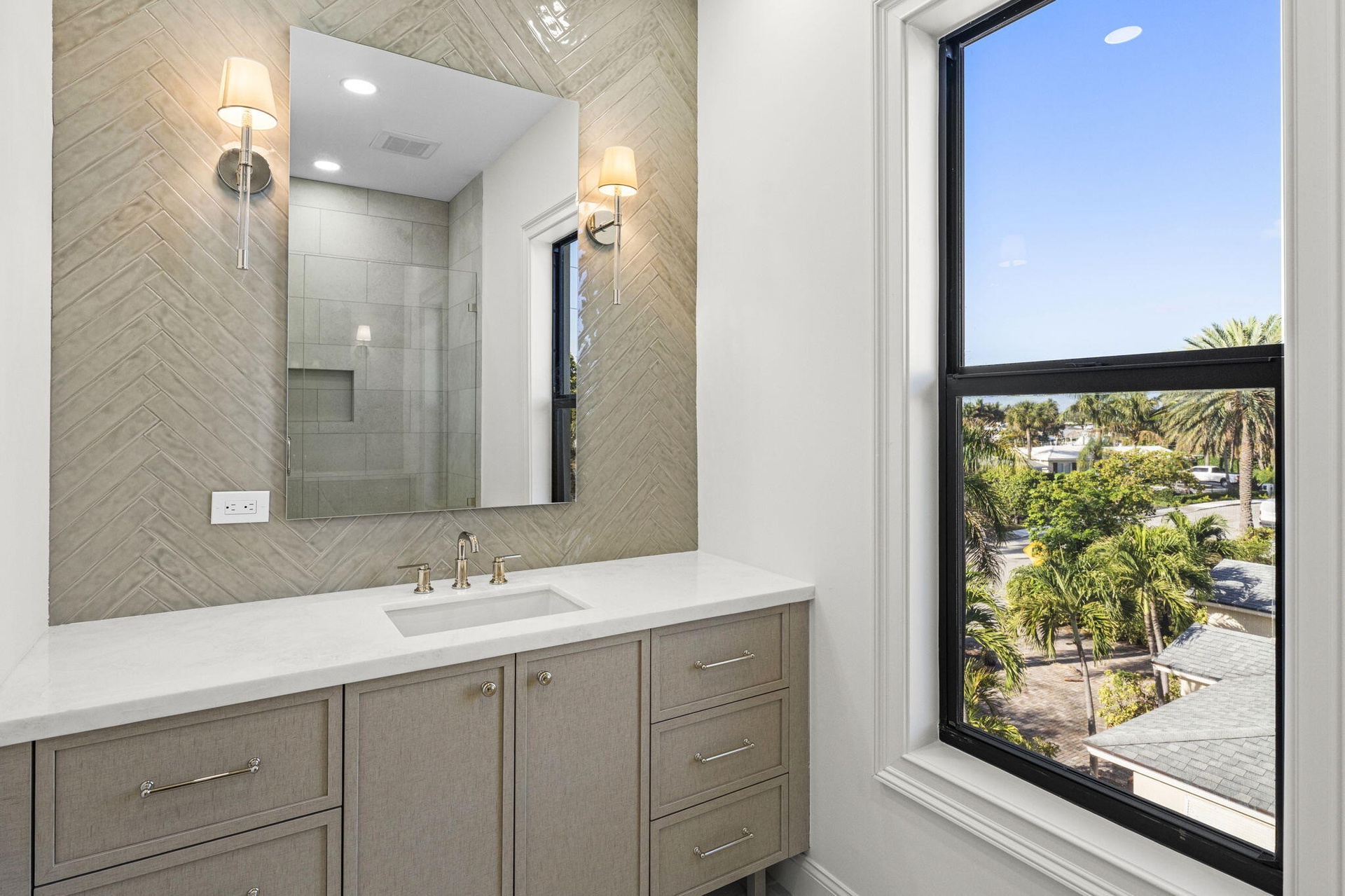 Completed in 2025, this new-construction residence is ideally positioned on a quiet street within the sought-after SoSo enclave, offering coastal living moments from the Intracoastal Waterway. Spanning 4,358 SF of living space (5,133 TSF), the home features five bedrooms, an office, five full baths, and one half-bath. The layout includes a first-floor primary suite and a second upstairs primary suite, providing rare flexibility for modern living. Light-filled interiors showcase clean architectural lines, volume ceilings, wood flooring, and an open-concept layout that flows seamlessly to covered outdoor living, pool, and spa. Select second-floor rooms offer glimpses of the Intracoastal. Located near the Flagler Drive bike path, Summa Beach, tennis and golf, marinas, downtown West Palm Beach, CityPlace, and PBI Airport, the home enjoys a quiet residential setting with convenient access to Palm Beach Island and the surrounding waterfront and beaches. Note: FPL is currently working on undergrounding electrical power lines in the neighborhood. All measurements and information are deemed reliable but not guaranteed. Buyer to independently verify.
