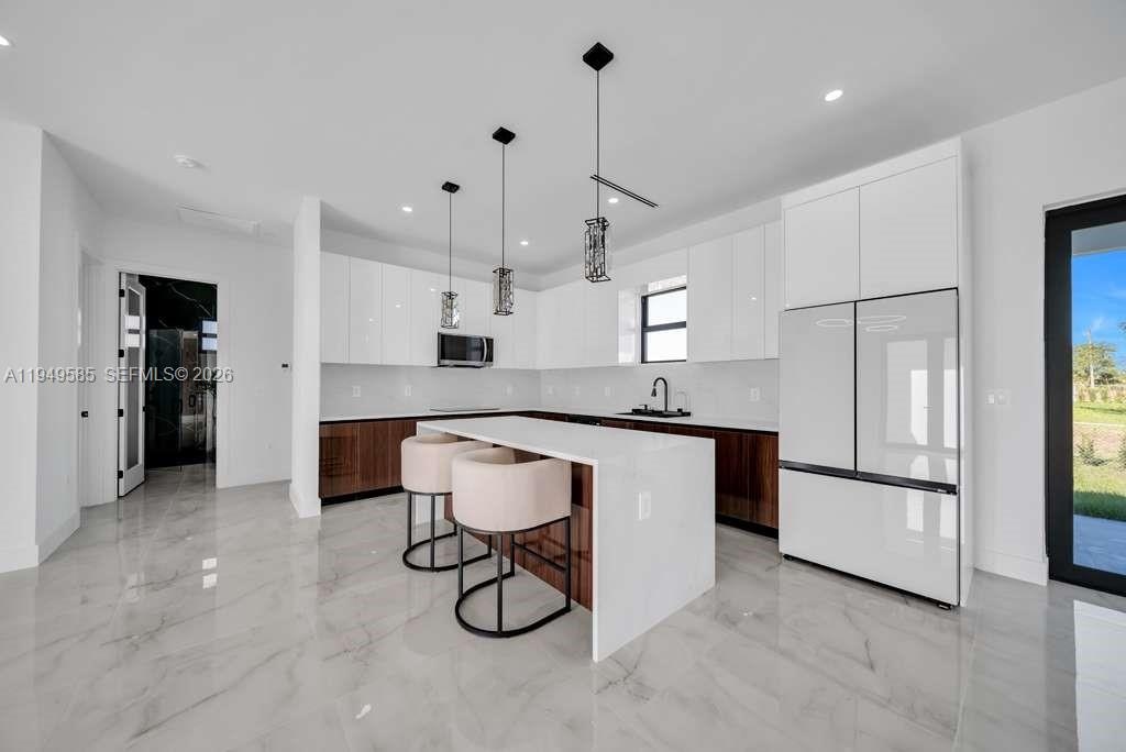 UNIQUE GEM !!! This Brand-new Luxury construction ofer 4 bedroom and 3 bath, Each bedroom with custom closets and built-in drawers, each bath have Smart Toilets and beautifuls finishes! You can have you own wine collection because we have creat it ! A Dream Modern Kitchen is the master piece, features a waterfall island with quartz countertops and High-quality appliances. Open layout includes modern lighting fixtures and a high celling . A full sprinkler system to keeps the lawn. Impact doors and windows, and a double garage. Every space in this house is a plus, with a modern and ultra-elegant concept you will find in this house everything you are looking for. Don’t miss this opportunity. This Gem won’t last long