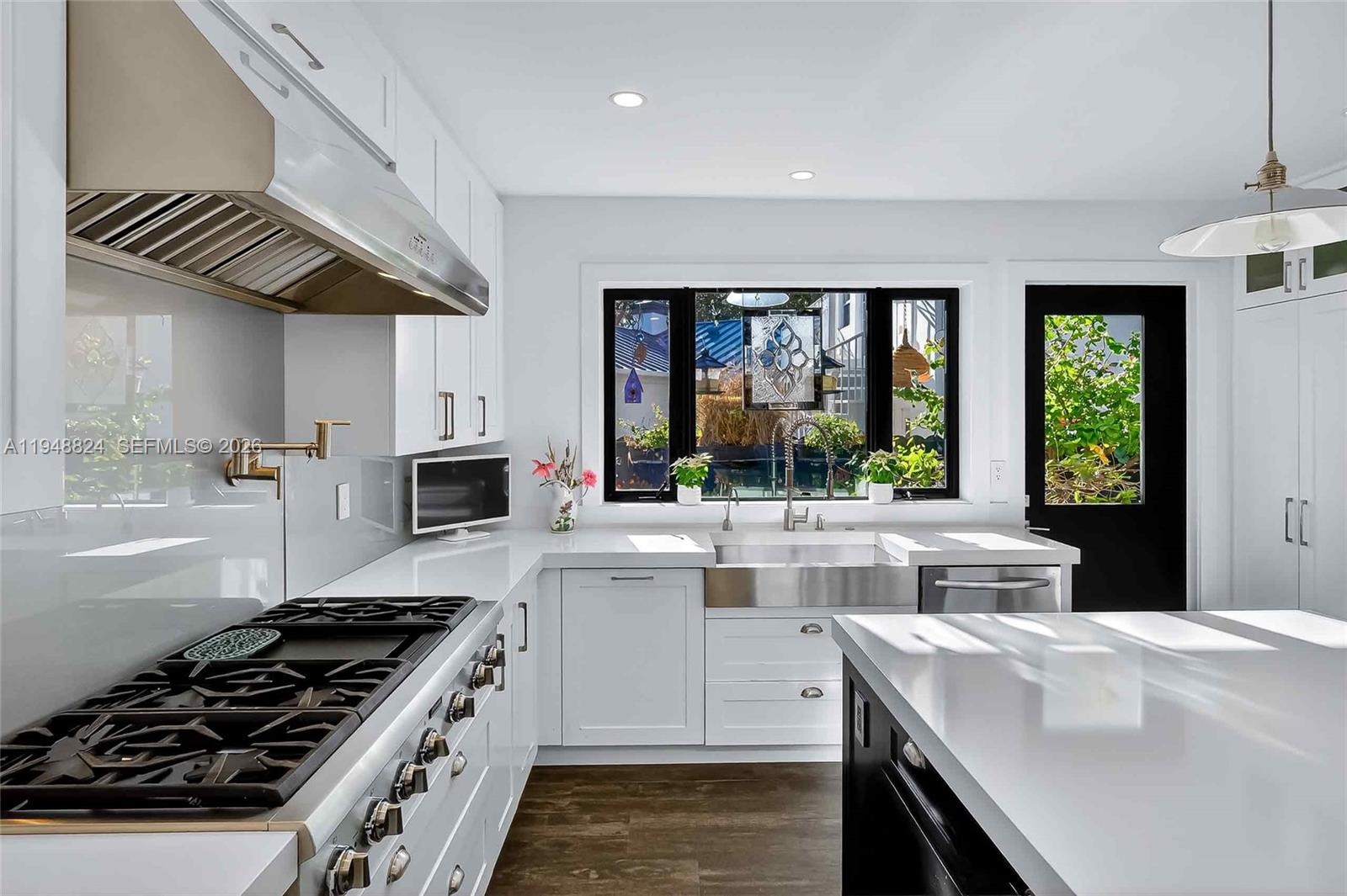 Exquisite North Coconut Grove sanctuary situated on one of the area’s quietest, tree-lined streets. This immaculate residence blends timeless elegance with modern comfort. Sun-filled interiors flow from a stunning chef’s kitchen with gas range into expansive living and dining areas with serene garden views. Custom woodwork and built-ins enhance the home’s refined character, complemented by two gas fireplaces. The spacious primary suite is filled with natural light and overlooks lush greenery, featuring a beautifully appointed spa-style bath with refined finishes and steam shower. Outdoor living is highlighted by a spectacular heated lap pool and a fully equipped summer kitchen with pizza oven, all surrounded by mature trees for exceptional privacy. Move-in ready with an updated interior totaling approximately 3,200 square feet, and ideally located near CocoWalk, Brickell, and Downtown Miami—an exceptional opportunity in one of Miami’s most sought-after neighborhoods.