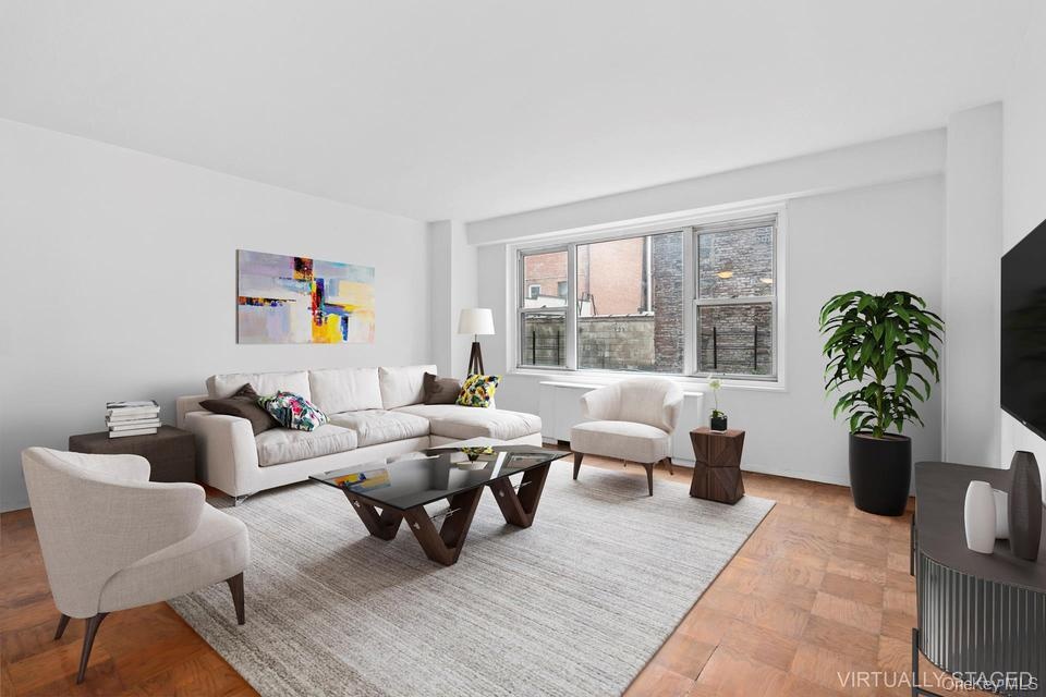 Bright, well-maintained, and thoughtfully laid out, this inviting Manhattan residence offers a perfect blend of comfort and functionality. Warm hardwood floors flow throughout the space, creating a cohesive and welcoming feel from room to room. The living area is generously sized, ideal for both relaxing and entertaining, with enough room for a full sectional, media setup, and accent.