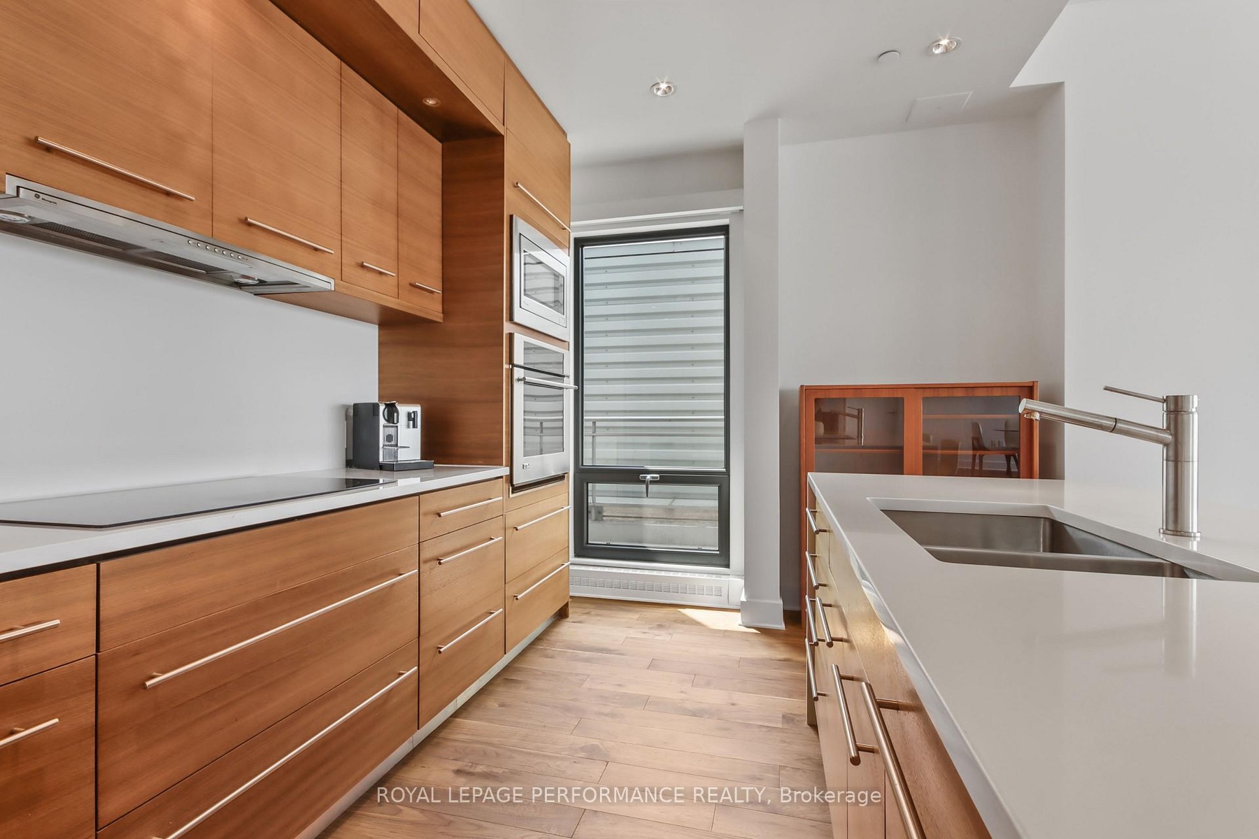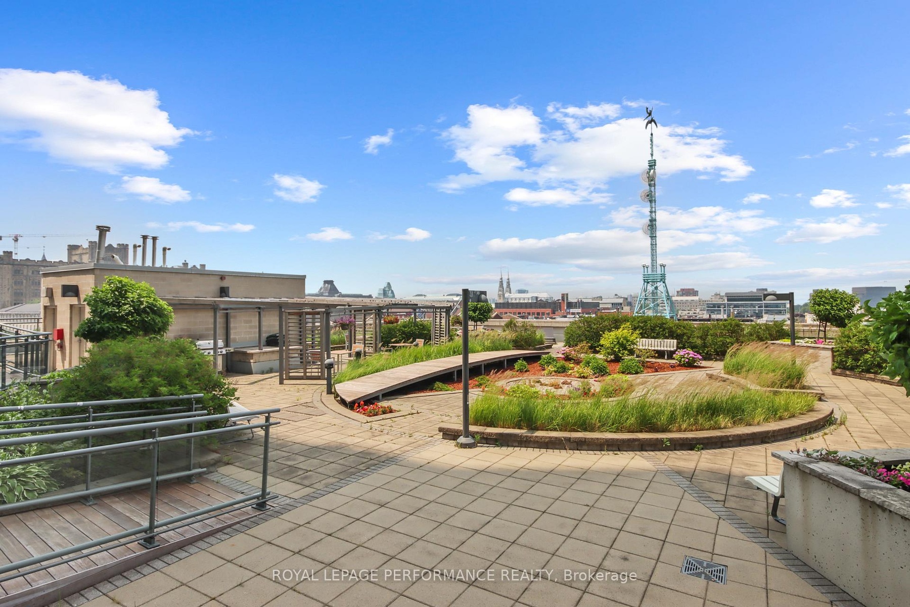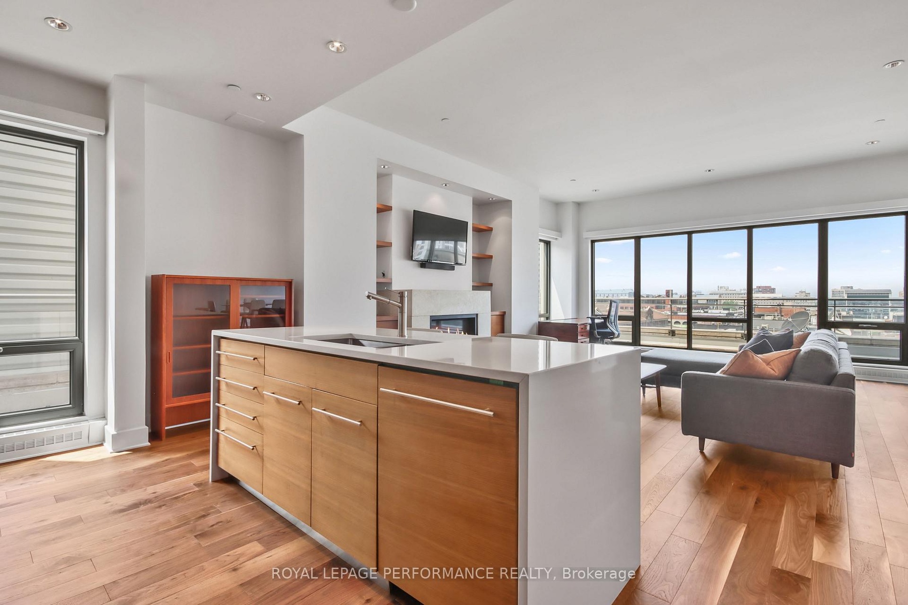 Stunning oversized Executive condo in the heart of Ottawa's Byward Market. Soaring ceilings, huge windows, immmaculate walnut floors, a gas fireplace and a massive private outdoor deck set this unit apart from most others. Offered with or without furniture, this apartment is ideal for those seeking a super stylish apartment with a gym, pool, sauna, and party room, all with 24 hour security and concierge. Steps to shopping, restaurants and coffee shops, Parliament and LRT. Very unique and rare offering.