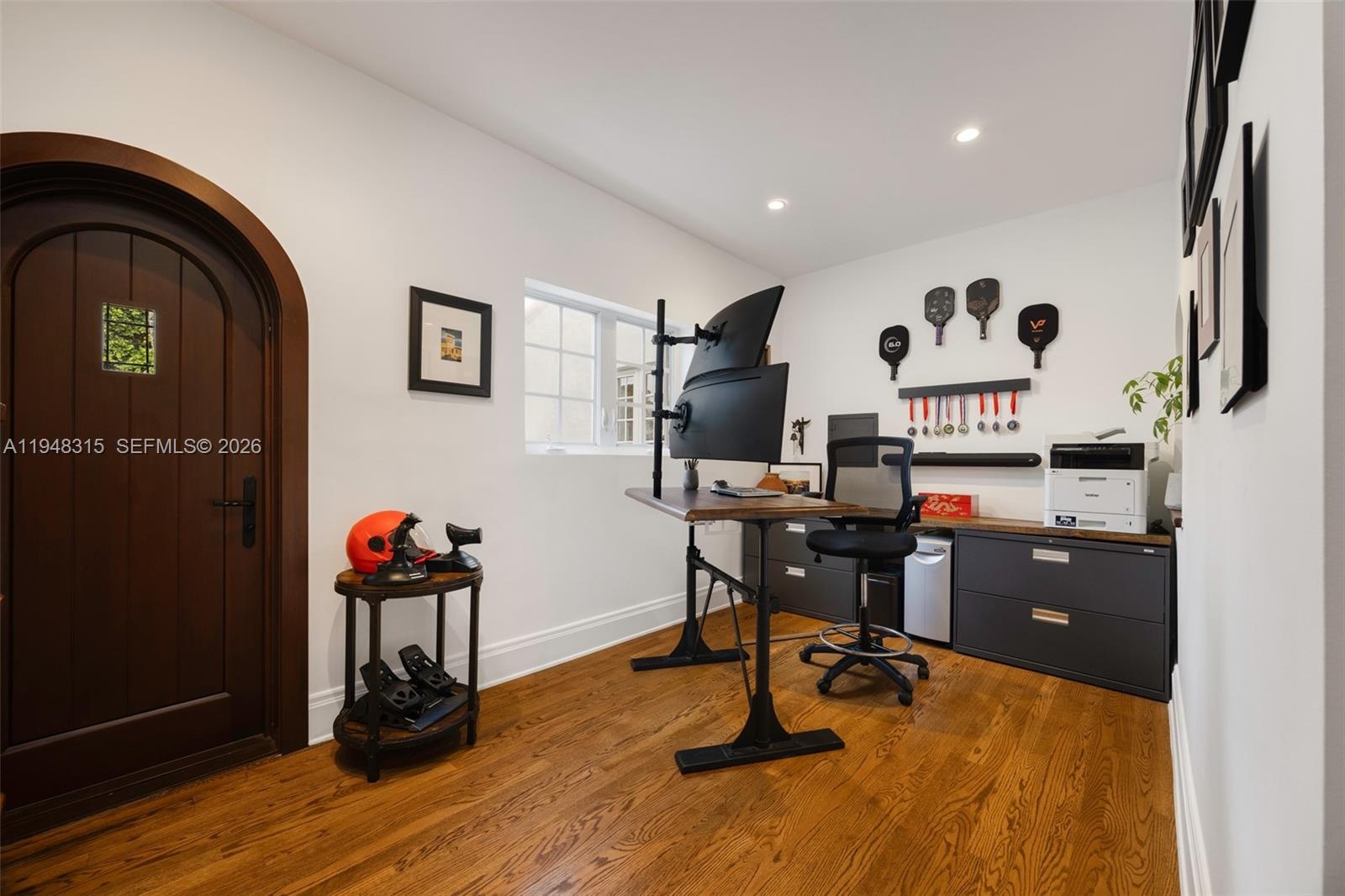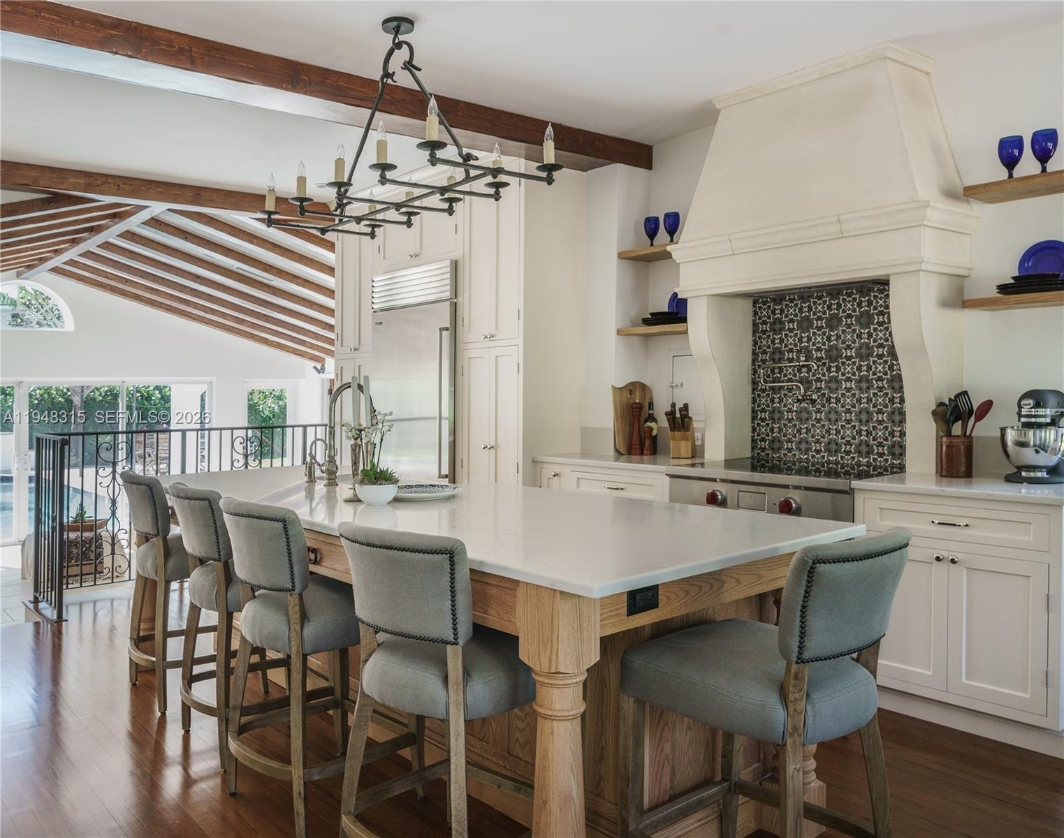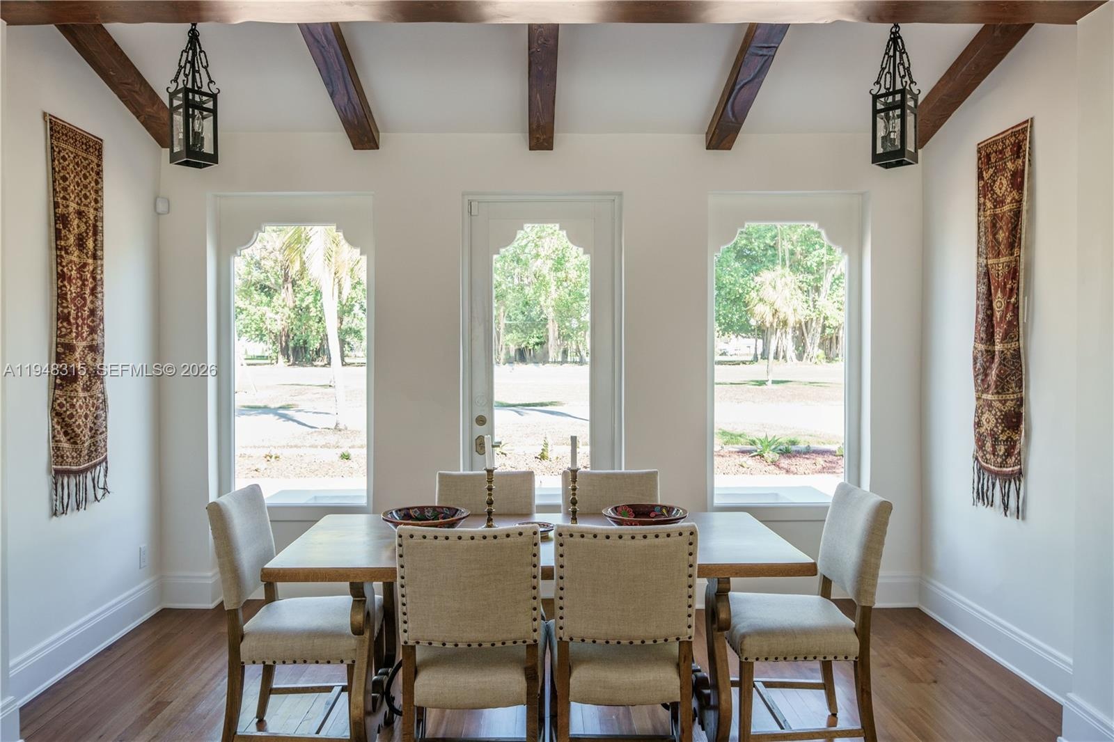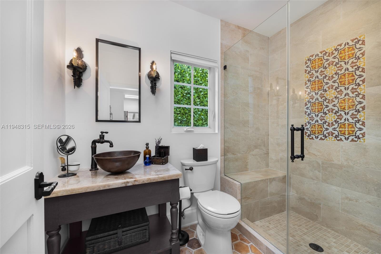 Designer-owned and completely renovated historic residence overlooking the Granada Golf Course, with awe-inspiring views of landmark banyan trees on the 6th fairway. This 4BR/3.5BA Old Spanish home seamlessly blends modern open living with preserved architectural charm, offering a rare combination of character, comfort, and move-in-ready convenience. A sun-filled, open-flow layout centers around a chef-worthy kitchen with custom Vermont-made cabinetry, Sub-Zero, Wolf & Kohler fixtures. Expansive family room opens directly to a resort-style pool & patio, ideal for indoor-outdoor entertaining. All 3 main bedrooms feature large walk-in closets. Upstairs primary suite enjoys tranquil golf course views & a charming sun porch. 4th bedroom is perfect for live-in help or in-laws. Design details include meticulously restored vintage doors, imported custom iron chandeliers, and a rare 1923 solid cast-iron soaking tub. Additional highlights include a home office with separate entrance, fully finished and air-conditioned garage currently used as a gym, commercial-grade IT with Cat 6 wiring throughout, AV, CCTV, storm windows, solid concrete block construction, and Trane central AC systems. Located outside a flood plain and adjacent to the Granada Golf Course, engineered to provide natural water absorption. A truly special Coral Gables offering—historic, refined, and turnkey—just minutes to the Biltmore Hotel, Country Club, parks, Miracle-Mile dining, and Miami International Airport.