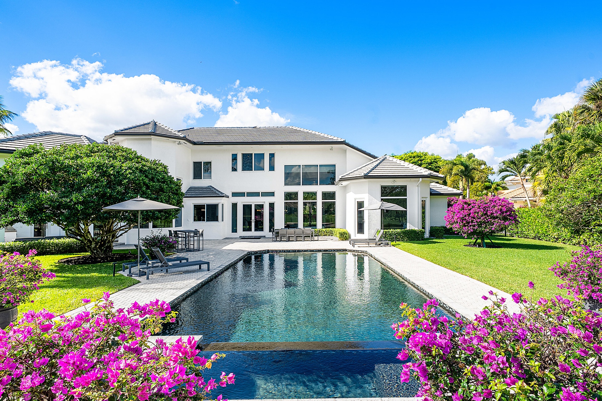 This meticulously maintained home, set on a rare, breathtaking .64 acre cul-de-sac lot, with sweeping, panoramic golf-course views, is located in Devon Place of Woodfield Country Club. Thoughtfully renovated, it offers 7 bedrooms plus an office, and 51⁄2 bathrooms. Features include impact windows, a whole-house generator, built-in wine refrigerator, four-zone air conditioning, and an EV charger. A truly unique opportunity in Boca Raton- a contemporary, move-in-ready home set on the community's most exceptional and coveted property.