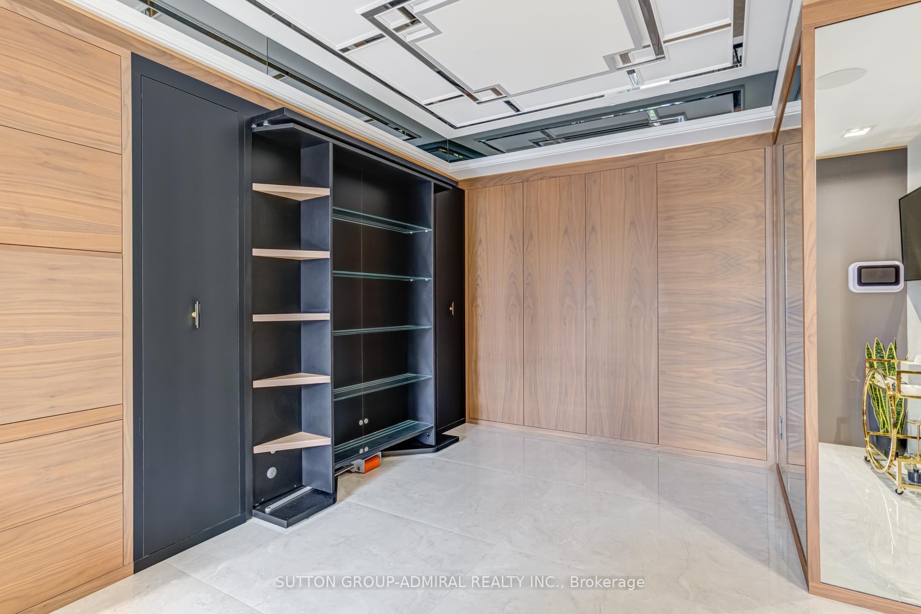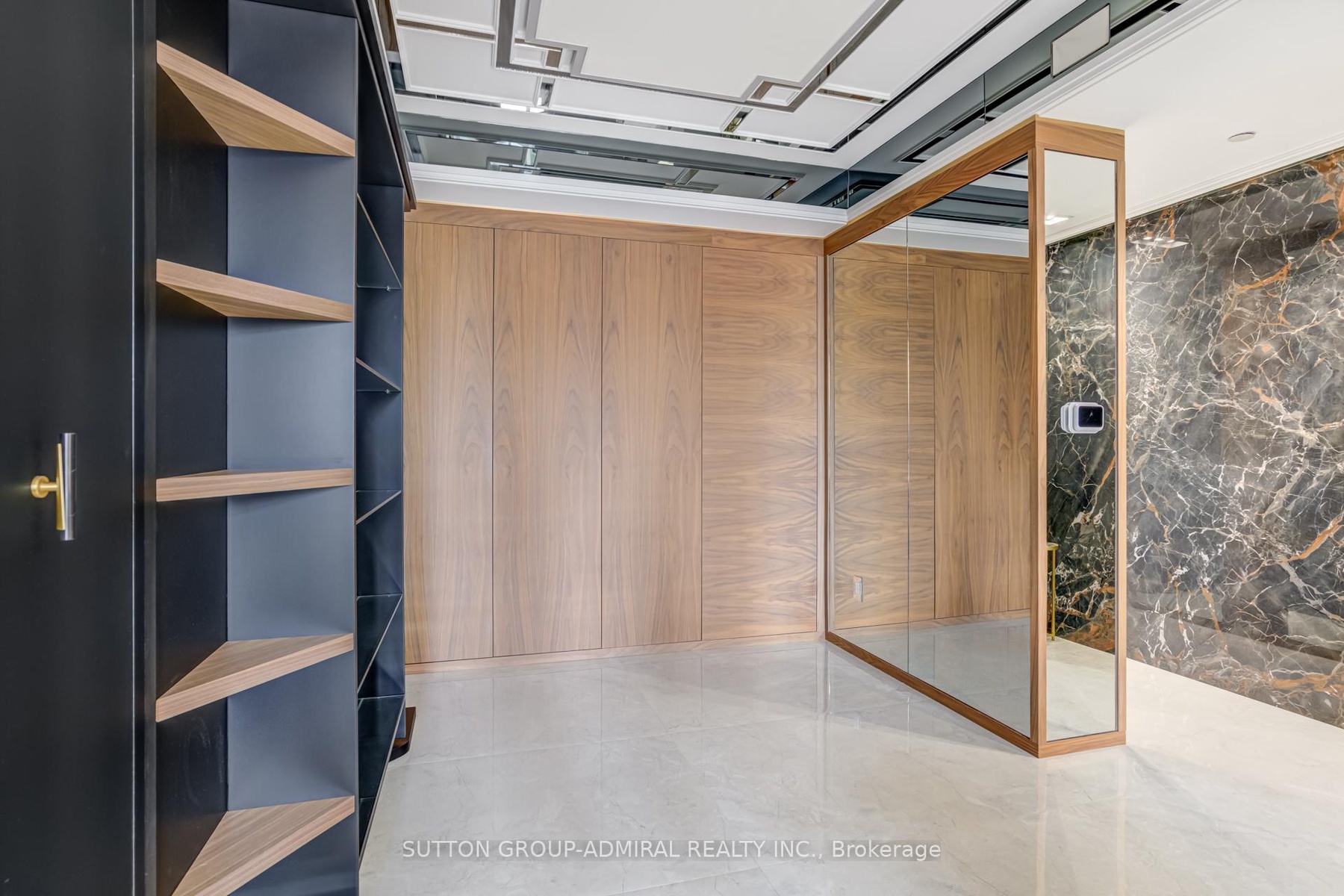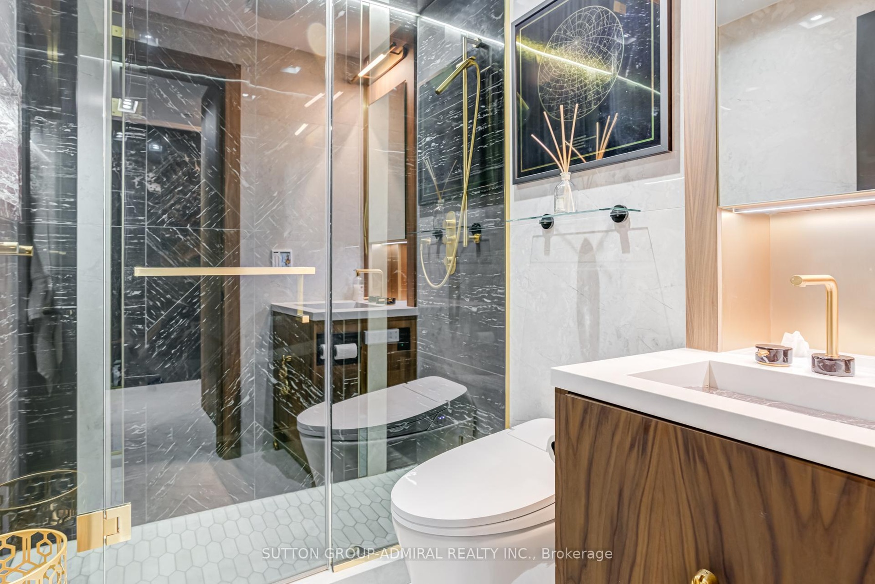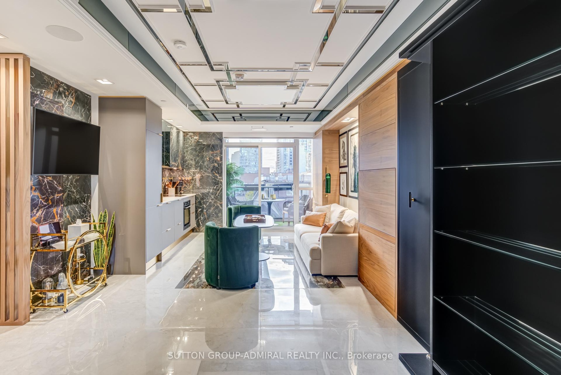 Experience boutique-style living in the heart of Yorkville with this fully furnished, one-of-a-kind suite at 88 Cumberland. Thoughtfully redesigned with striking porcelain tile floors, 9-ft feature wall slabs, and an illuminated star ceiling that sets the mood at every hour. A custom Italian wall bed blends seamlessly into sleek millwork, creating a flexible open-concept layout perfect for modern living. The kitchen features premium finishes including leather-wrapped appliances, porcelain and mirrored cabinetry, brushed gold accents, and smart hidden storage. The spa-inspired bath offers a marble vanity, tinted glass shower, and built-in medicine cabinet. Enjoy integrated Sonos speakers, remote blackout shades, digital climate control, and a same-floor locker for convenience. All within steps of Bloor's luxury shopping, fine dining, and cultural landmarks.